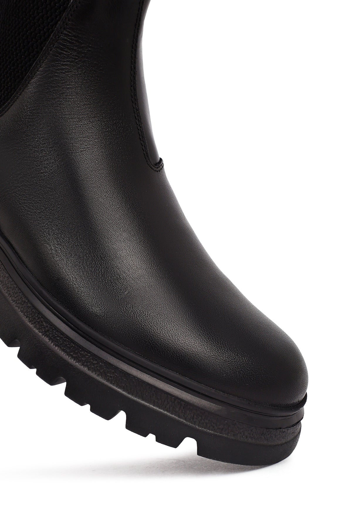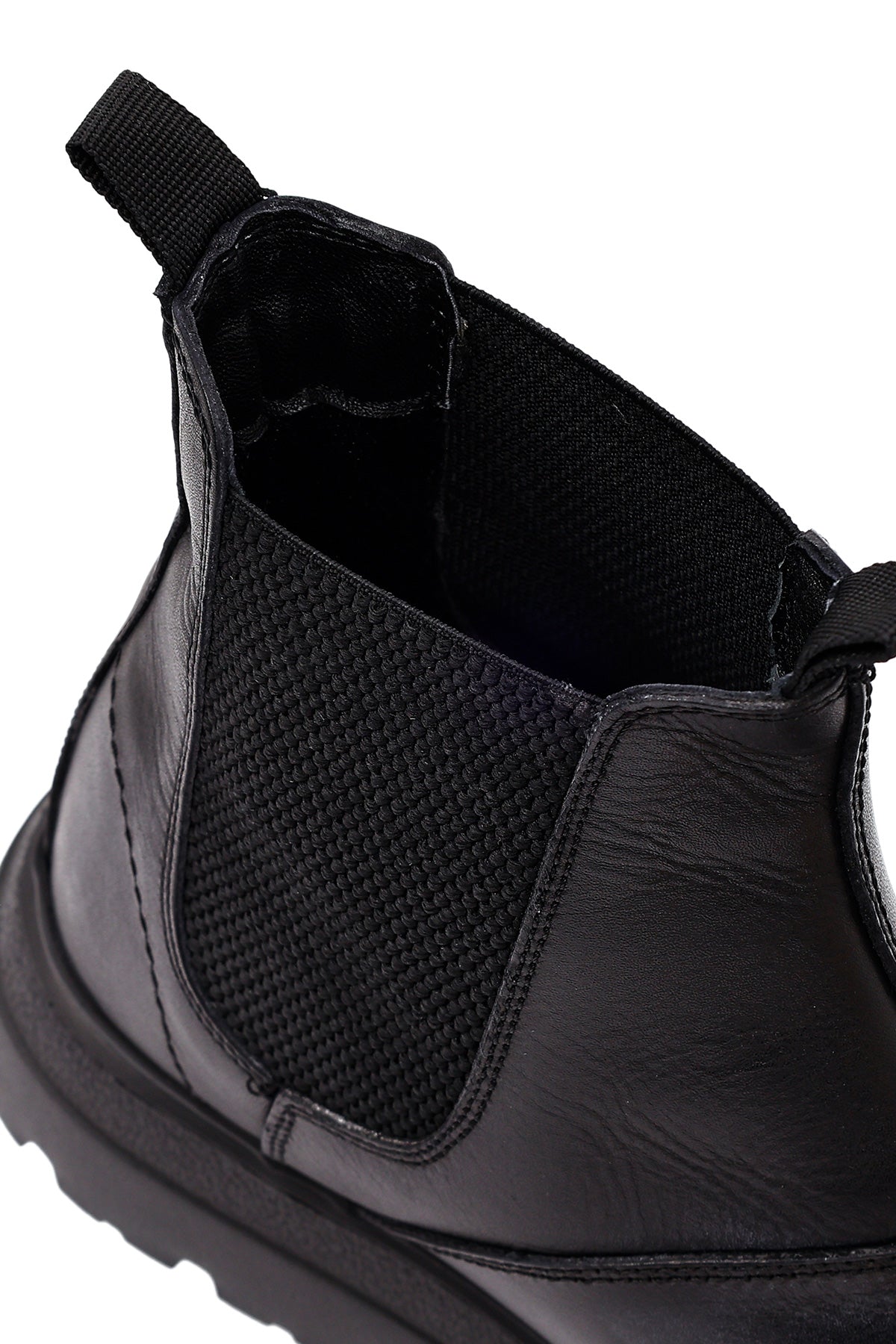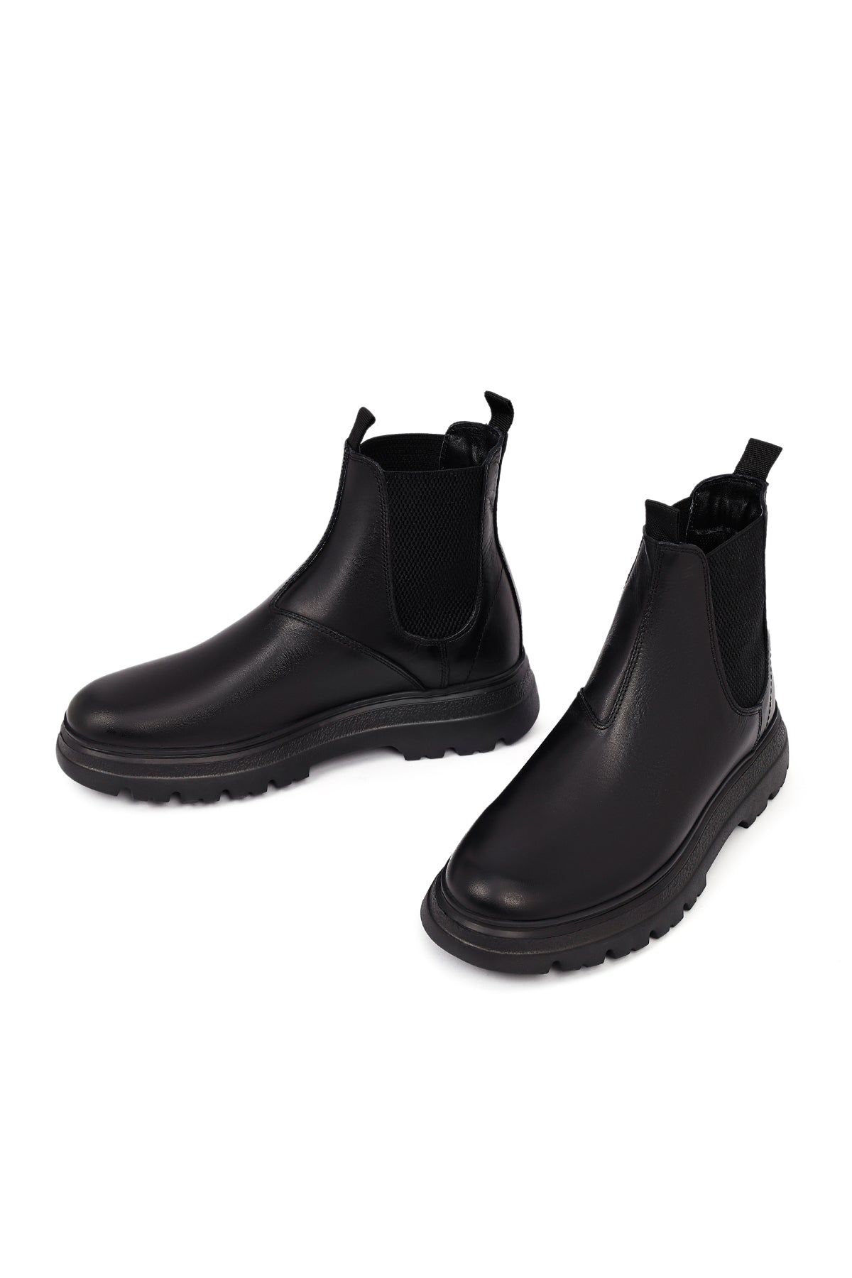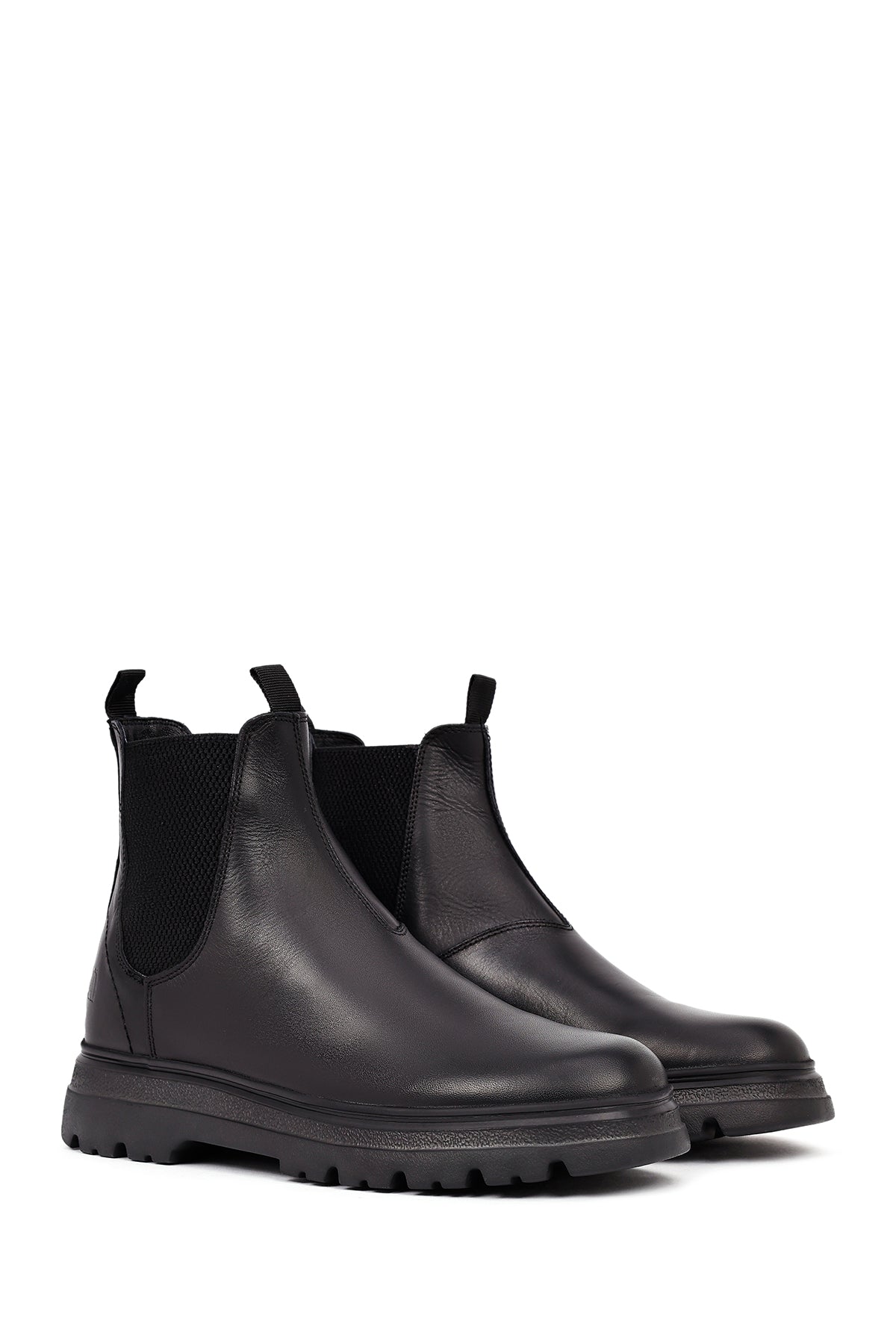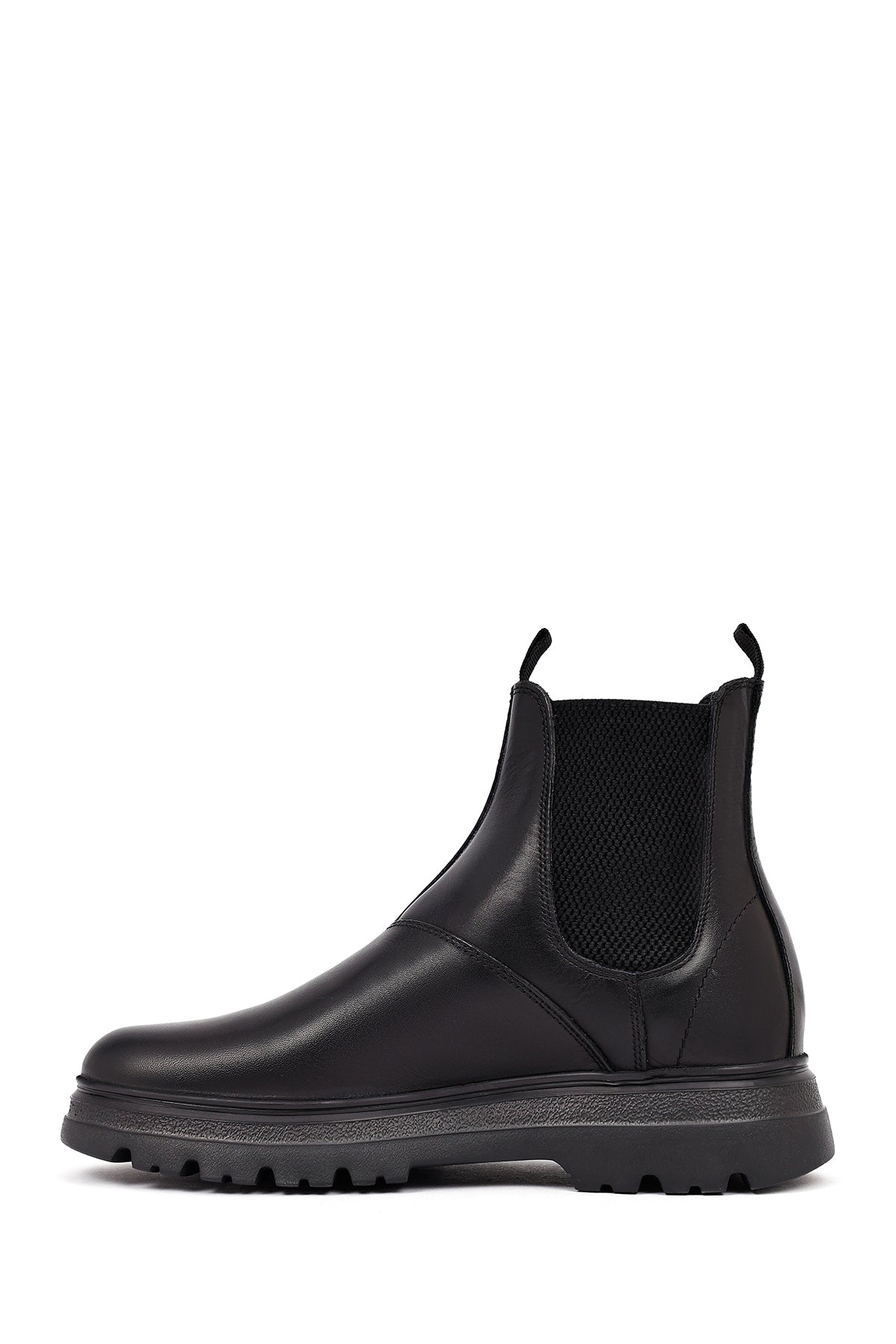 Men's Black Leather Chelsea Boot is one of the indispensable pieces of classic men's fashion and a cornerstone of every wardrobe with its timeless design. The genuine leather material treated with stitching gives the shoe a premium look while also increasing its durability. Thanks to its black color, the model offers perfect harmony with both casual and formal outfits, providing versatile usage options. The elastic bands on the sides allow easy wearing and removal, while offering a perfect fit to the foot. The pull tabs on the back and front provide practical use. The boot, with its thick and toothed rubber sole, offers both grip and durability, and the 3 cm heel height provides a comfortable walking experience. The textile inner lining supports breathability of the feet, giving a feeling of freshness throughout the day. The model, which can be comfortably worn in winter months, keeps the feet warm in cold weather. It is a versatile shoe that can be preferred in every environment, from office to social events, daily shopping to dinner. The Chelsea boot, which will become an indispensable part of your wardrobe with its quality craftsmanship and timeless design, is an excellent choice reflecting the modern man's style understanding. Product code: 25WFD681218