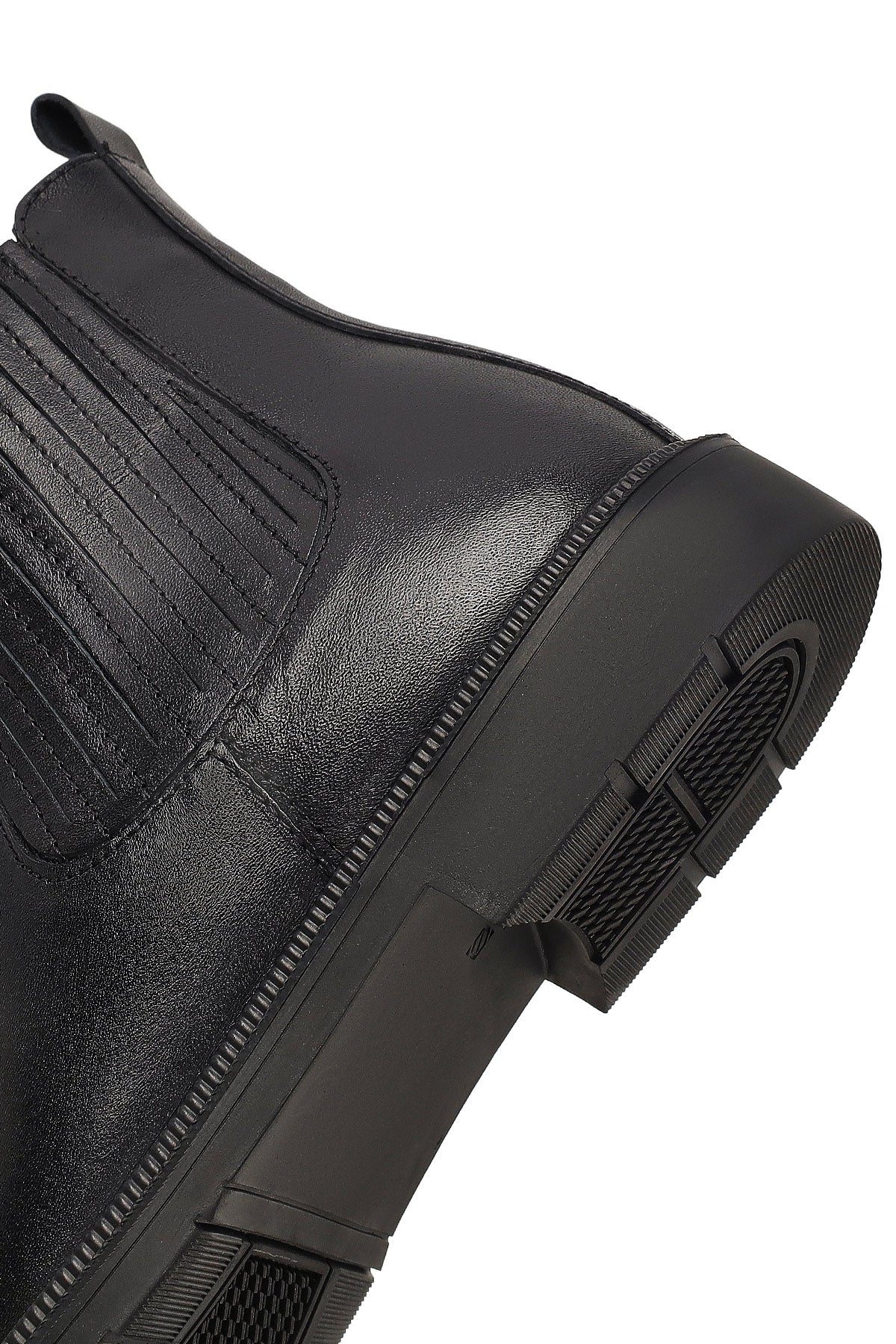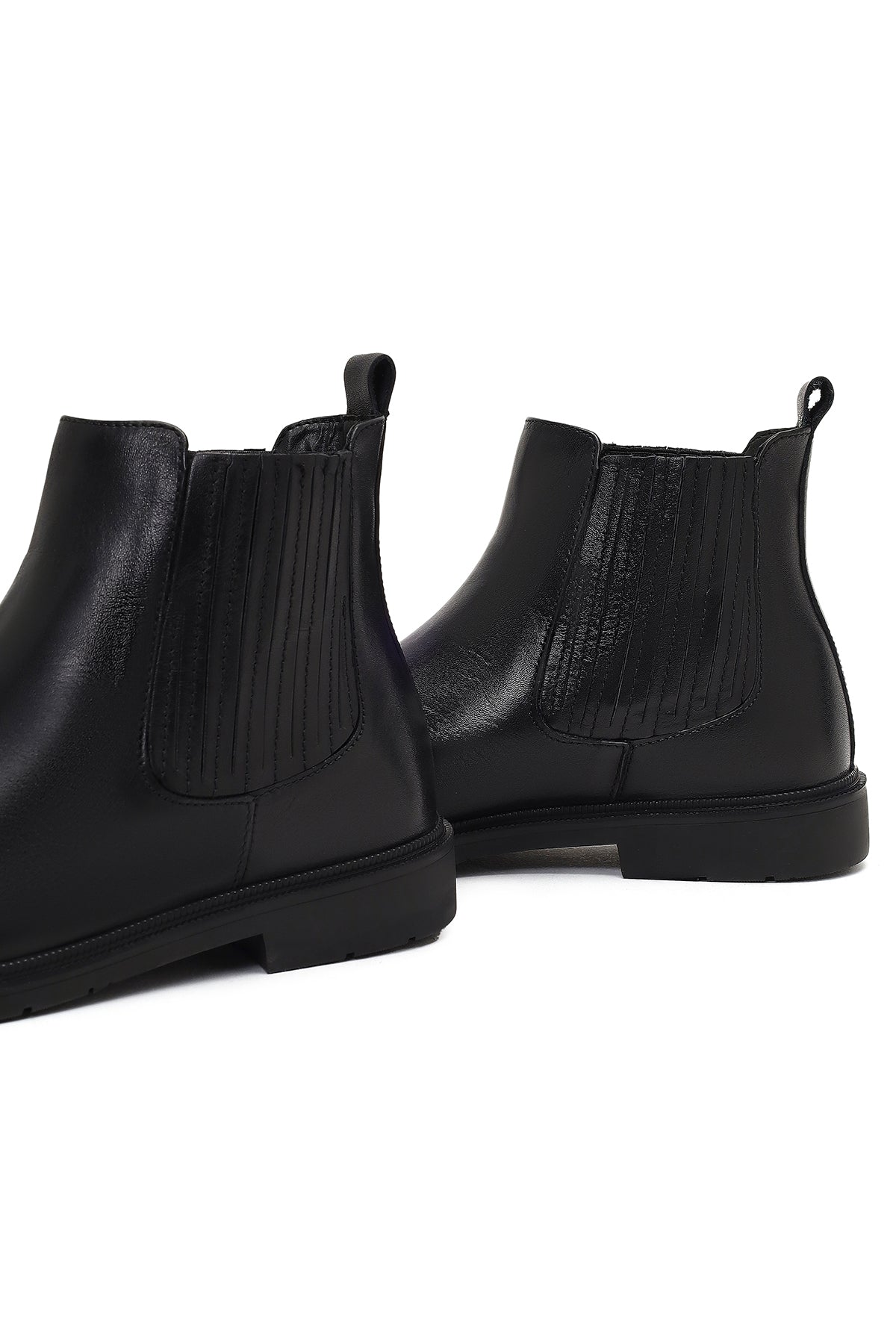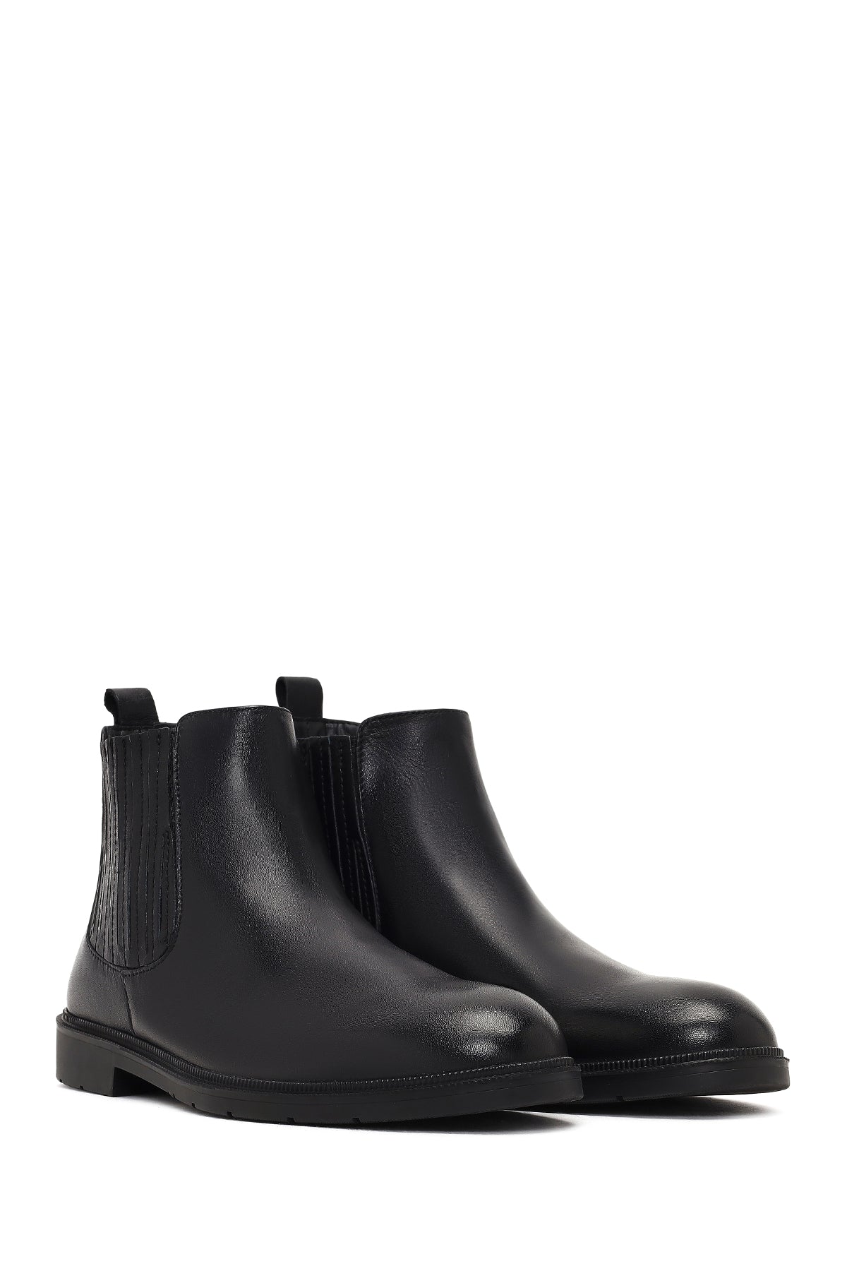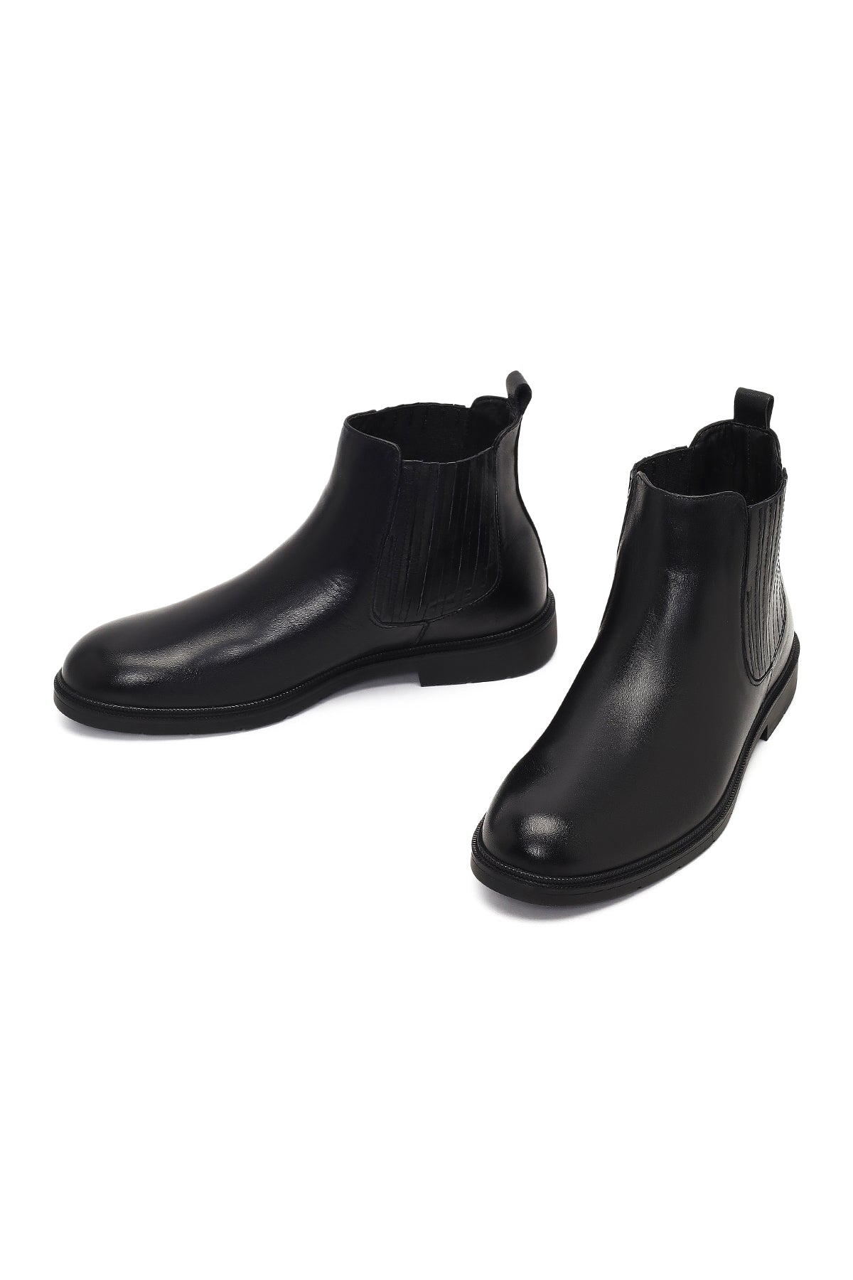 **Turkish Description:** Men's Black Leather Chelsea Boot is one of the indispensable pieces in the wardrobe of modern men. The boot, produced with Vidala leather feature, offers the advantages of breathability and durability provided by the natural leather structure together. The model, which perfectly matches all kinds of outfit combinations with its black color, is a representative of timeless elegance. Thanks to the side elastic bands, which are the characteristic feature of Chelsea boots, it offers easy wearing and removal, while providing ideal ergonomics for daily use with a 2 cm heel height. While protecting foot health with a textile inner lining, it provides maximum support during long walks with its thick and durable sole. The Chelsea boot, which is the standout model of the winter collection, keeps feet warm in cold weather conditions while giving a stylish appearance. The model in the Casual Chelsea category offers a wide range of use from office to social events, from daily outings to dinners. The boot, which has durability that can be used for years with genuine leather material, becomes even more beautiful over time with care and gains a unique character. The model, which combines the classic Chelsea boot understanding with today's trends with its modern design, has features that make it a candidate for the preference of men of all ages. Product code: 25WFD702118