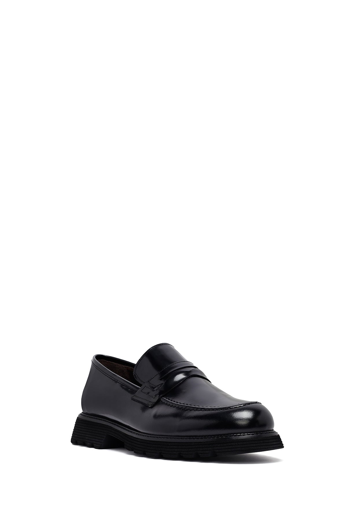 **English Description:** Men's Black Leather Classic Loafer is a timeless design that stands out as an indispensable piece of modern men's style. Made from genuine leather material, the loafer offers superior quality and durability, making it an investment that can be used for many years. The black color perfectly matches all kinds of outfit combinations, and the model draws attention with its classic penny loafer design. The strap detail on the upper part of the shoe reflects traditional loafer aesthetics while being enriched with modern touches. The leather inner lining protects foot health and provides a breathable wearing experience. With a heel height of 2.5 cm, it offers ideal comfort for daily use, while the thick sole structure gives a contemporary look. Thanks to its slip-on design, the loafer offers easy wearing, making it a perfect choice for modern men seeking practical use. The model, which belongs to the winter collection, can also be comfortably preferred in cold weather conditions. It has a wide range of use from office environments to daily life, from business meetings to social events. Its flotter leather feature, with its soft texture and flexible structure, provides a perfect fit to the foot. The model in the casual loafer category is an ideal choice for men looking for a stylish and comfortable appearance. Product code: 25WFD704722