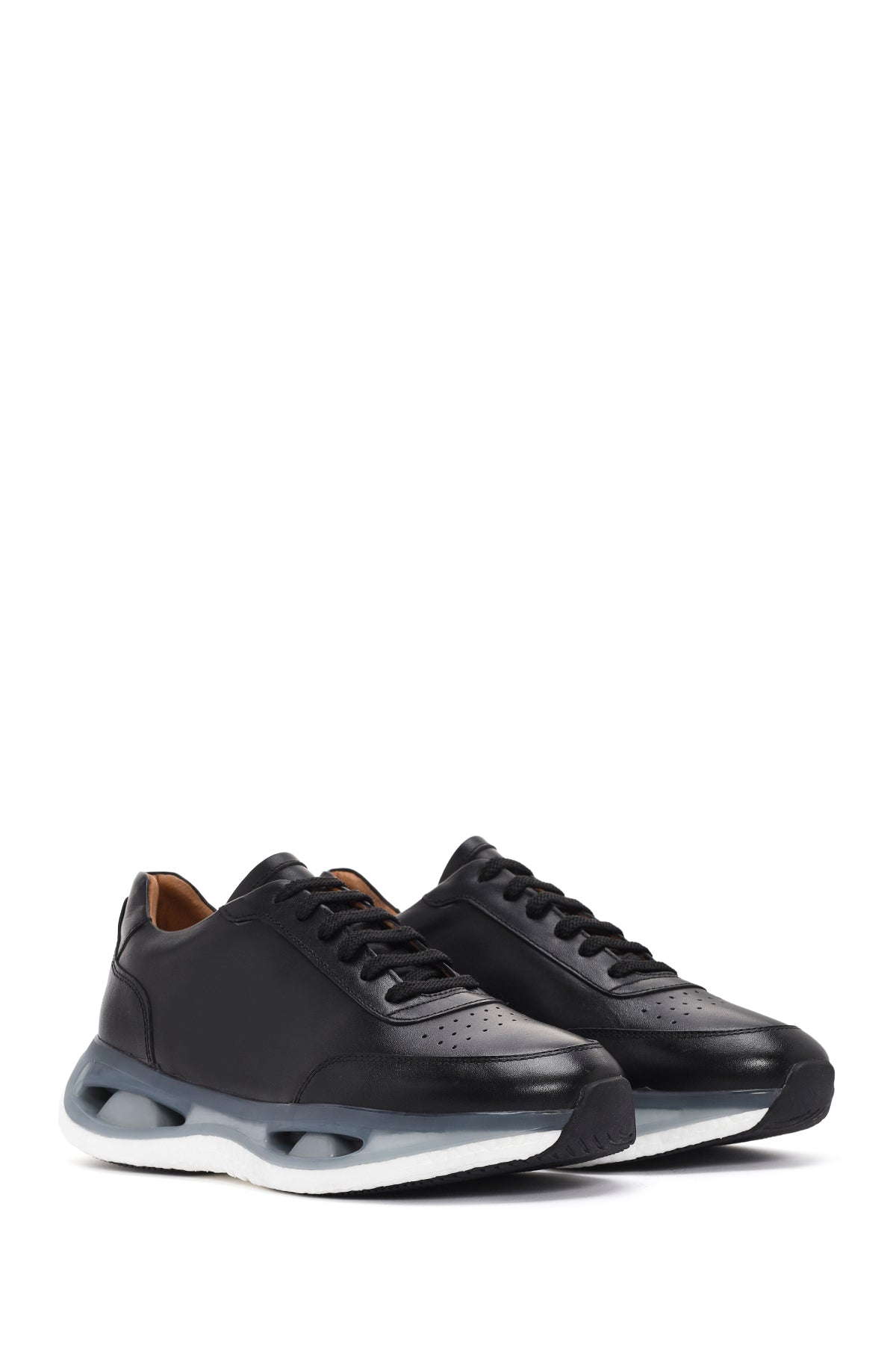 Men's Black Thick Sole Lace Up Leather Sneaker