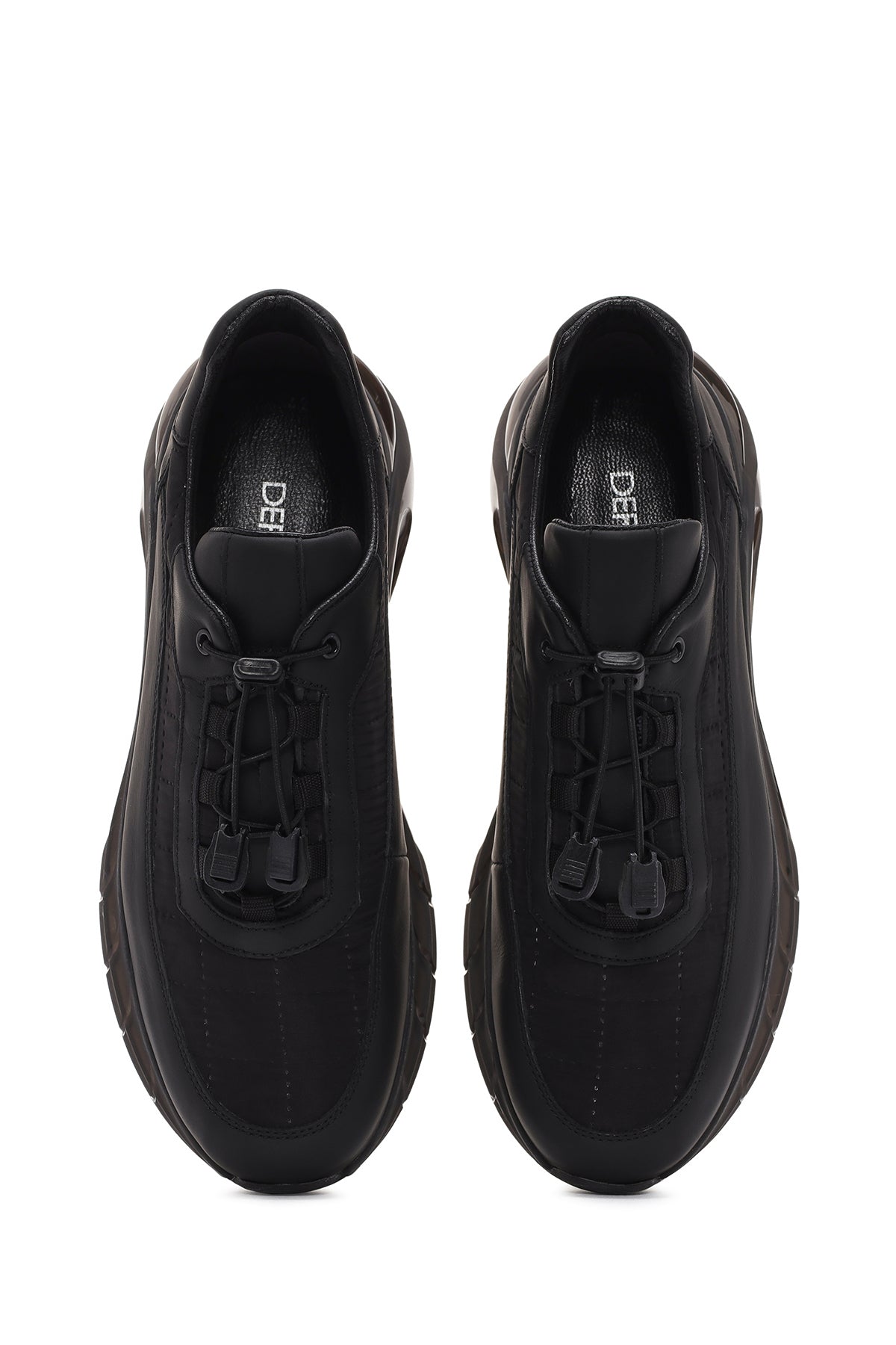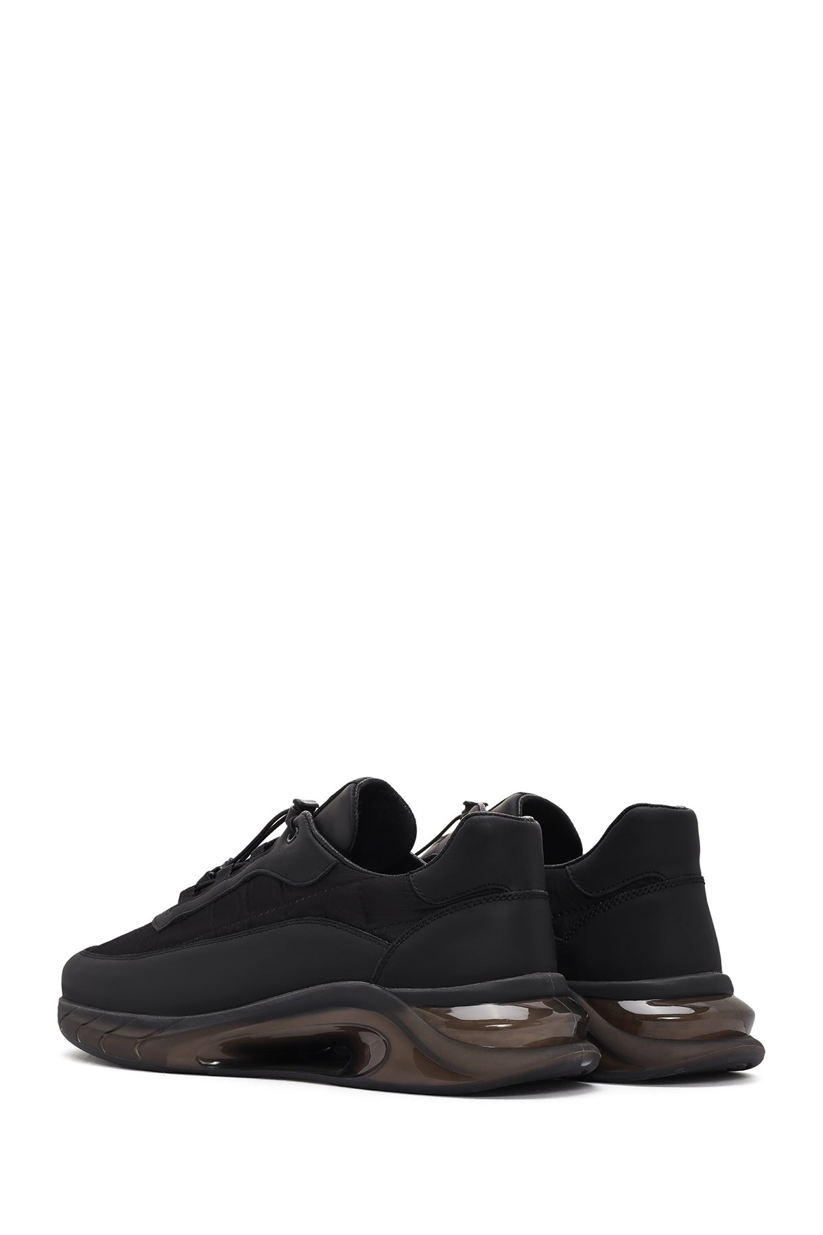 Men's Black Thick Sole Lace-Up Leather Sneaker