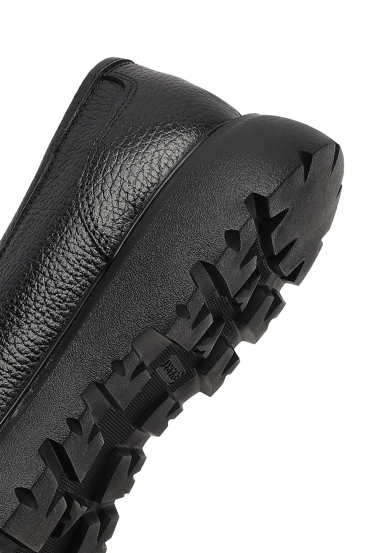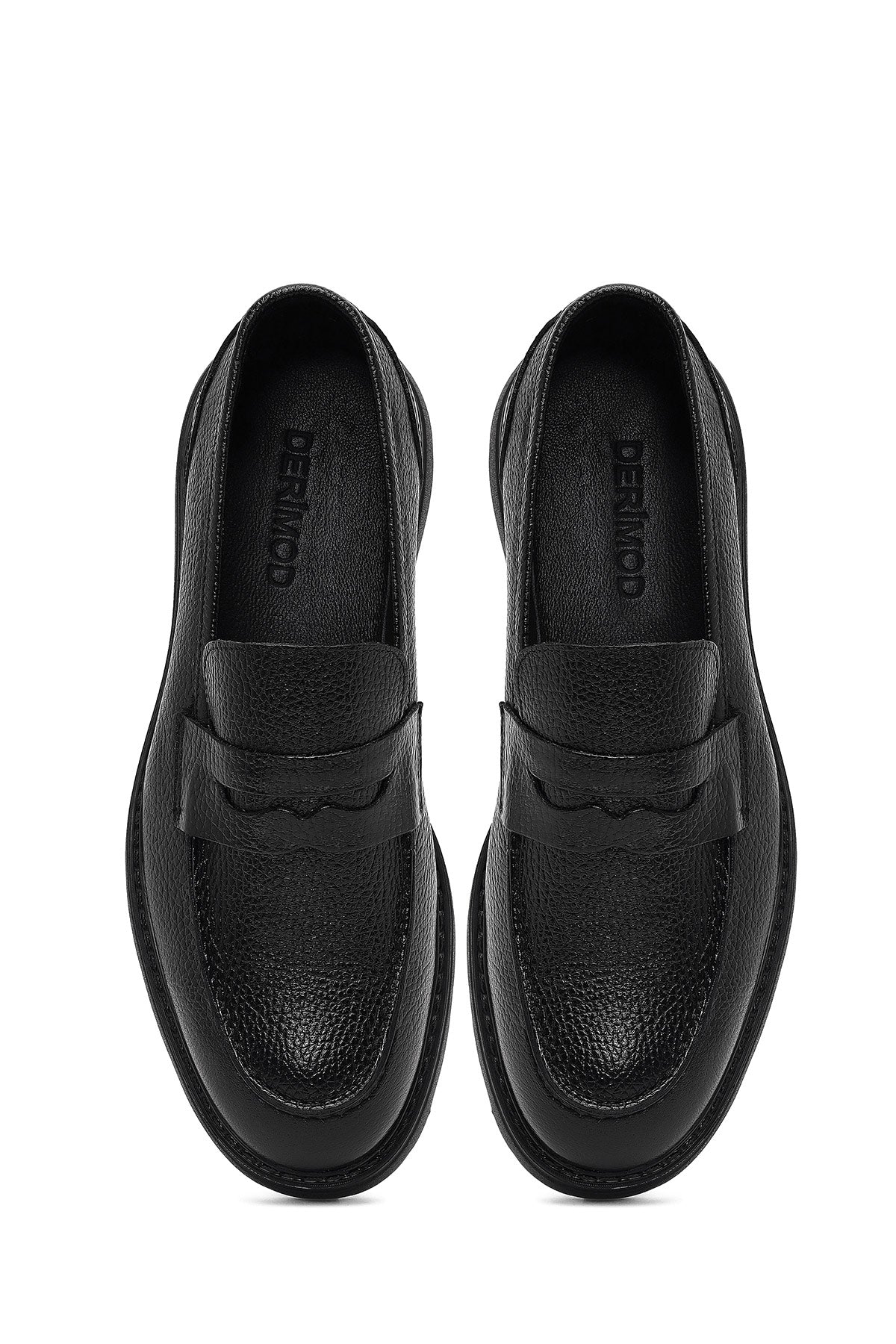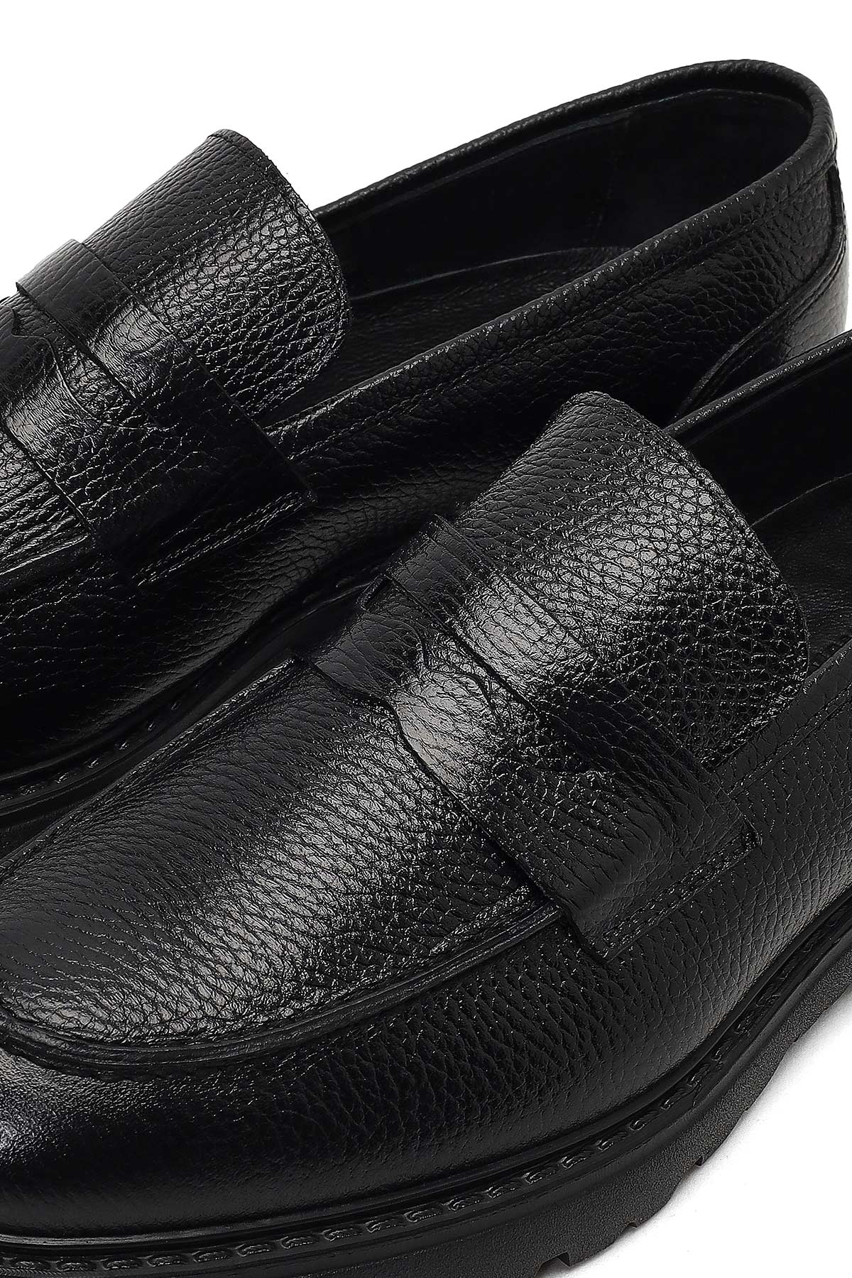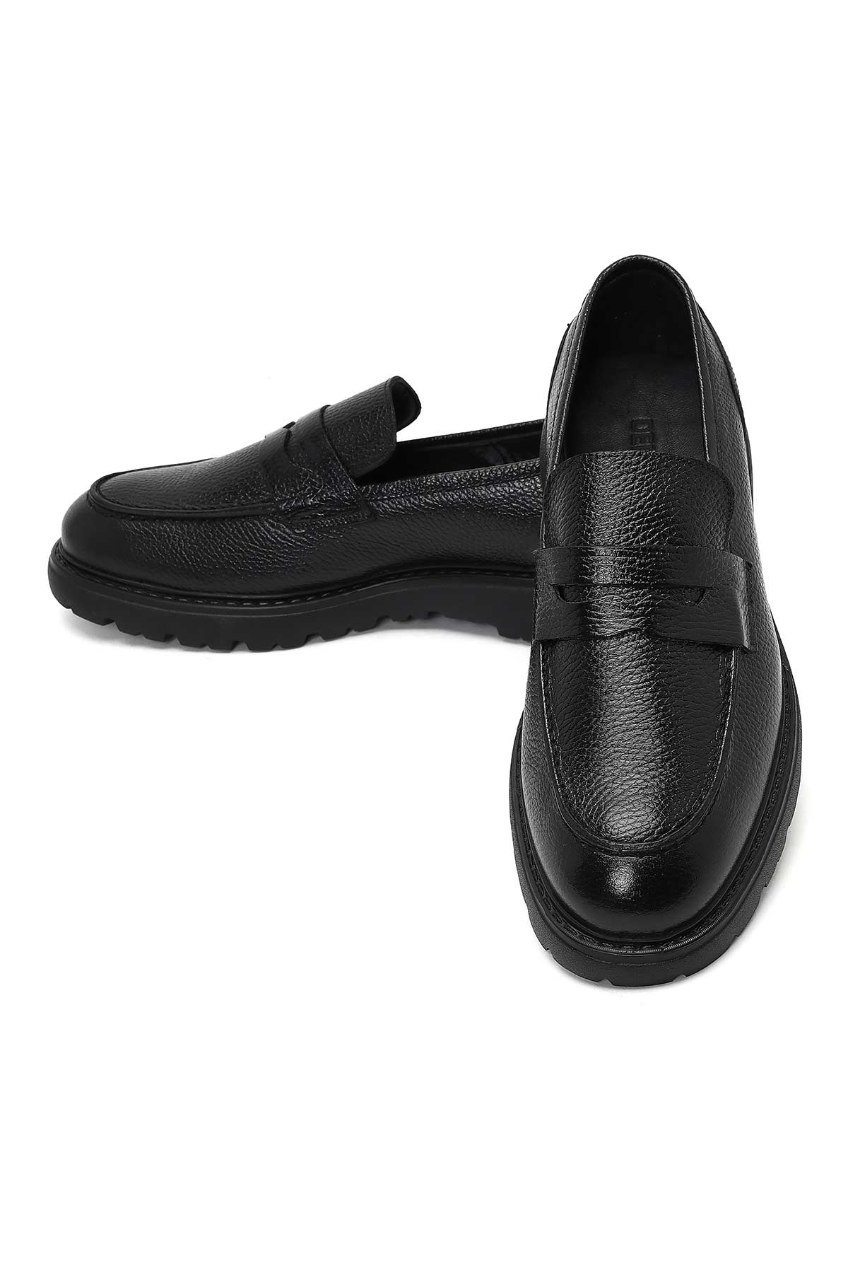 Men's Black Thick-Soled Leather Loafer is a timeless shoe model that combines the classic loafer silhouette with a modern thick sole design. Its genuine leather upper material with floter processing offers natural texture and durability, allowing for long years of use. The traditional penny loafer strap on the shoe reflects classic elegance, while the thick and deeply patterned sole structure provides both comfort and an attractive appearance. With a heel height of 2.5 cm, the model offers comfort for daily use, and its leather inner lining supports foot health and provides breathability. The shoe, which matches every style with its black color, has a wide range of use from office environments to daily social activities. The superior grip feature provided by its thick sole offers a safe walking experience on different ground conditions. Easily preferred during seasonal transitions, the model is an ideal choice for those seeking both a stylish and comfortable look. This loafer, an indispensable piece of the modern men's wardrobe, stands out with its quality craftsmanship and aesthetic design. Product code: 25WFD8200FT
