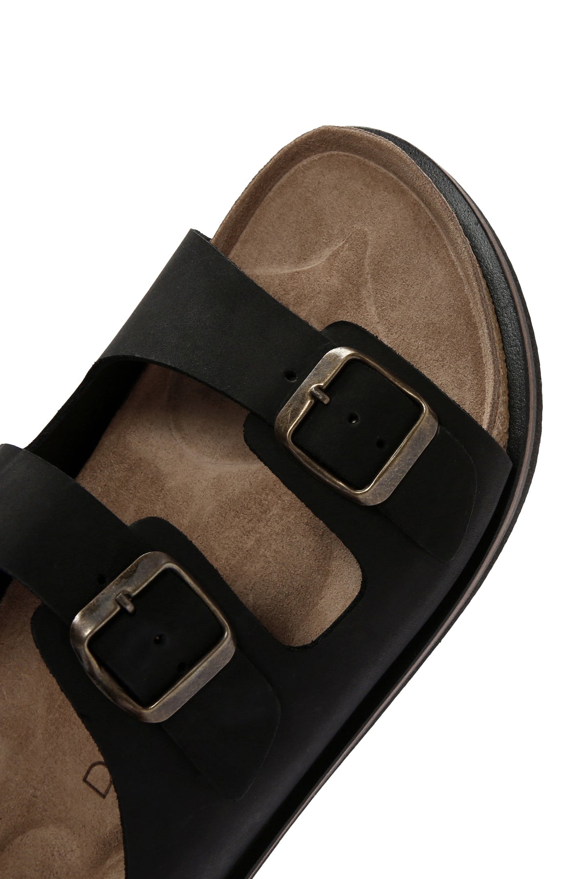 Show off your style with Derimod's Men's Black Buckle Detailed Nubuck Leather Slippers, which offer style and elegance together. Product code: 24SFD6260V3 11