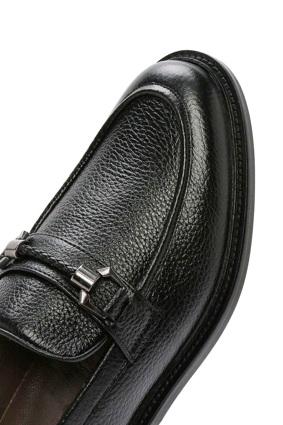 Erkek Siyah Tokalı Deri Klasik Loafer