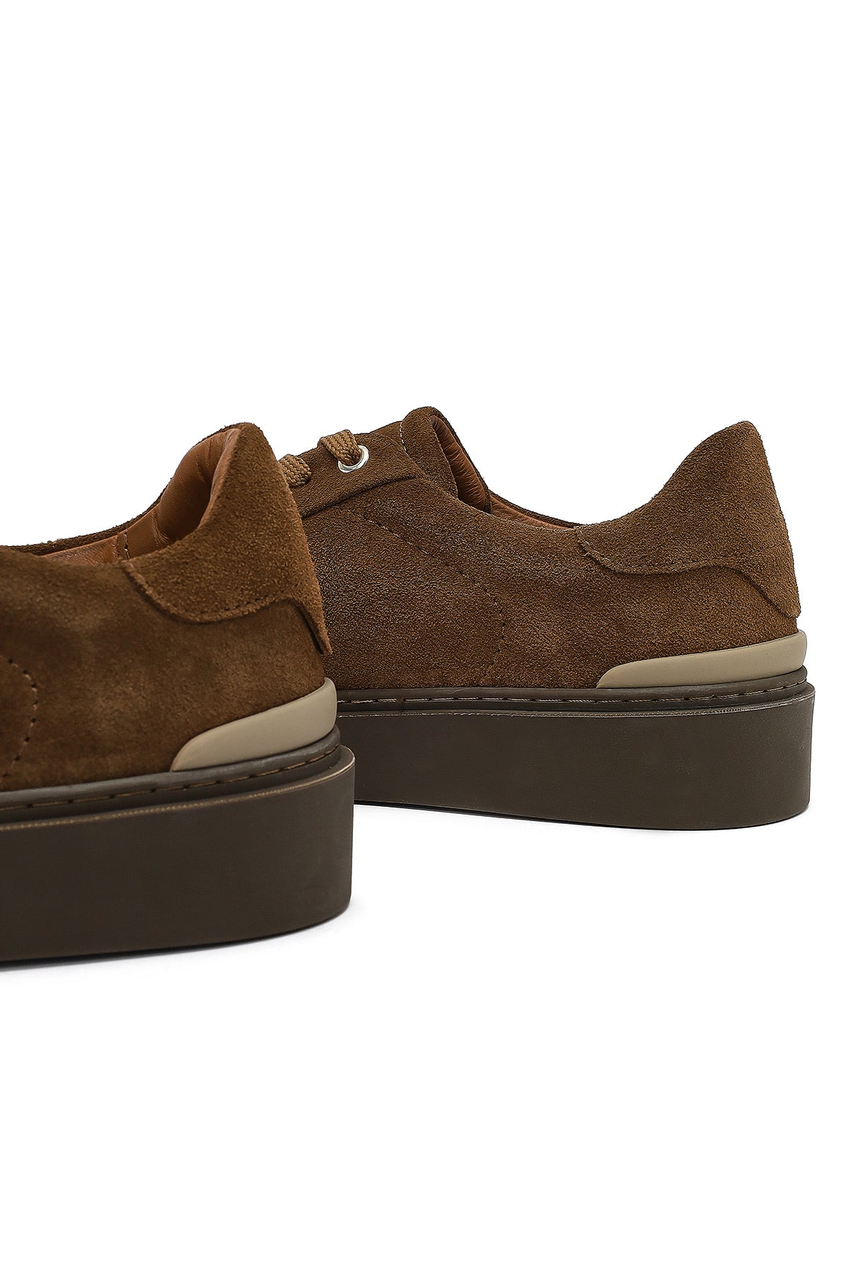 **Turkish Description:** The men's tan lace-up leather sneaker from Derimod's winter collection is one of the indispensable pieces of the modern men's wardrobe. Made from suede leather material, the sneaker allows feet to breathe thanks to its natural leather inner lining, offering maximum comfort during long wear. With a 2 cm heel height, the model provides ideal balance and posture for daily activities, presenting a classic and timeless look with its tan color. Thanks to its lace-up design, the sneaker offers a perfect fit to the foot, combining durability and elegance with its high-quality suede leather structure. Suitable for the cold days of the winter season, the model is a favorite candidate for men who adopt a casual clothing style. The sneaker has a wide range of uses, from office environments to daily social activities, shopping, and meeting friends, perfectly matching with jeans, chino pants, and casual shirt combinations. Thanks to its suede leather feature, the shoe maintains its durable structure over time, while the leather inner lining prioritizes foot health. Reflecting modern men's style, the model is preferred by men seeking both comfort and elegance and can be worn comfortably at any time of the day. Product code: 25WFD707010