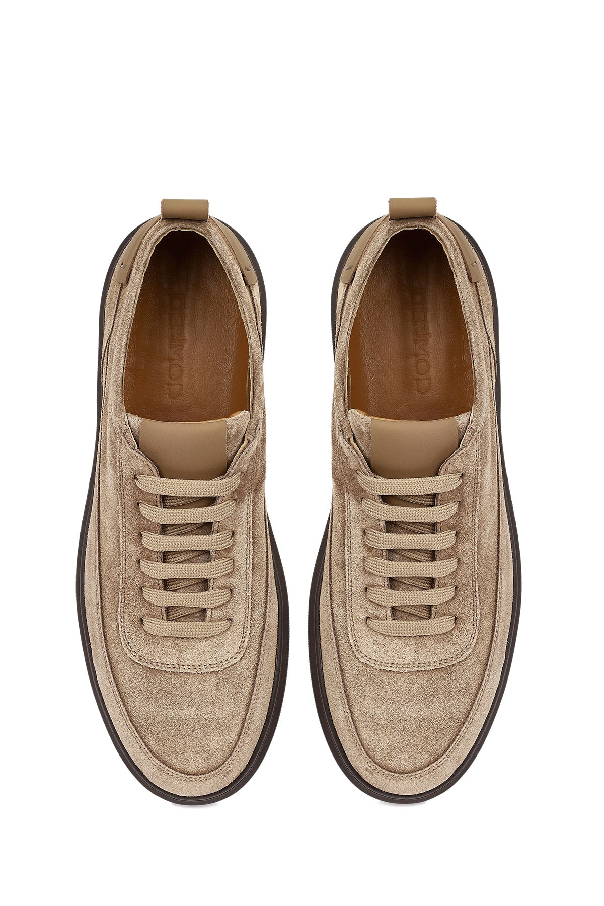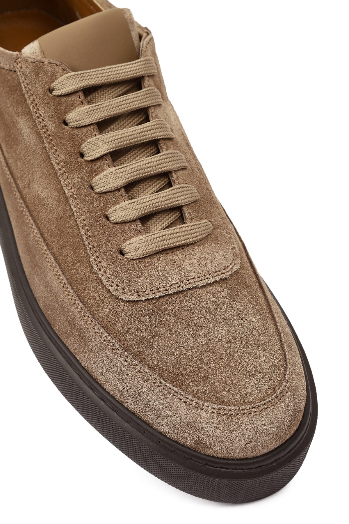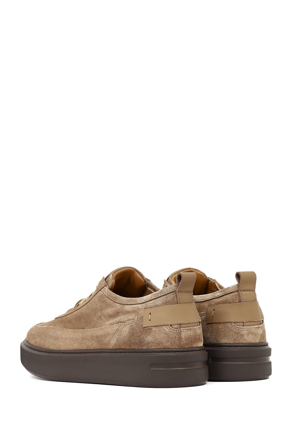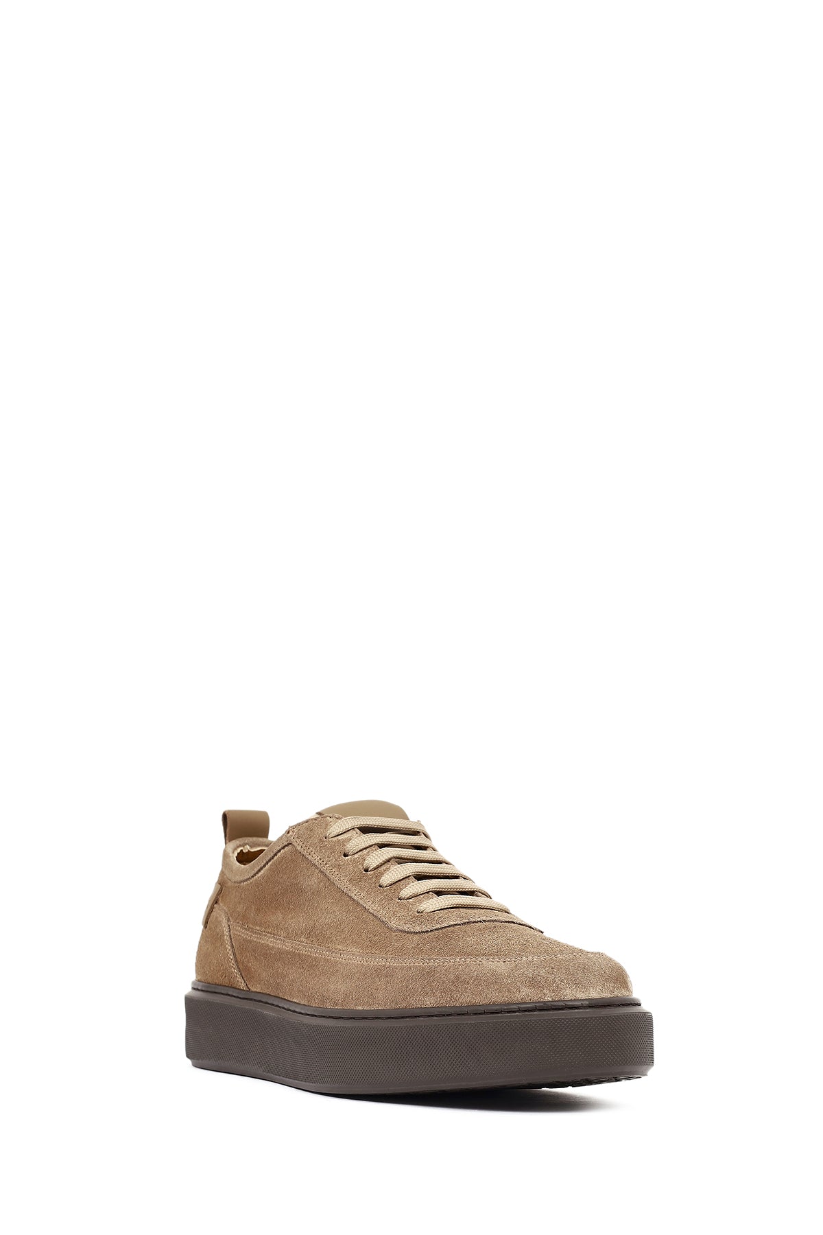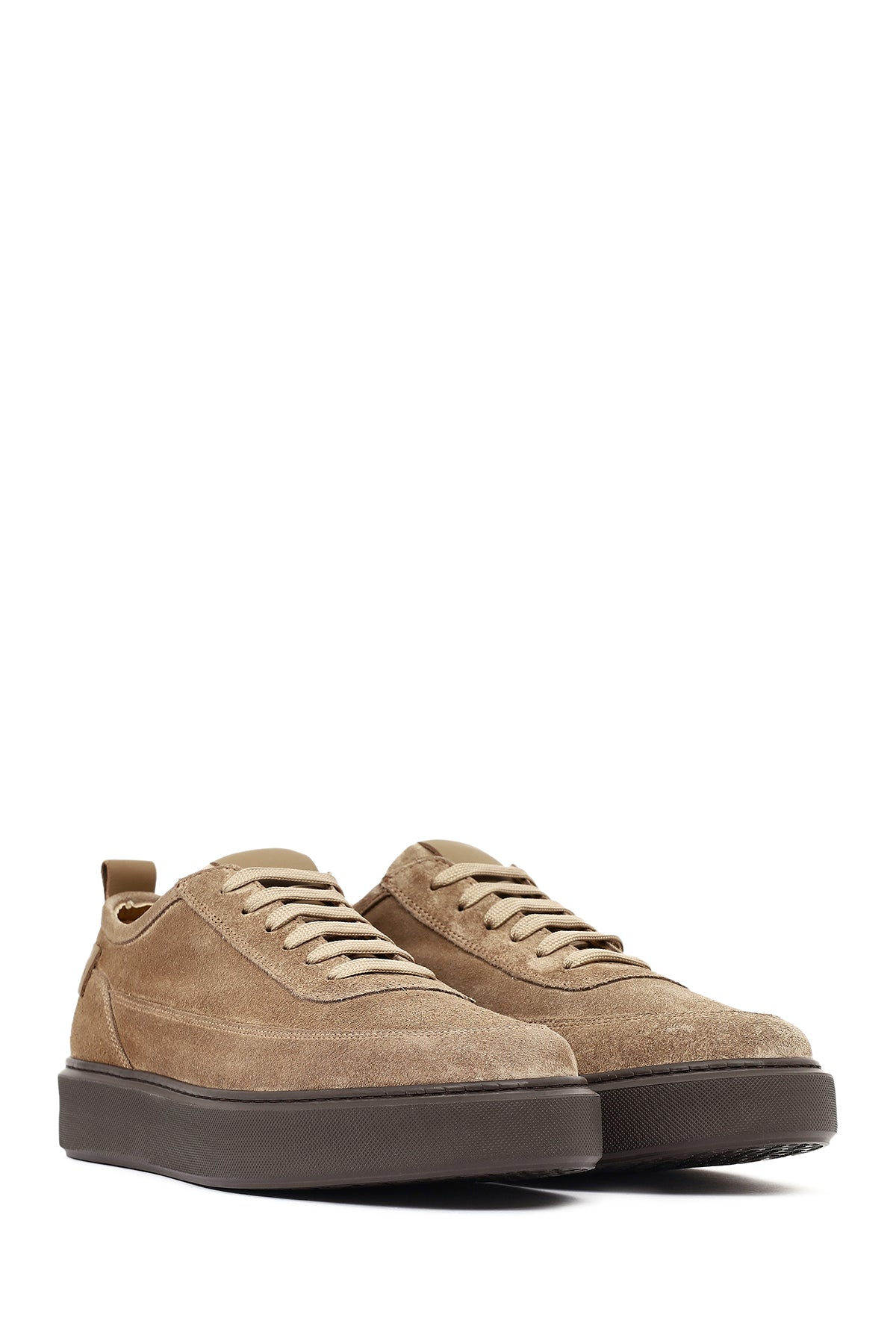 Erkek Vizon Bağcıklı Kalın Tabanlı Süet Deri Sneaker