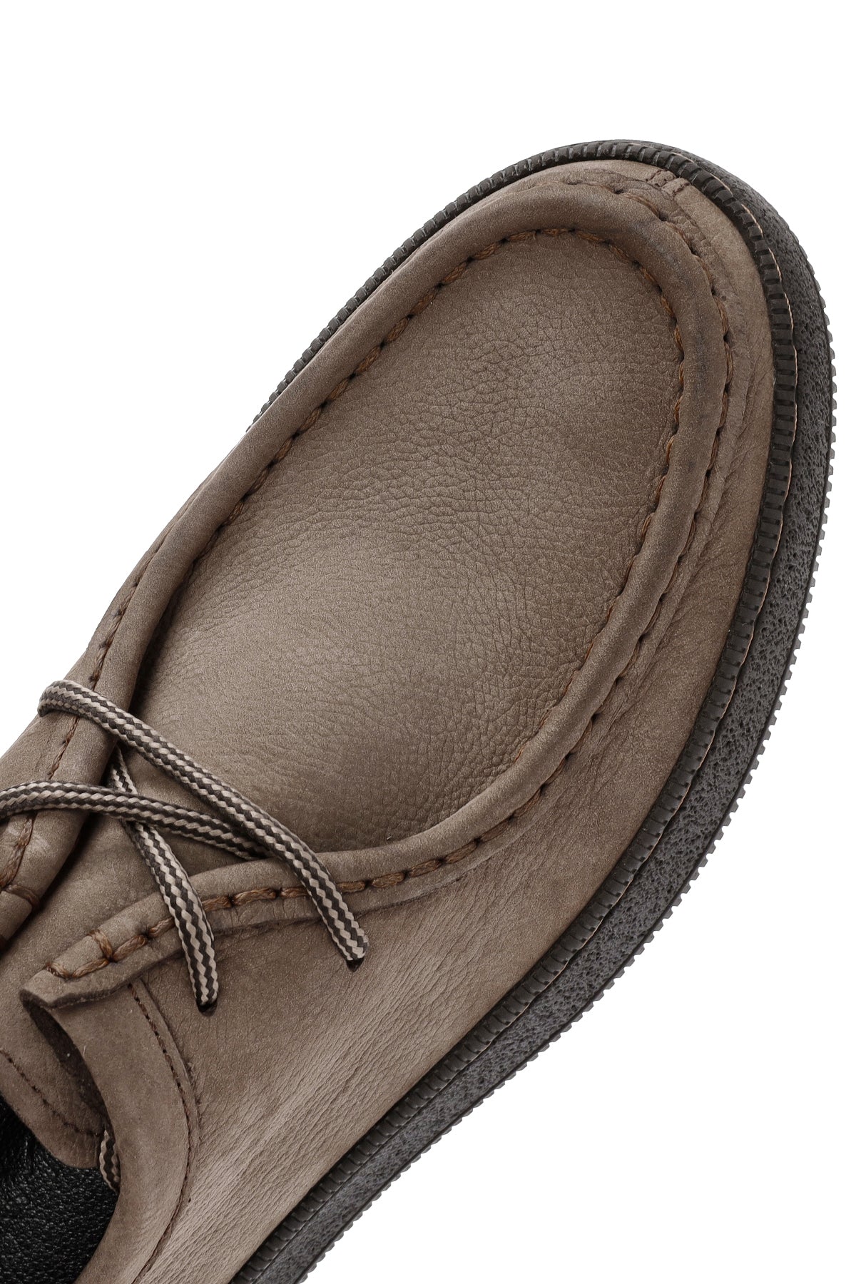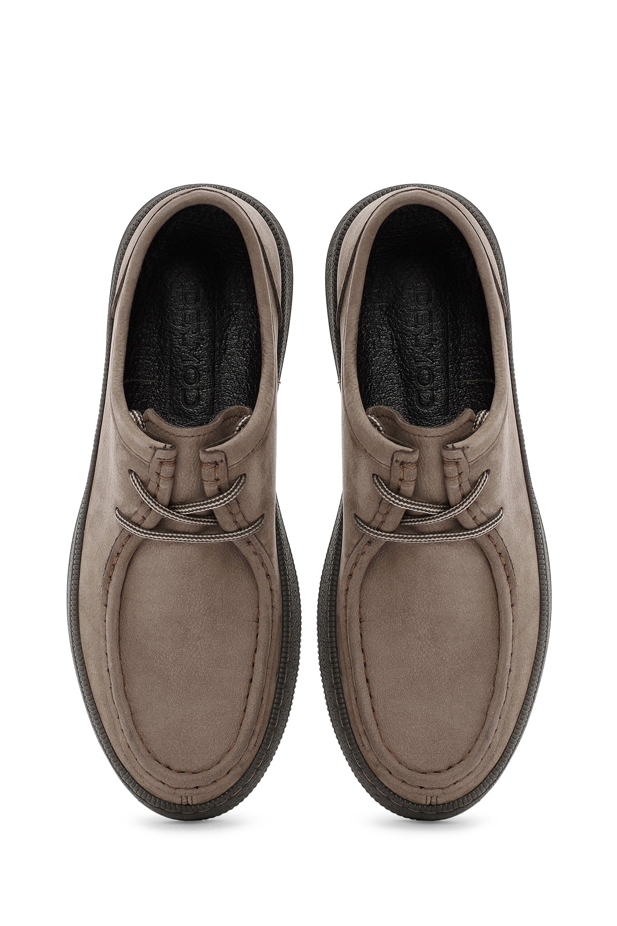 Derimod's mink-colored nubuck leather casual shoes are a timeless design that completes men's daily elegance. The carefully selected nubuck leather material gives the shoe a premium character with its natural texture and matte appearance, while the warm and natural vibe of the mink tone perfectly matches every outfit. Thanks to its laced design, the model fits snugly on the foot and offers a breathable structure with its textile inner lining. The 2 cm heel height creates an ideal balance for daily use, and this model in the casual shoe category can be comfortably preferred during seasonal transitions. The unique soft feel and durability of nubuck leather maintain their first-day quality even after long-term use. Offering a wide range of uses from office environments to daily meetings, from shopping to social events, the shoe becomes an indispensable piece in the modern man's wardrobe. With its classic lace details and minimal lines, it creates a harmonious look with both sporty and classic outfits. Product code: 25WFD7541V3