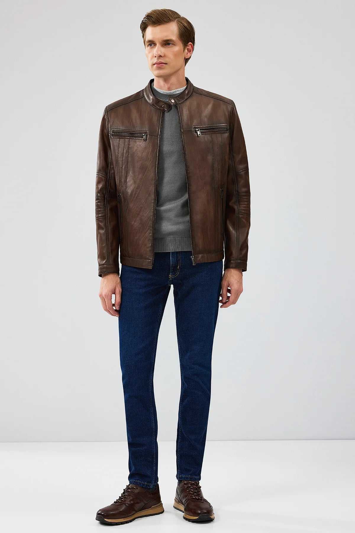 Show off your style with Derimod's Gabriel Men's Brown Regular Leather Sports Jacket, which combines elegance and style. Product code: 24WGE6537NC 25