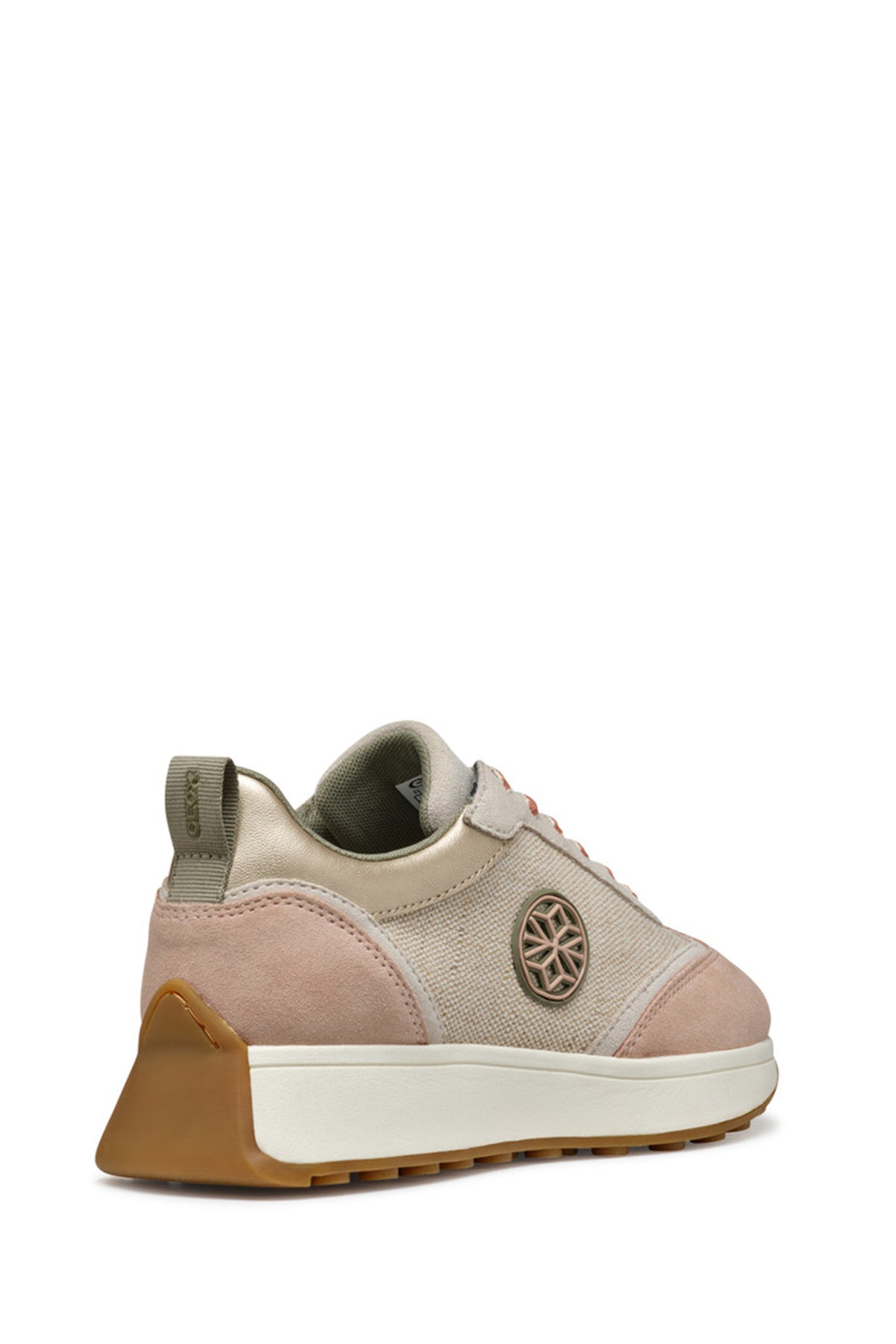 Geox Women Beige D Amabel A Lace-Up Thick-Soled Leather Sneaker