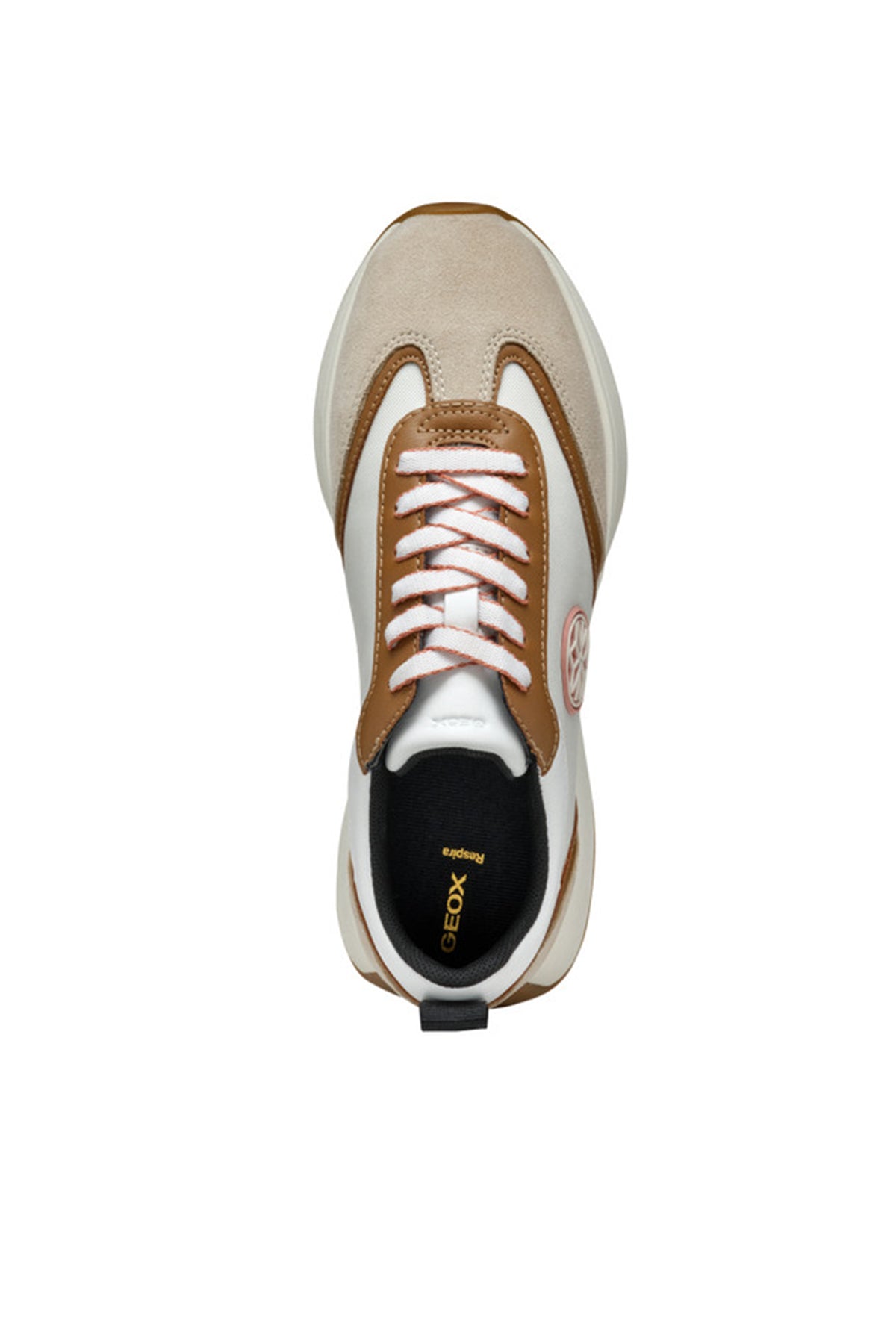 Geox Women Beige D Amabel Lace-Up Thick-Soled Leather Sneaker