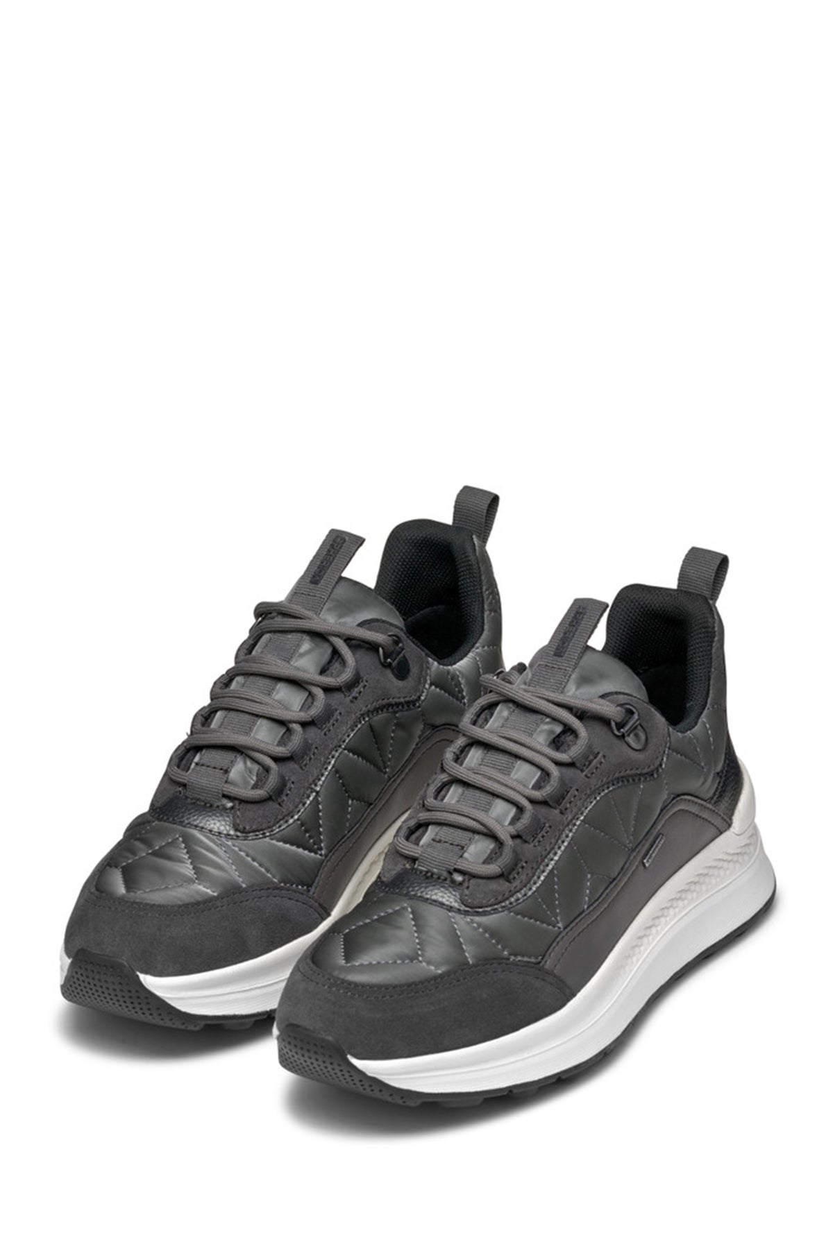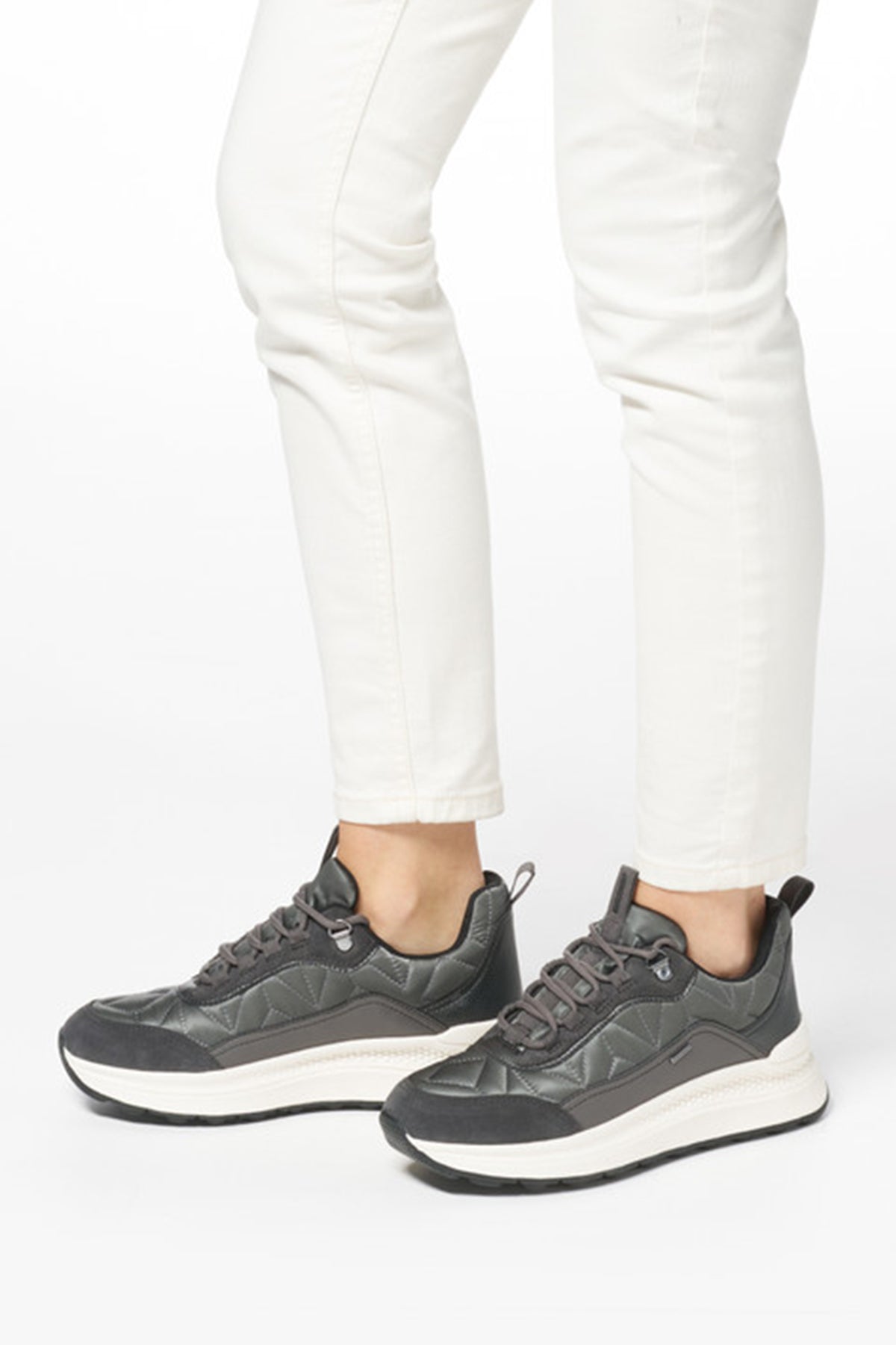 Geox Woman Grey Laced Thick Soled Fabric Sneakers