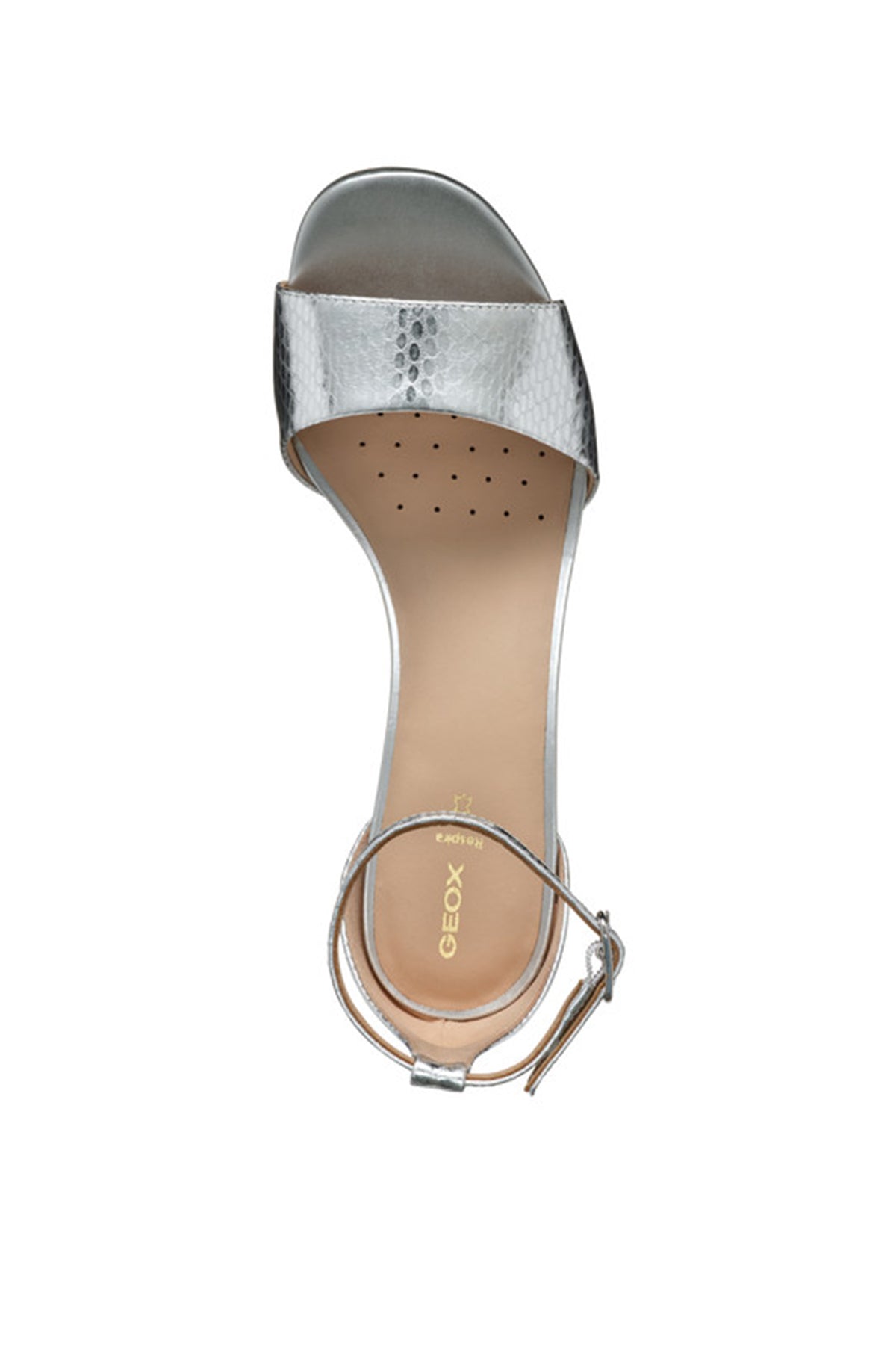 Geox Women Silver New Eraklia 80 Ankle Buckle Thick Heeled Metallic Leather Shoe