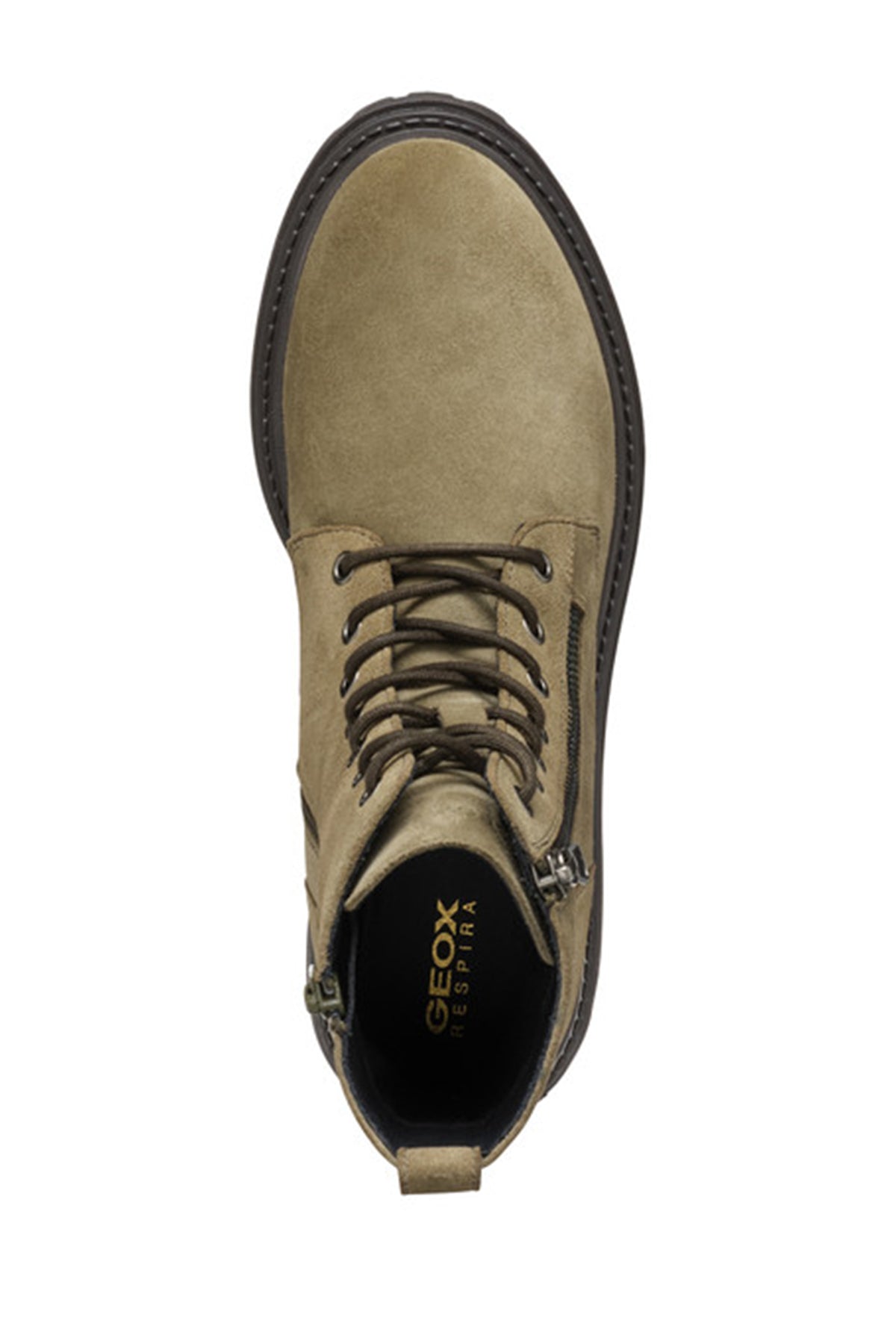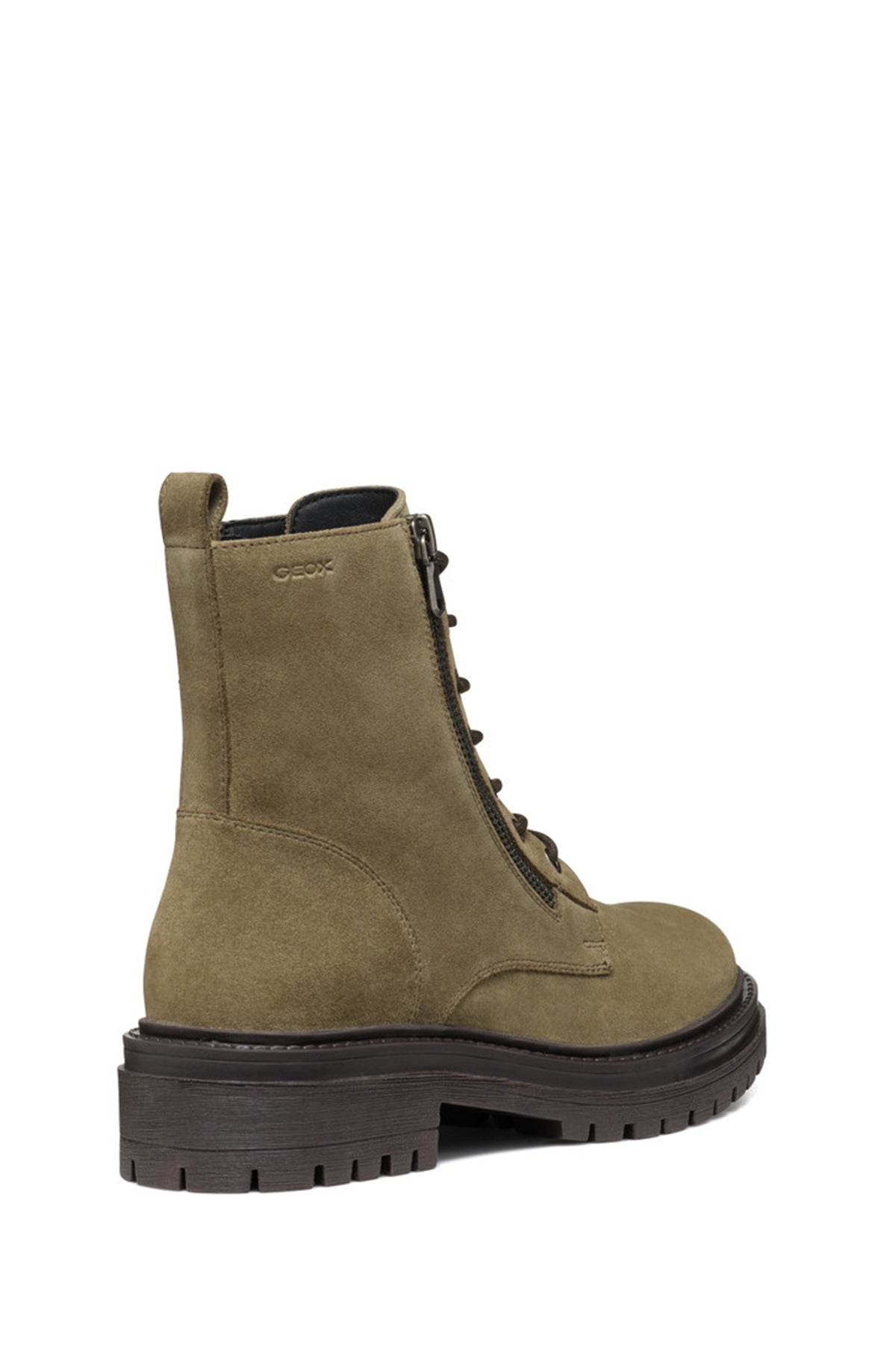 Geox Women’s Khaki Lace-Up Zippered Suede Leather Combat Boot