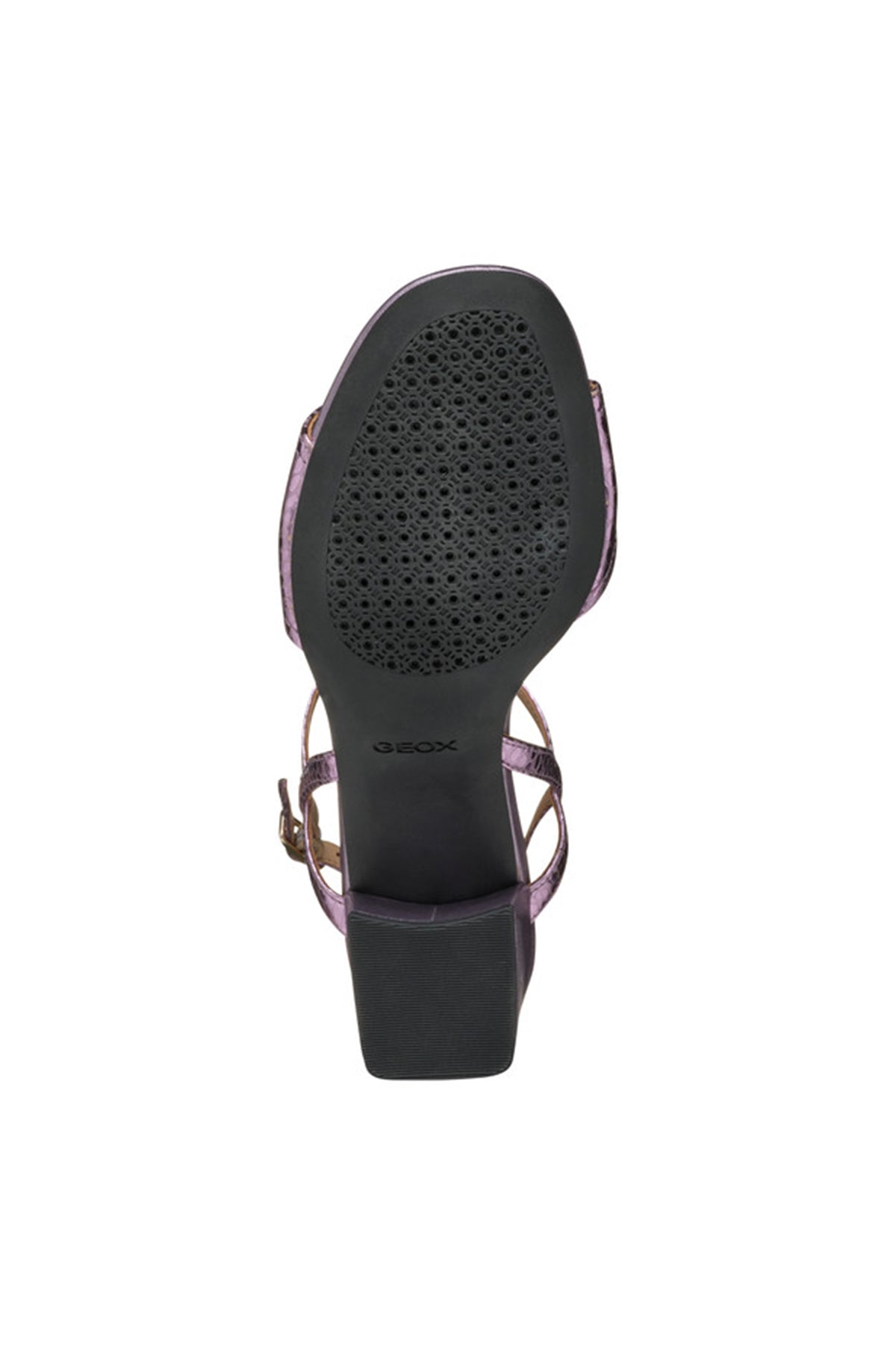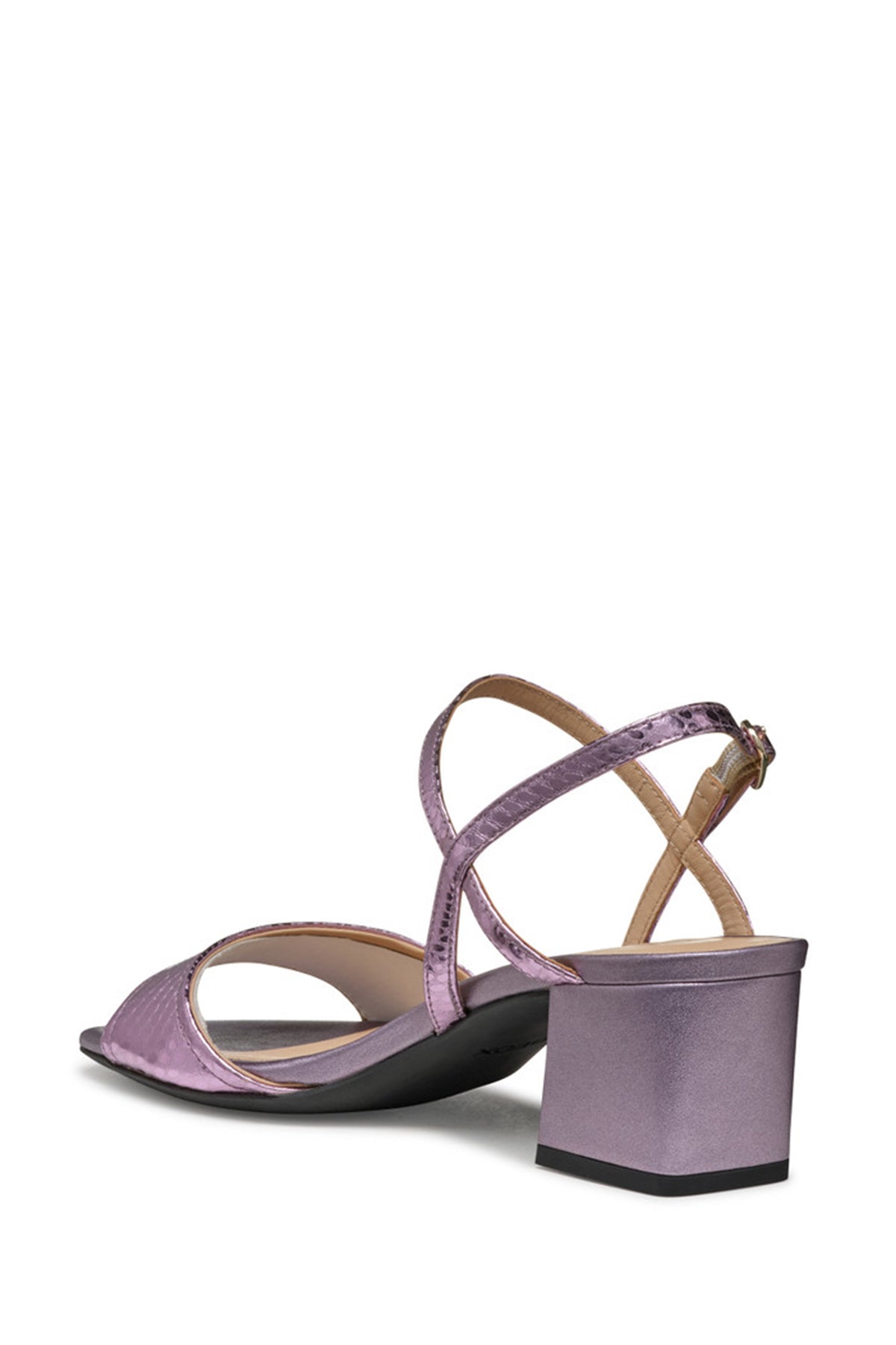 Geox Women Lilac New Eraklia 50 Ankle Buckle Thick Heel Metallic Leather Sandal