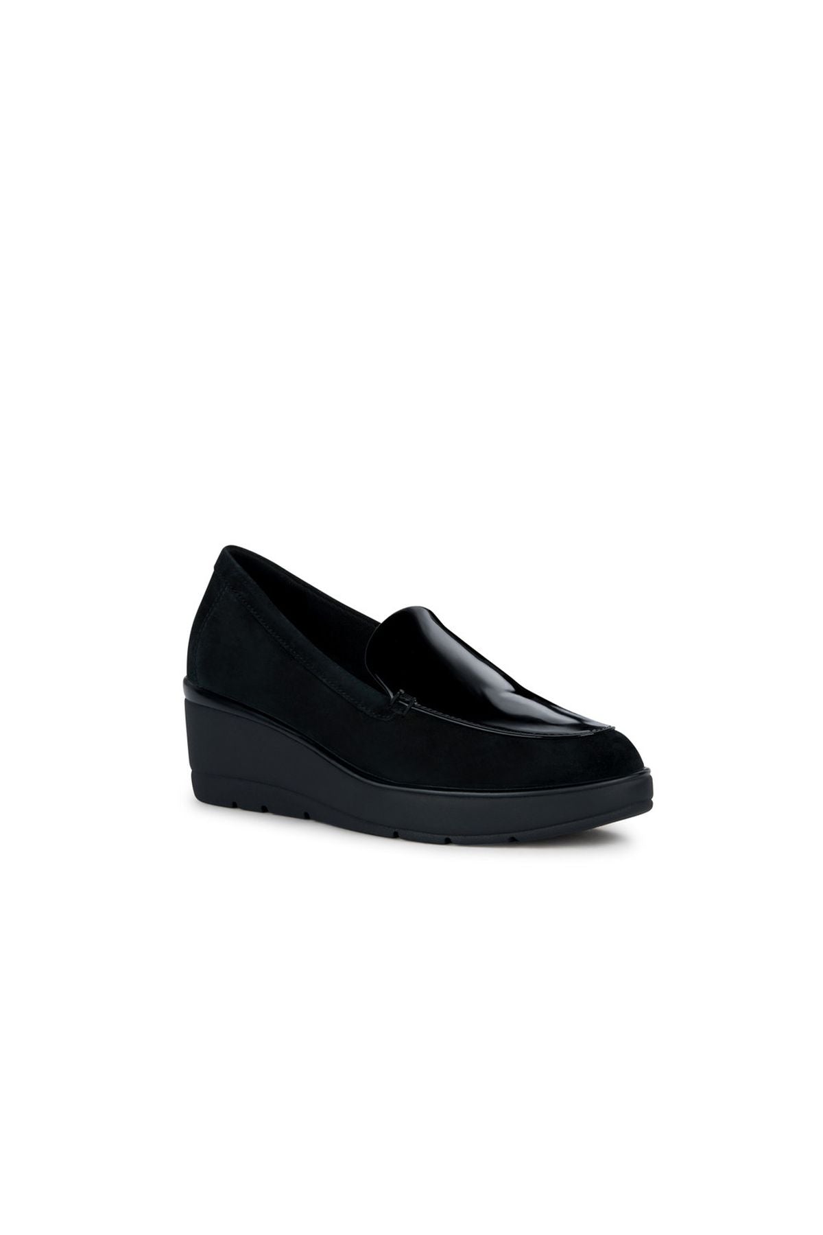 Geox Women's Black Ide B Wedge Heeled Leather Loafer