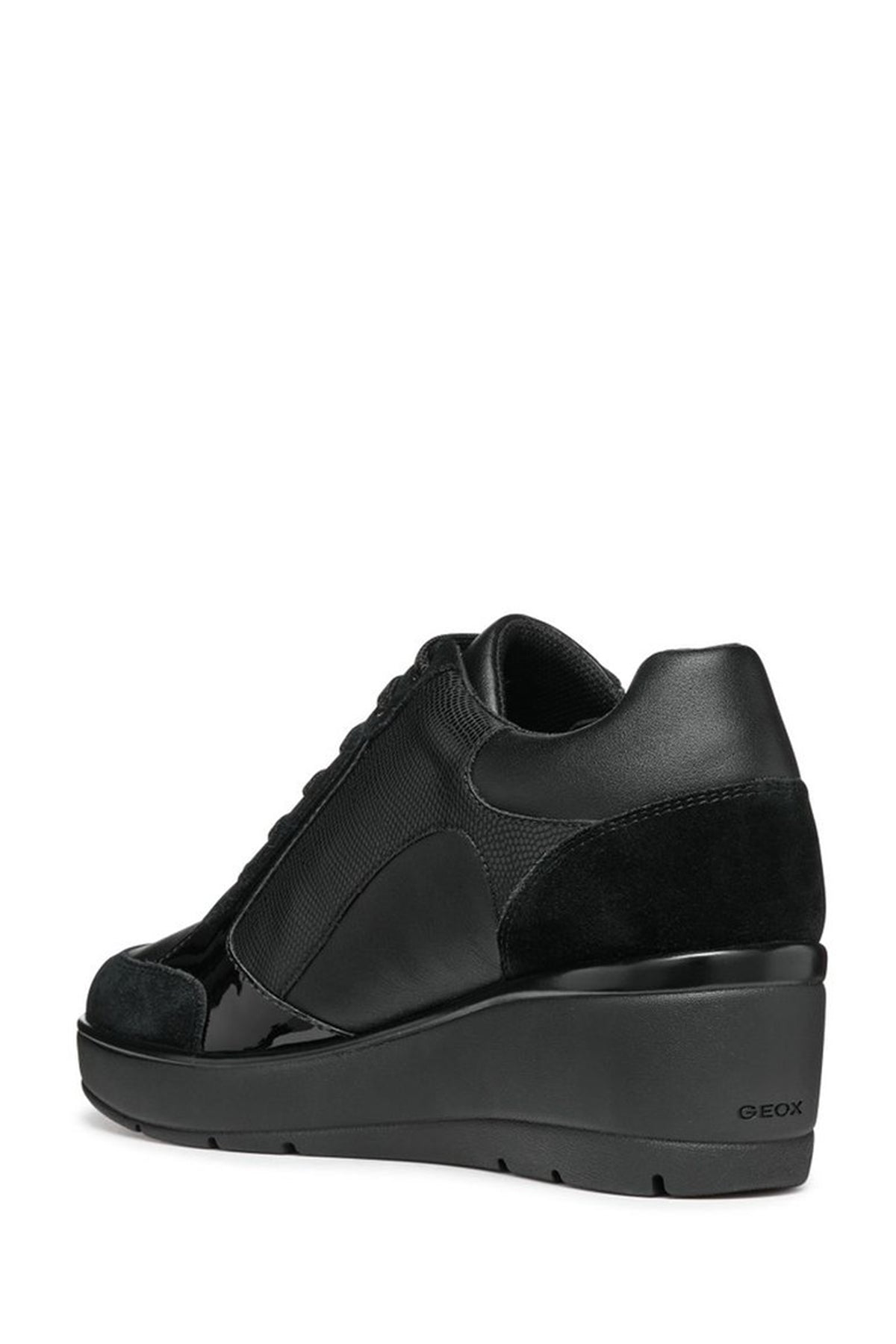 Geox Women's Black Wedge Heel Lace-Up Casual Sneakers