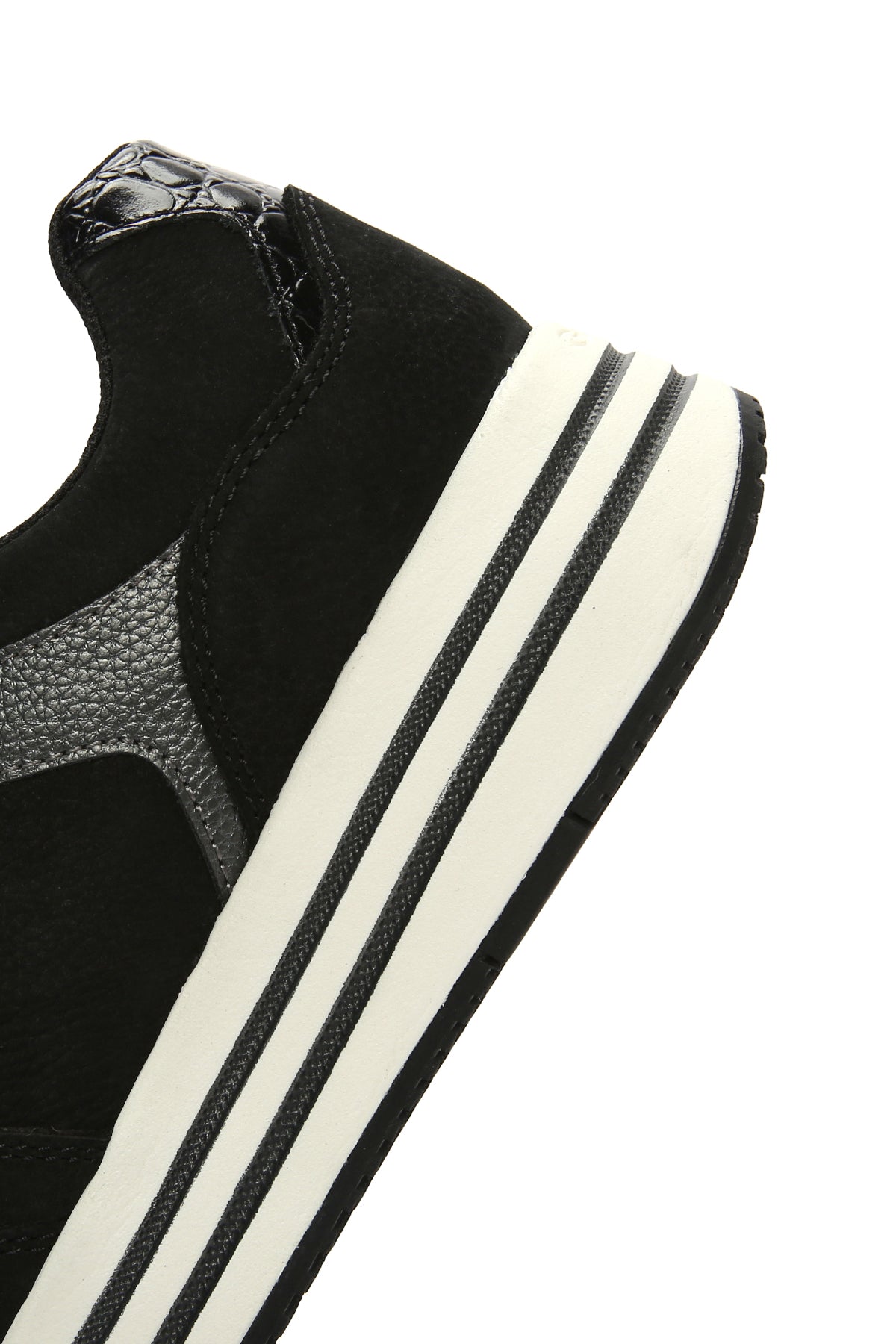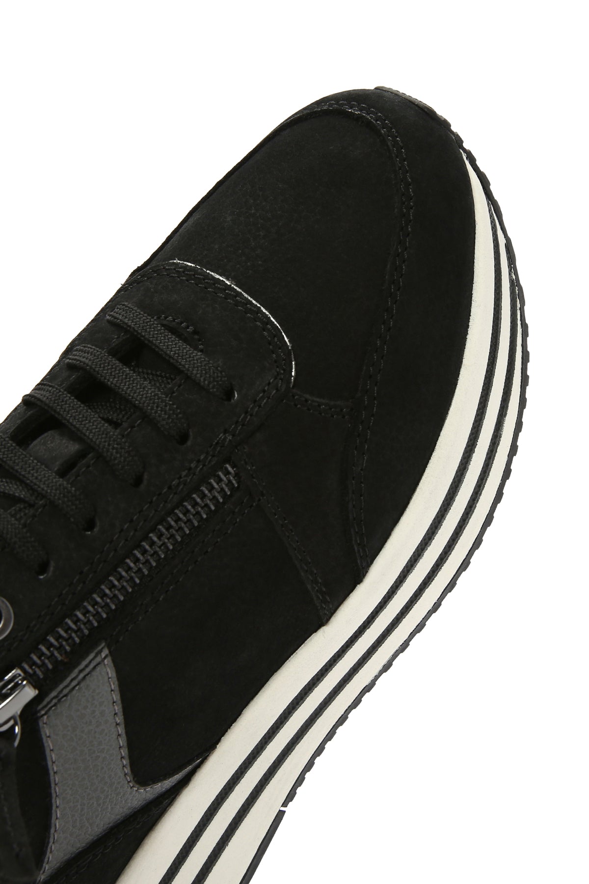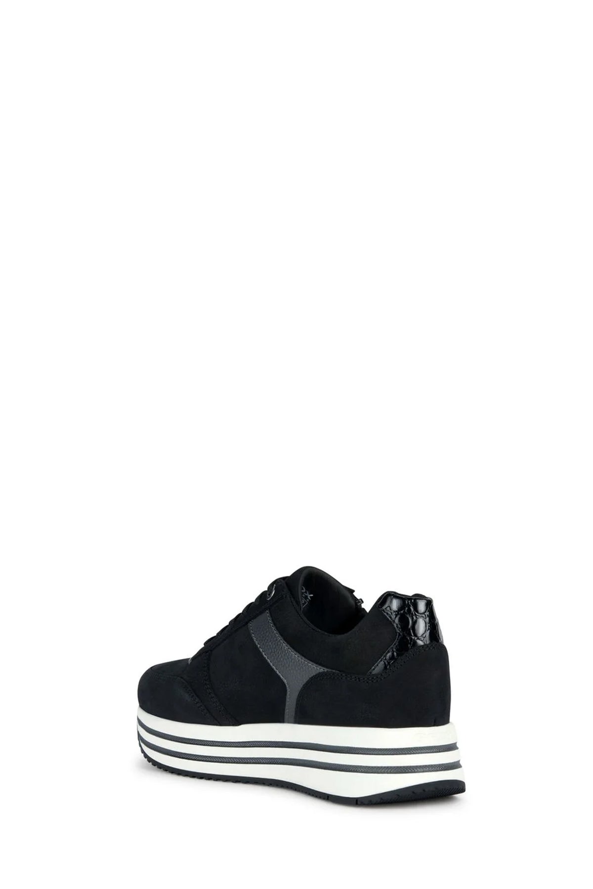 Geox Women's Black Kency Thick Sole Lace-Up Leather Sneaker