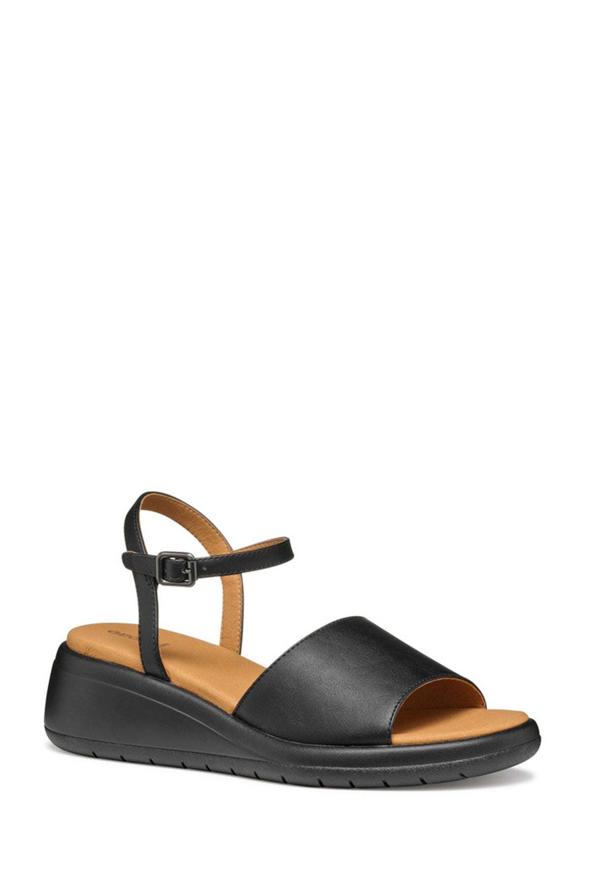 Geox Women Black Meliconia Wedge Heel Leather Sandal