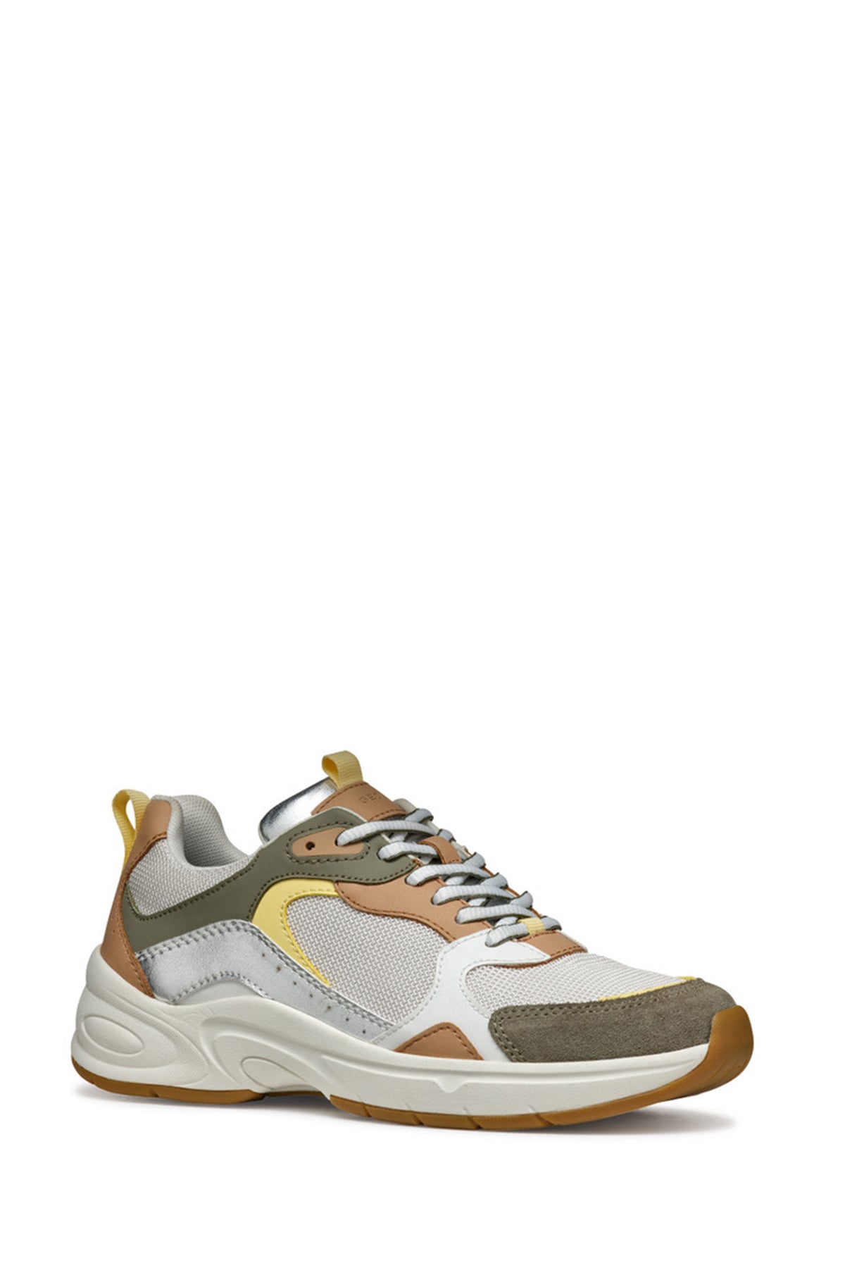 Geox Women Green Zarvia Lace-Up Thick-Soled Leather Sneaker