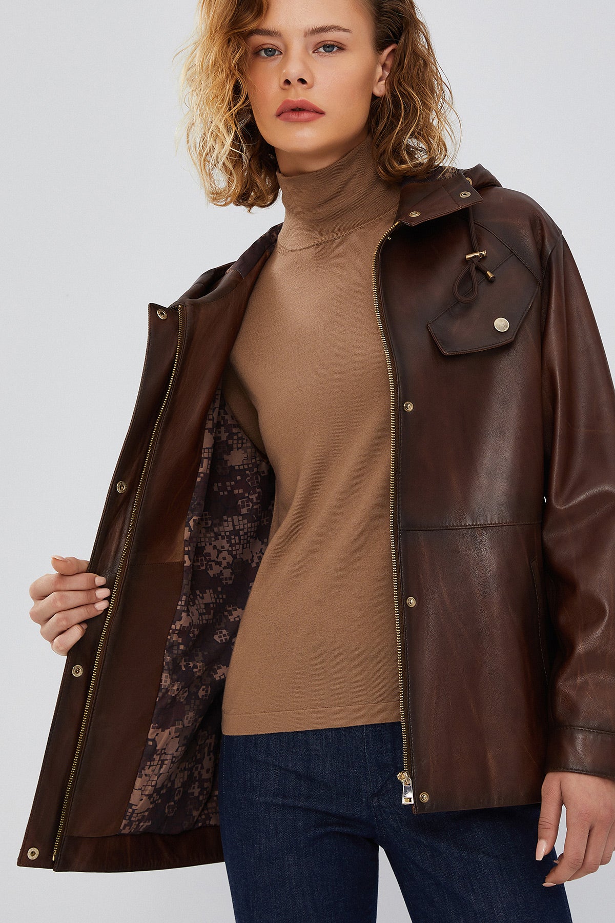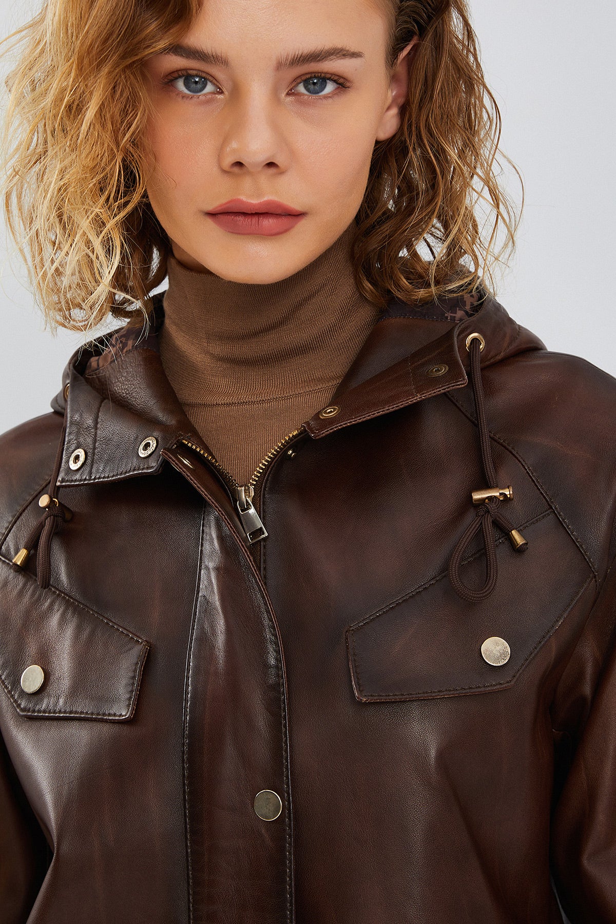 Greta Women's Brown Hooded Leather Coat
