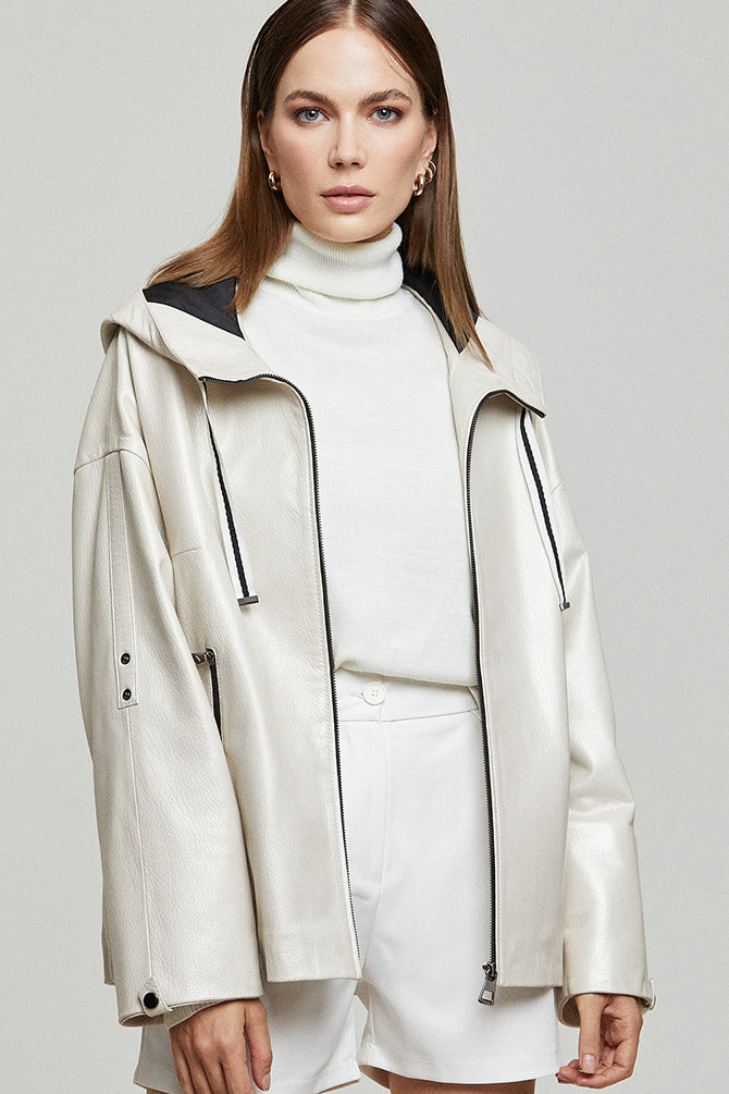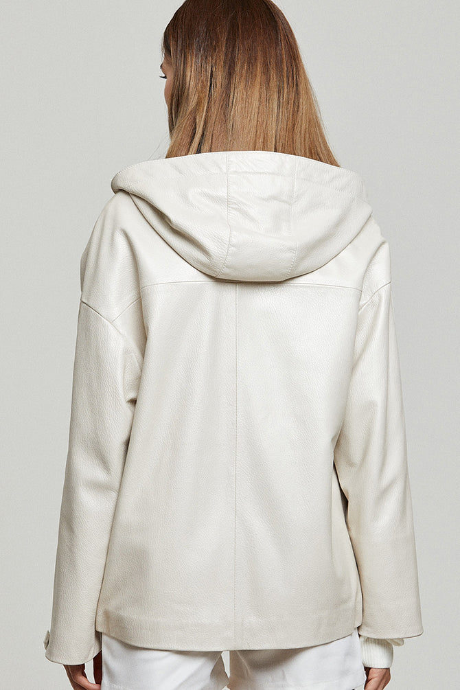 Jennifer Women's Beige Hooded Oversize Leather Jacket