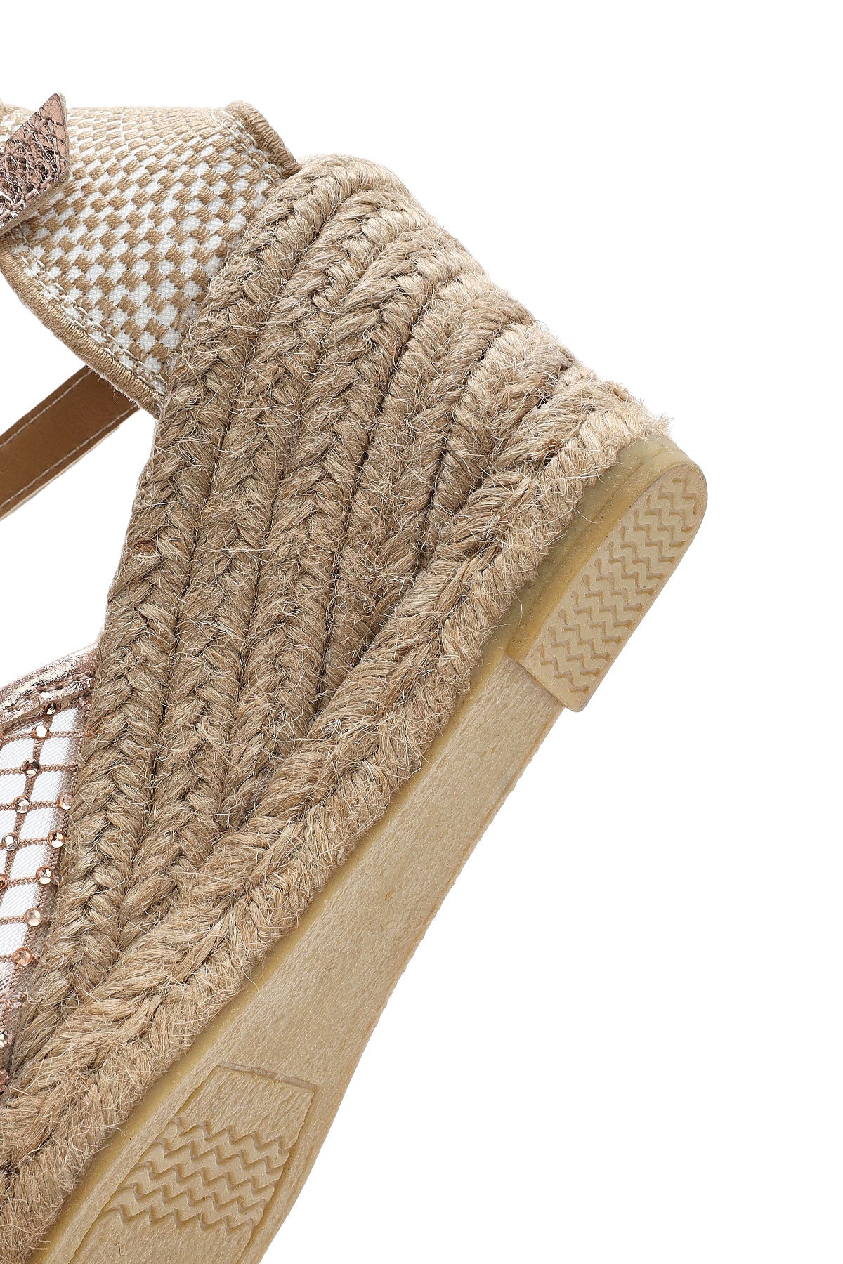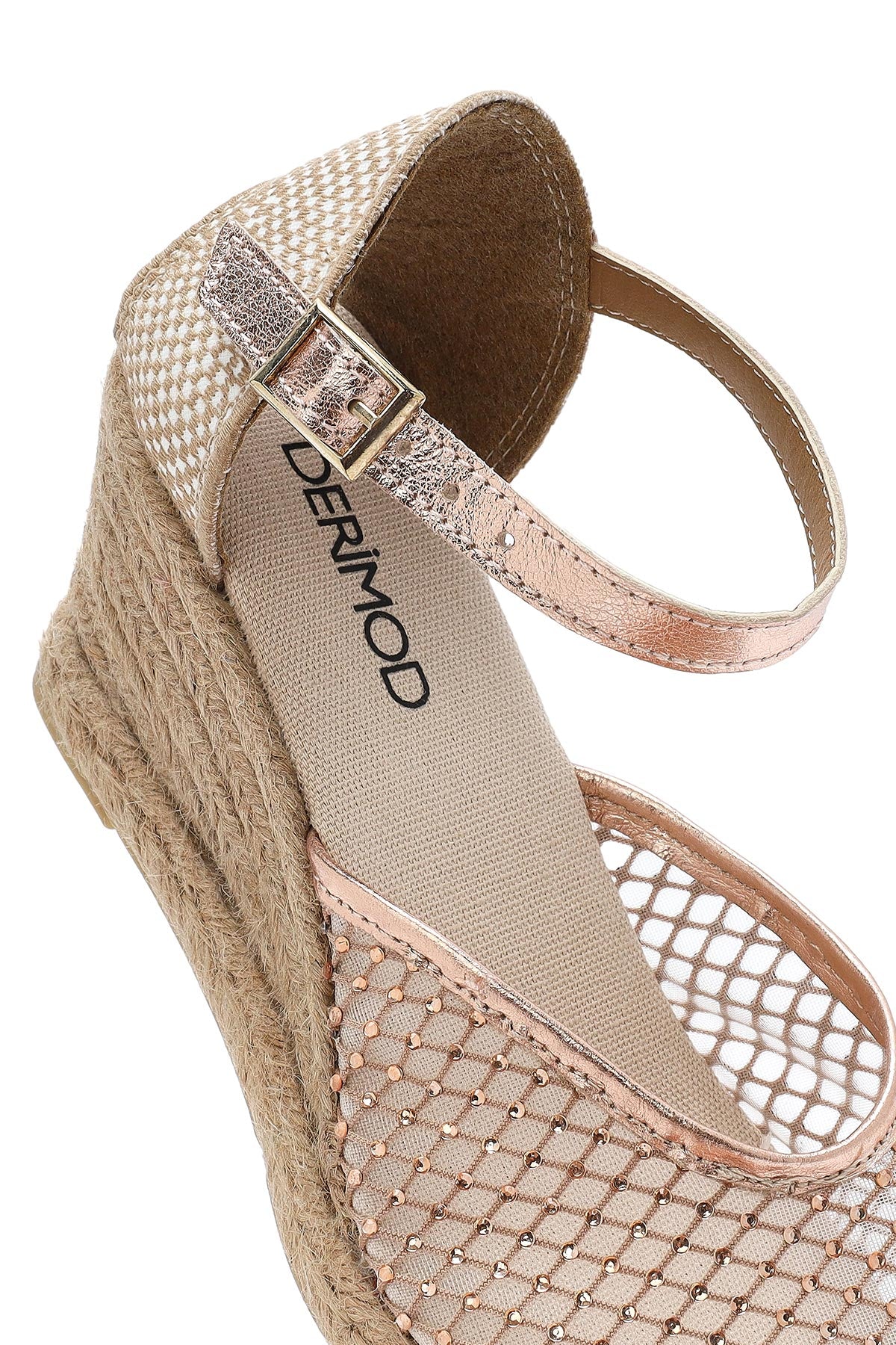 Derimod's elegance and style together Woman Show off your style with these Gold Ankle Buckle Wedge Espadrille Sandals. Product code: 25SFD207314 ZD