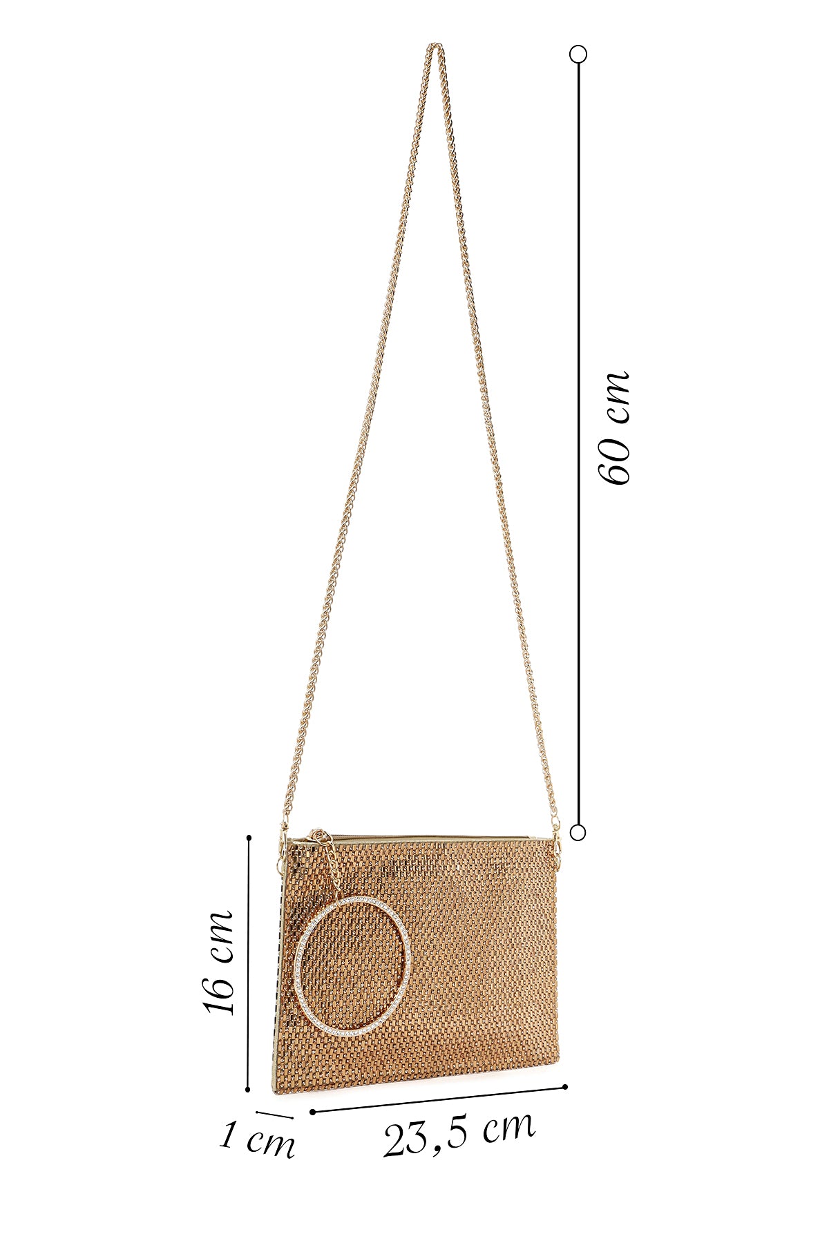 Women's Gold Stone Long Chain Strap Evening Clutch Bag