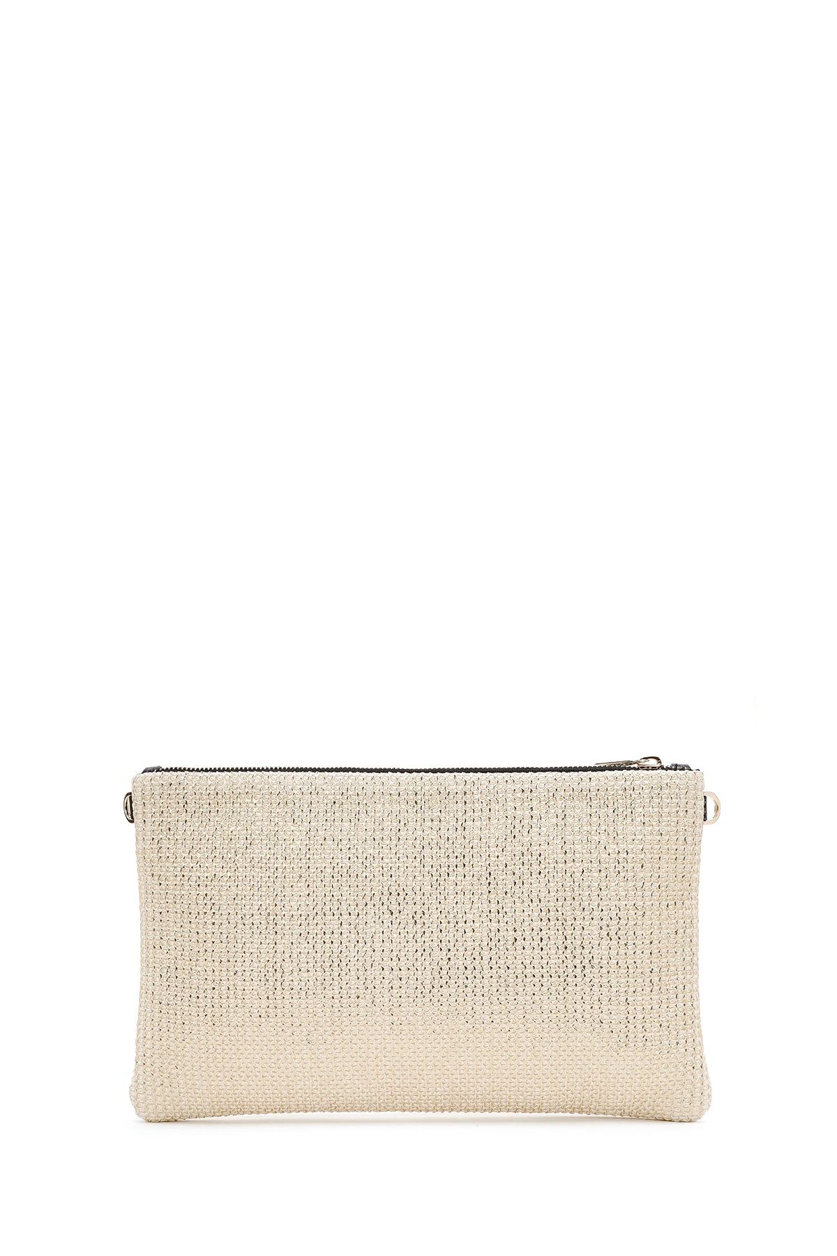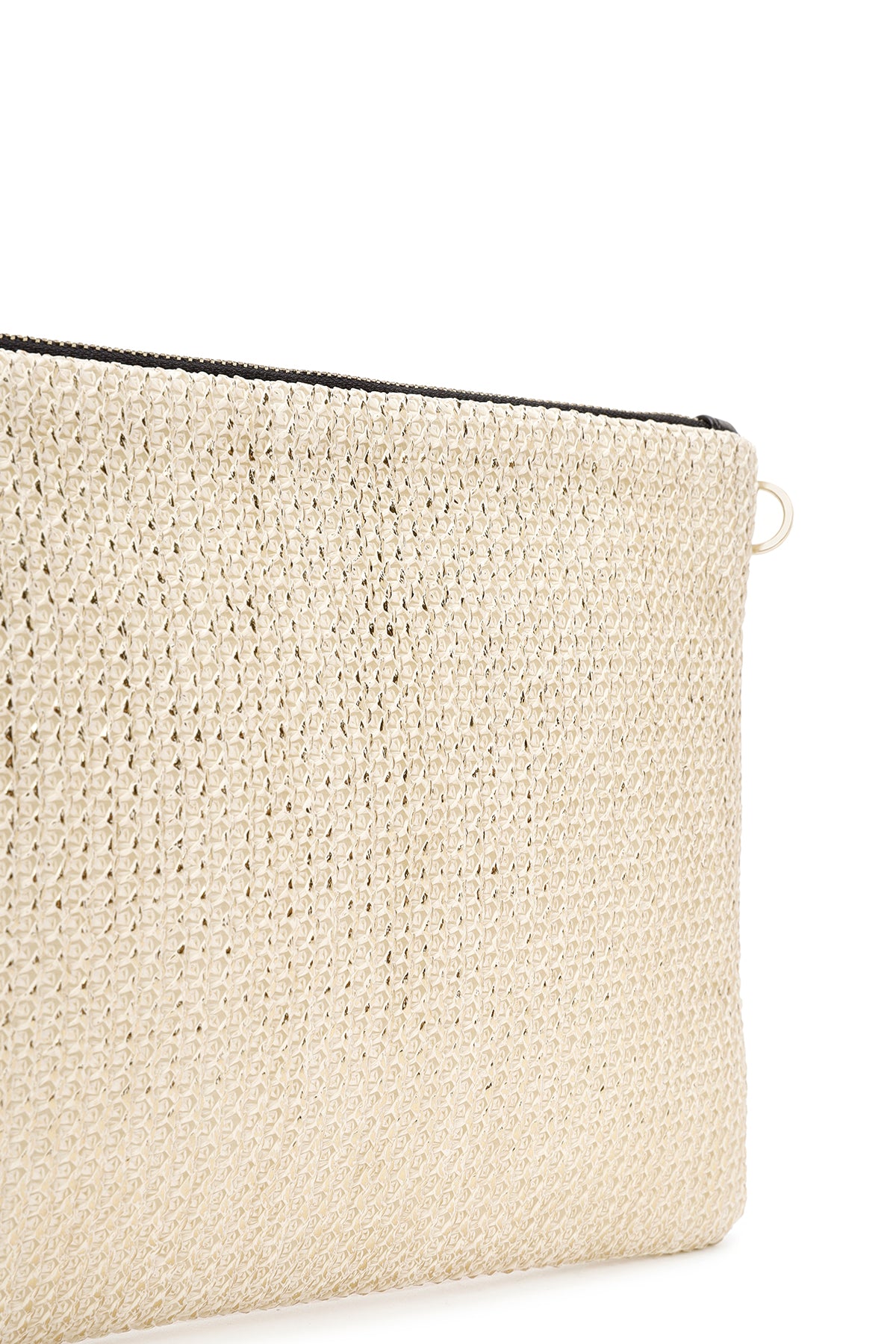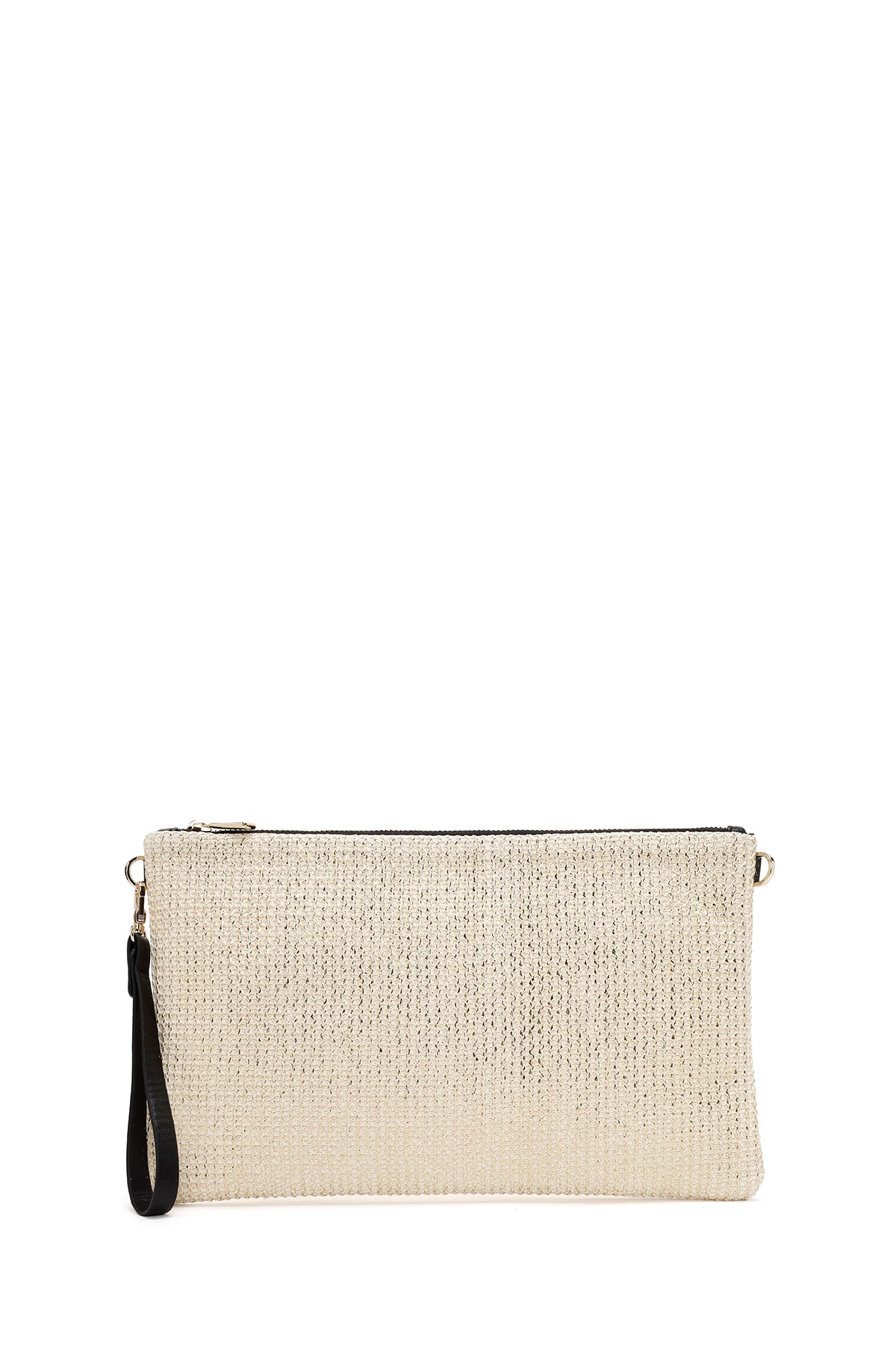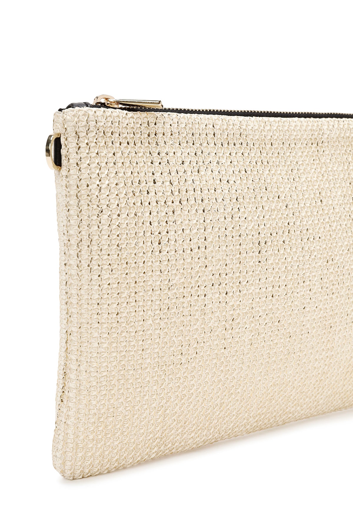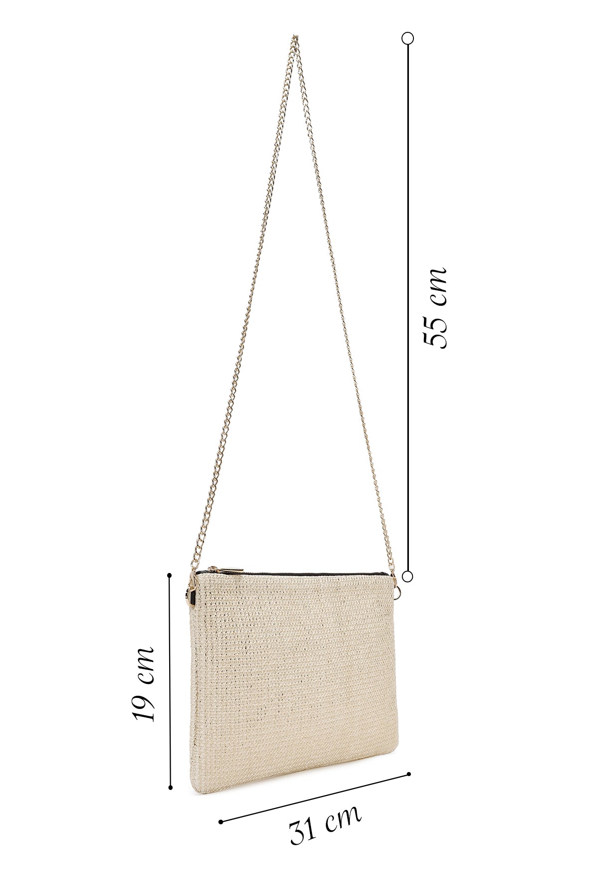 Women's Gold Long Chain Strap Straw Clutch Bag