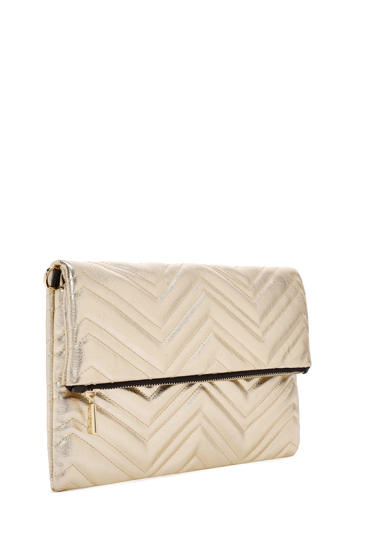 Women's Gold Long Chain Strap Quilted Clutch Bag