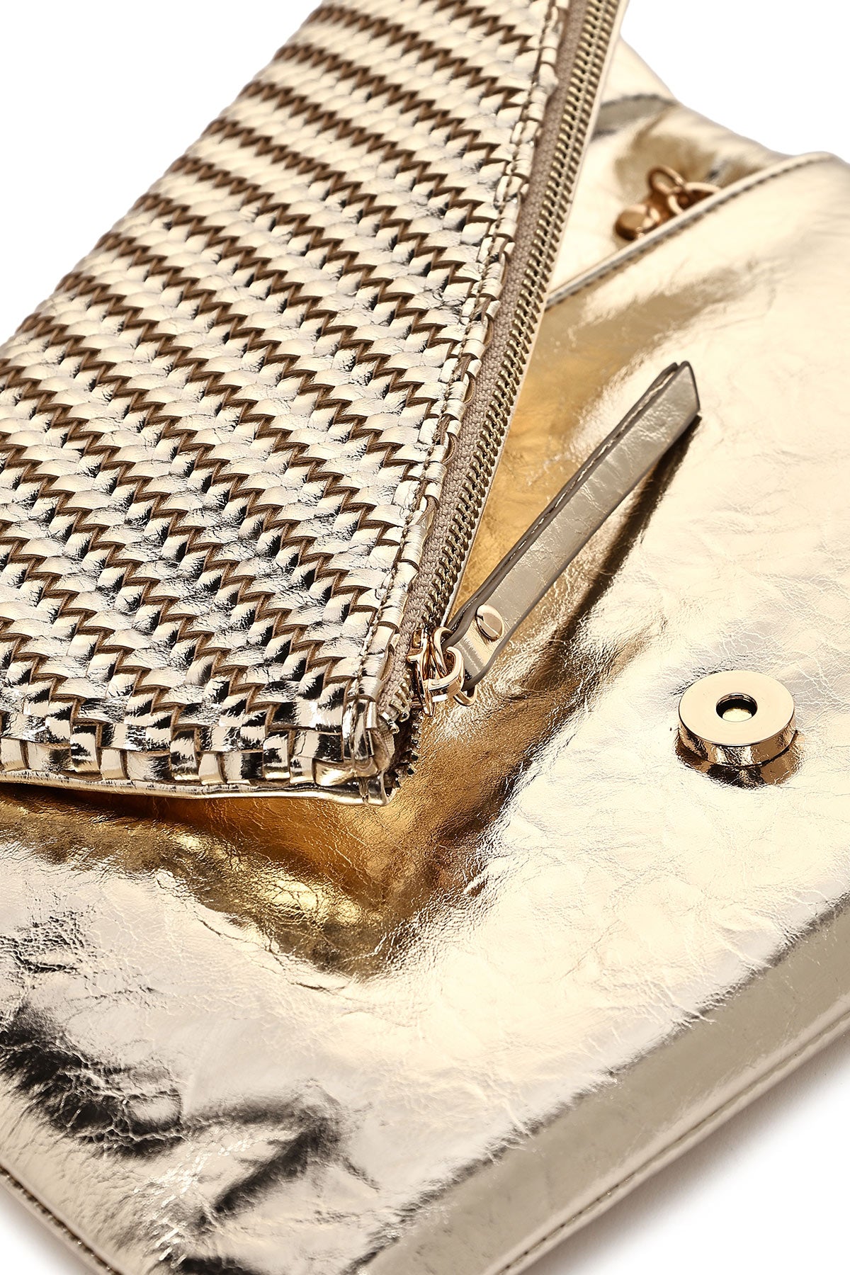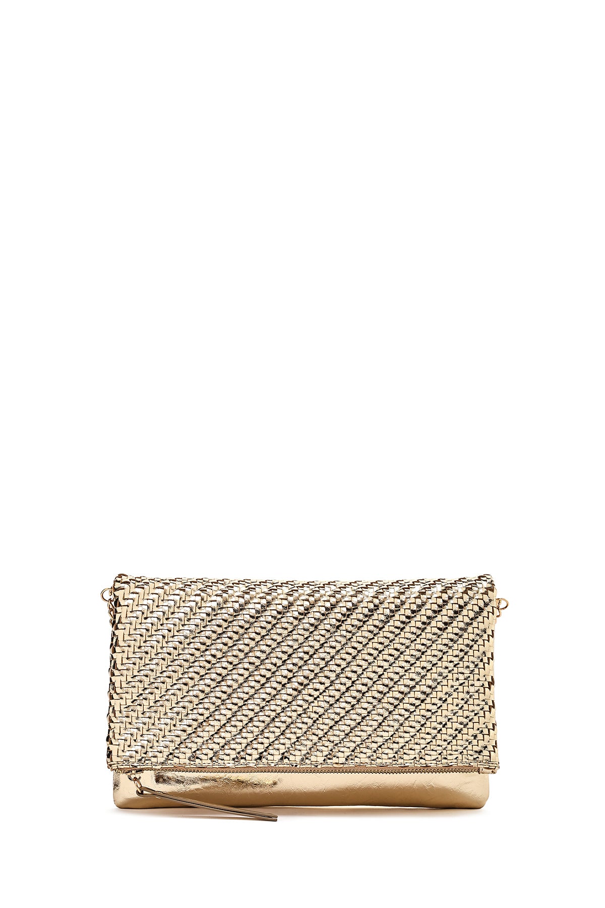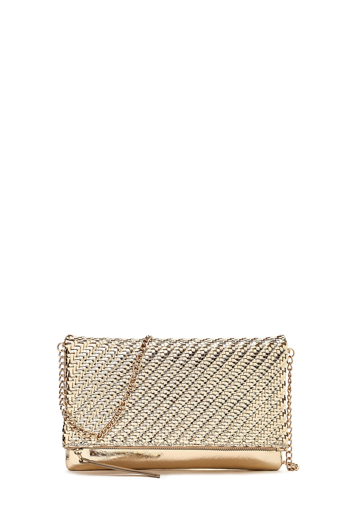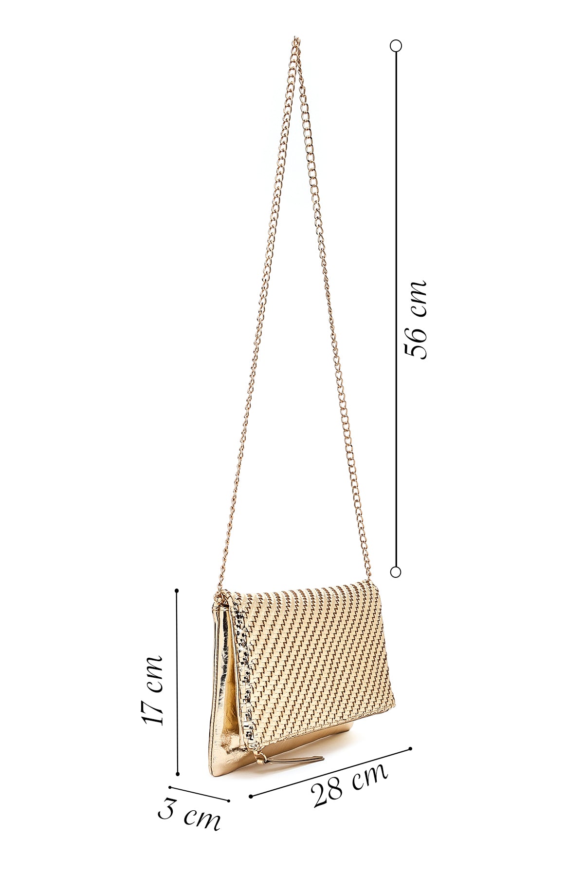 Women's Gold Long Chain Strap Braided Clutch Bag