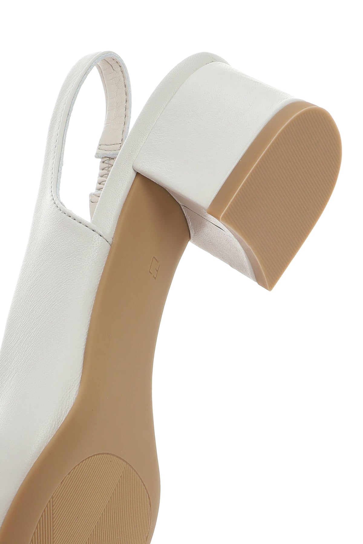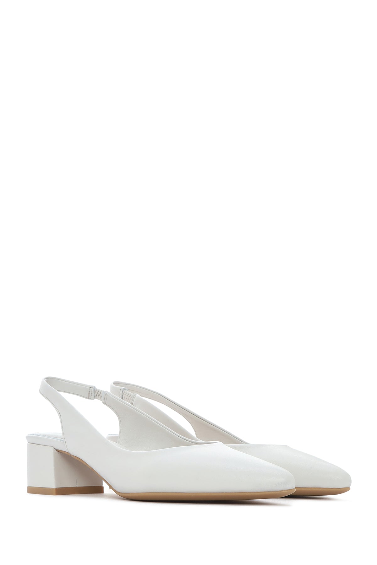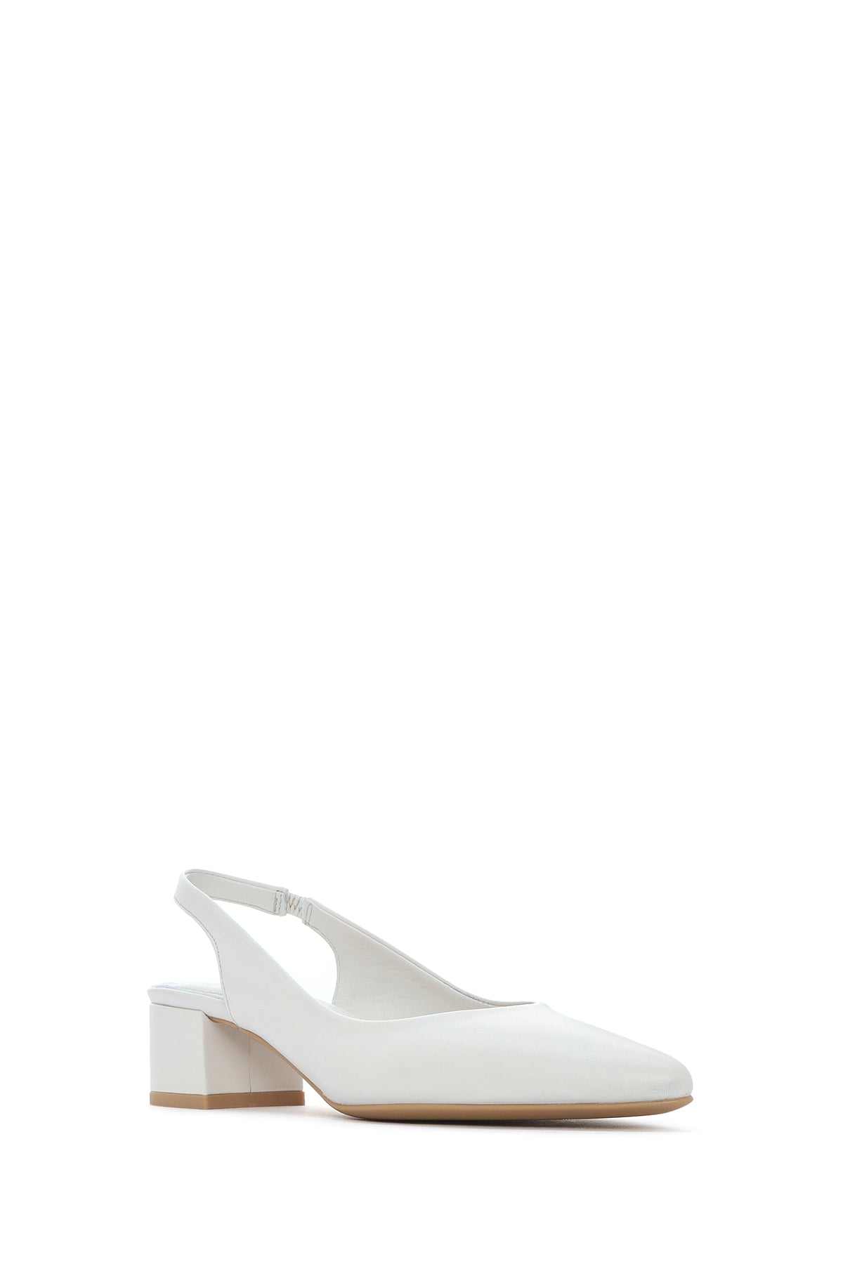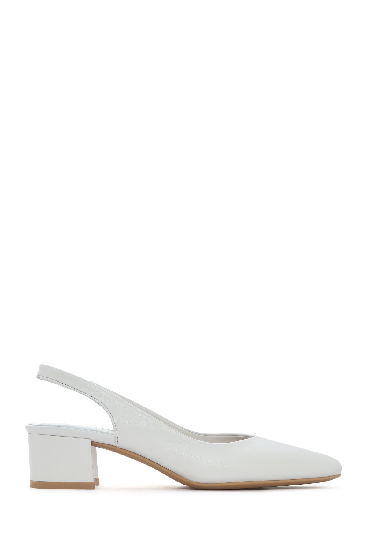 Kadın Bej Arkası Açık Kalın Kısa Topuklu Deri Ayakkabı
