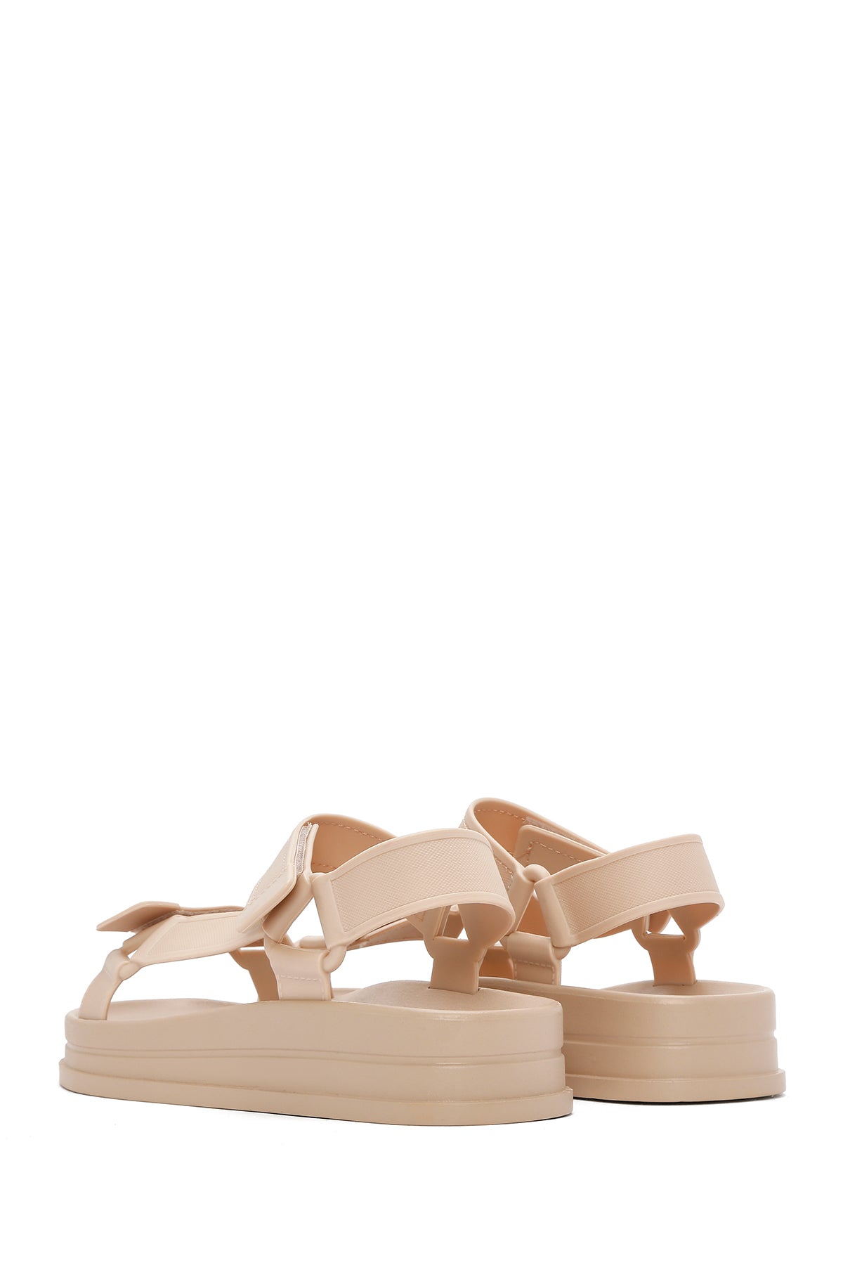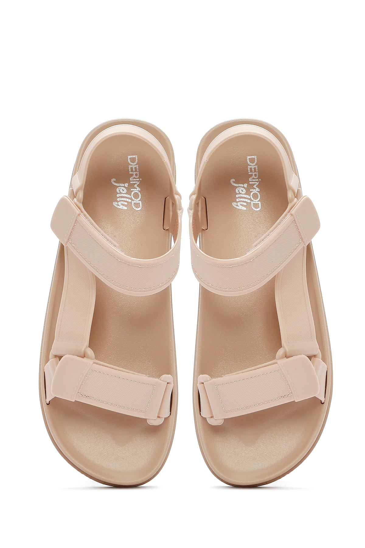 Kadın Bej Bantlı Kalın Tabanlı Jelly Sandalet