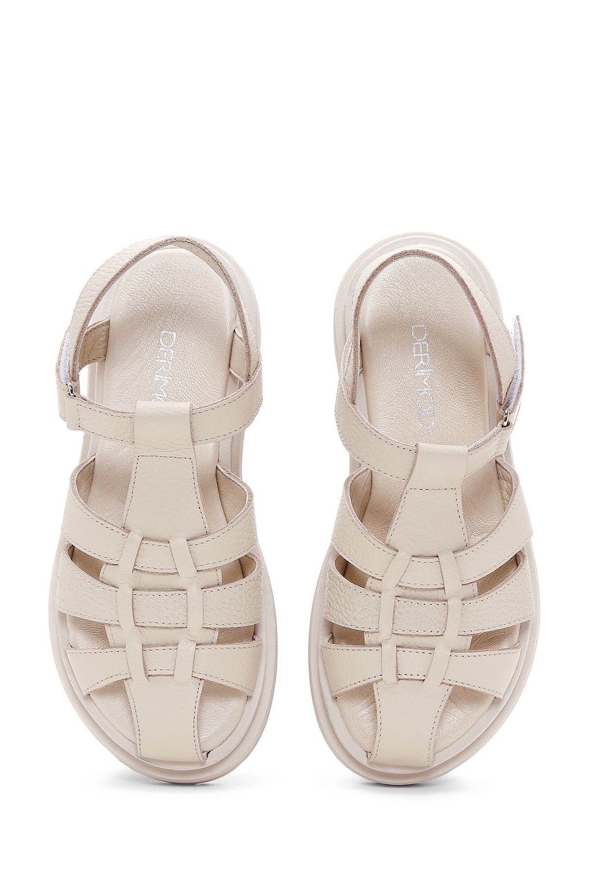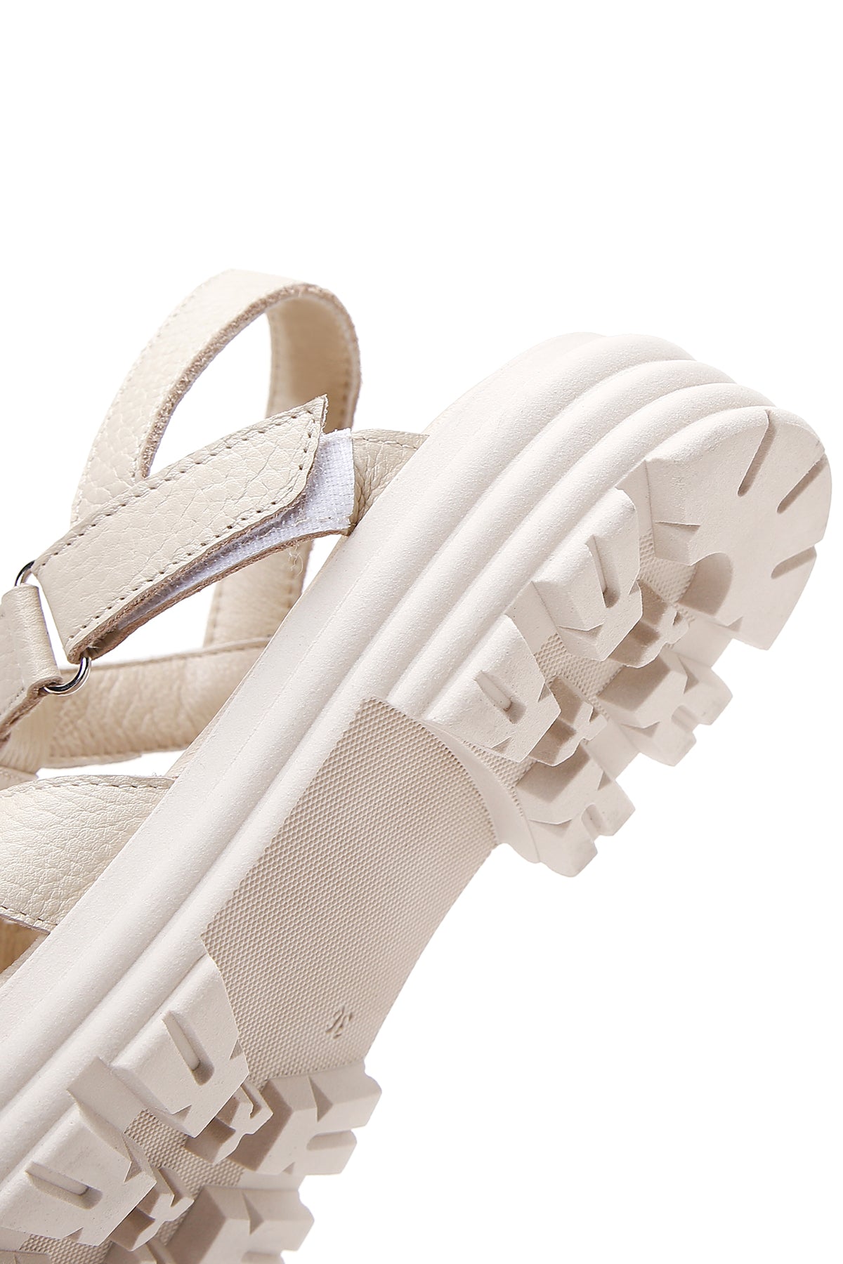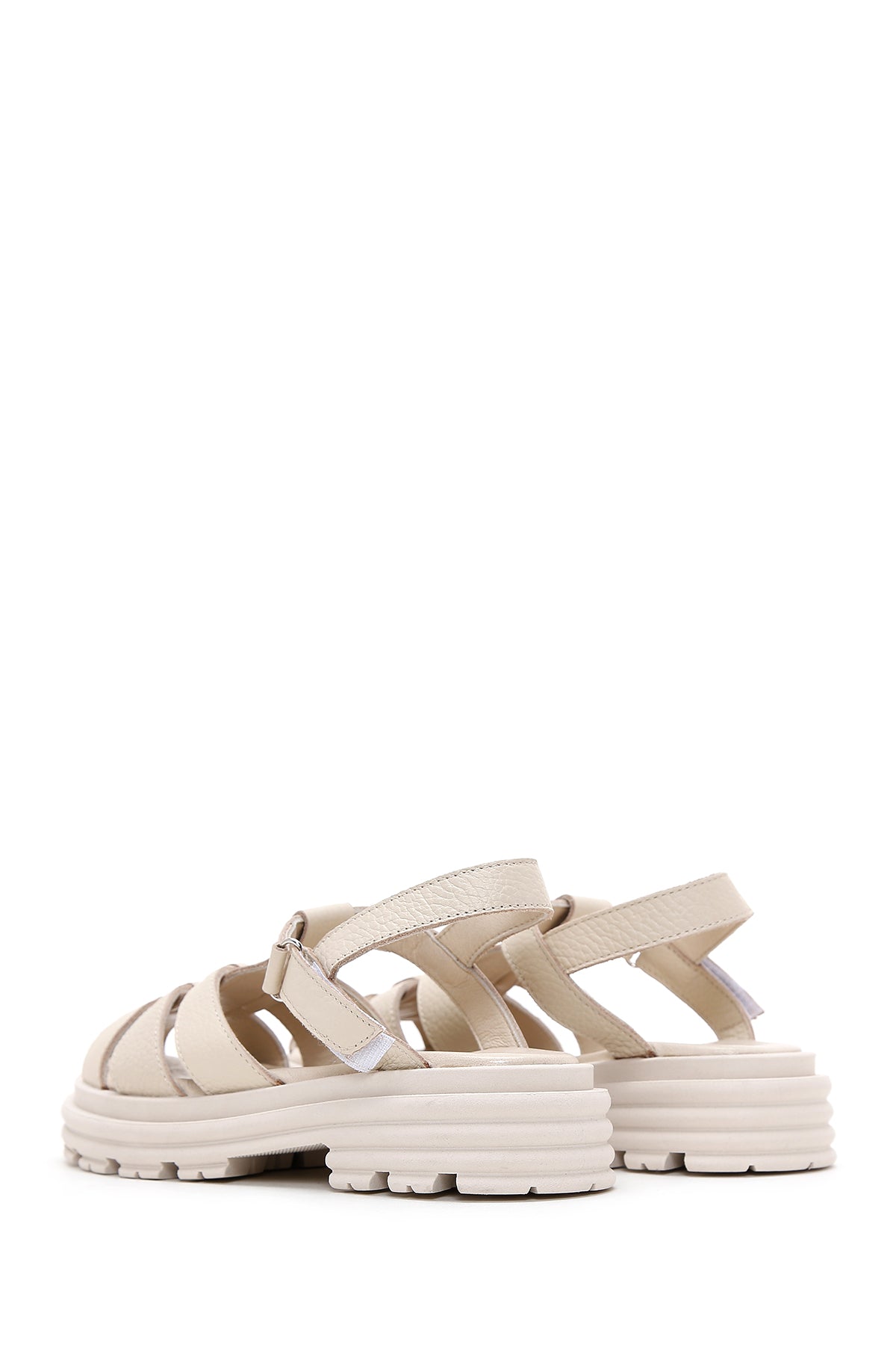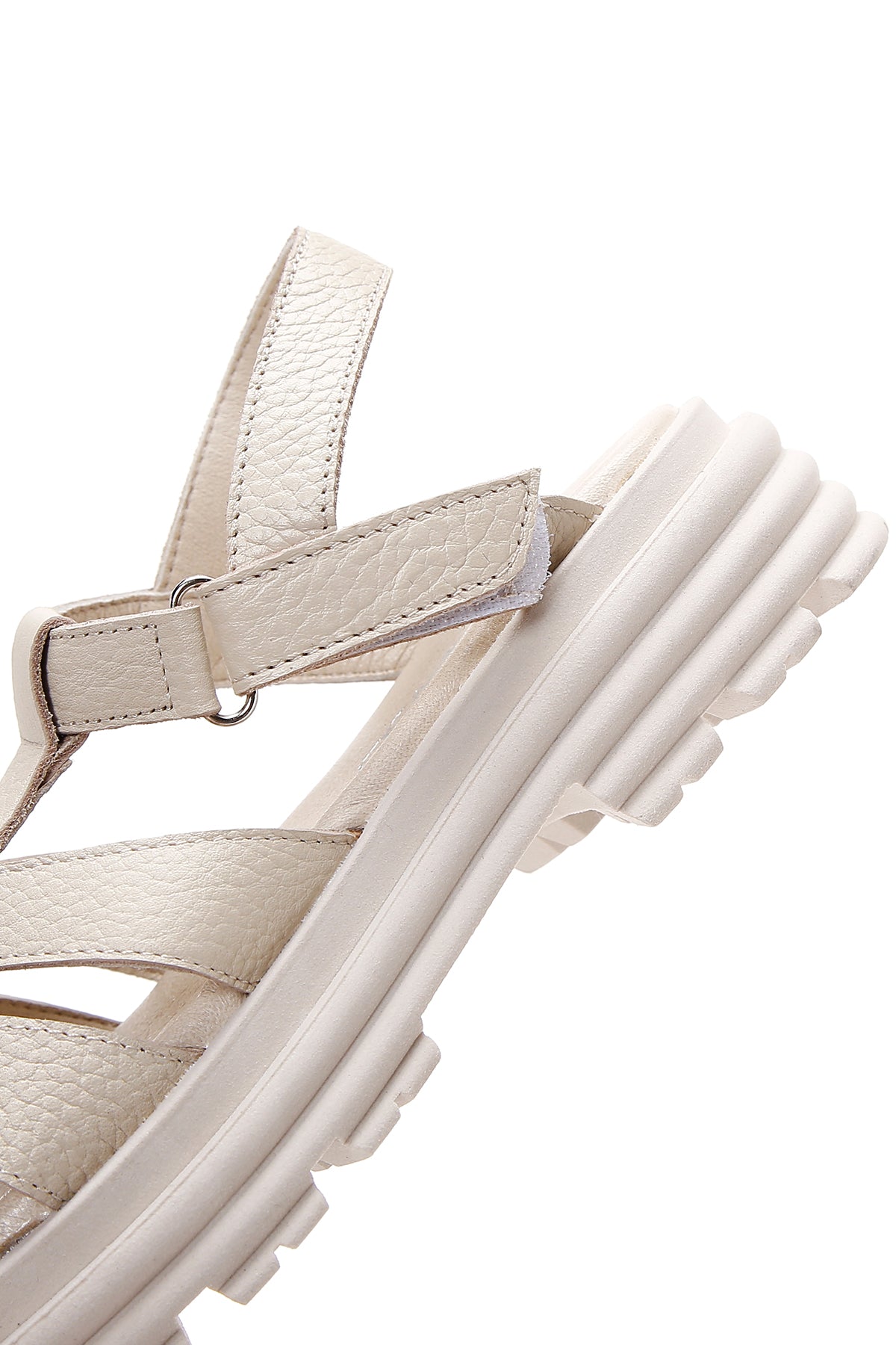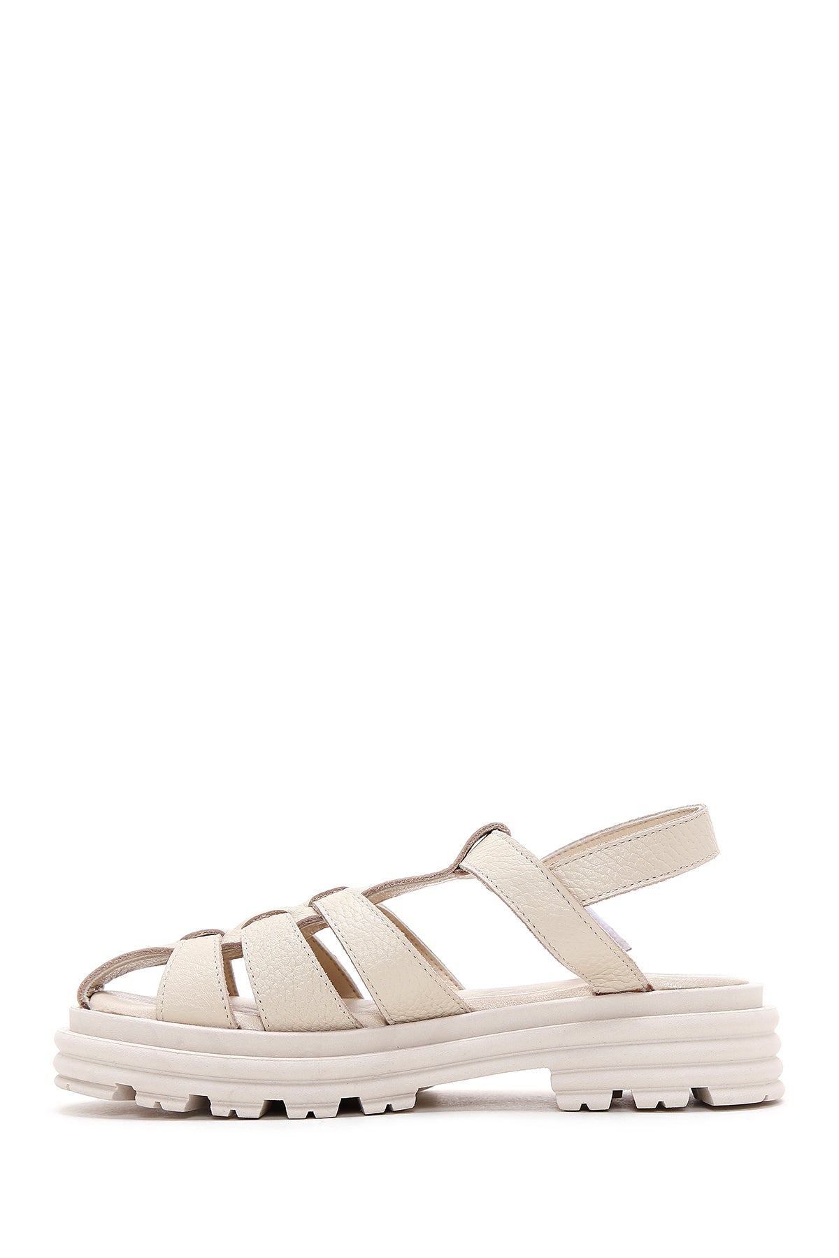 Women's Beige Ankle Strap Leather Sandals