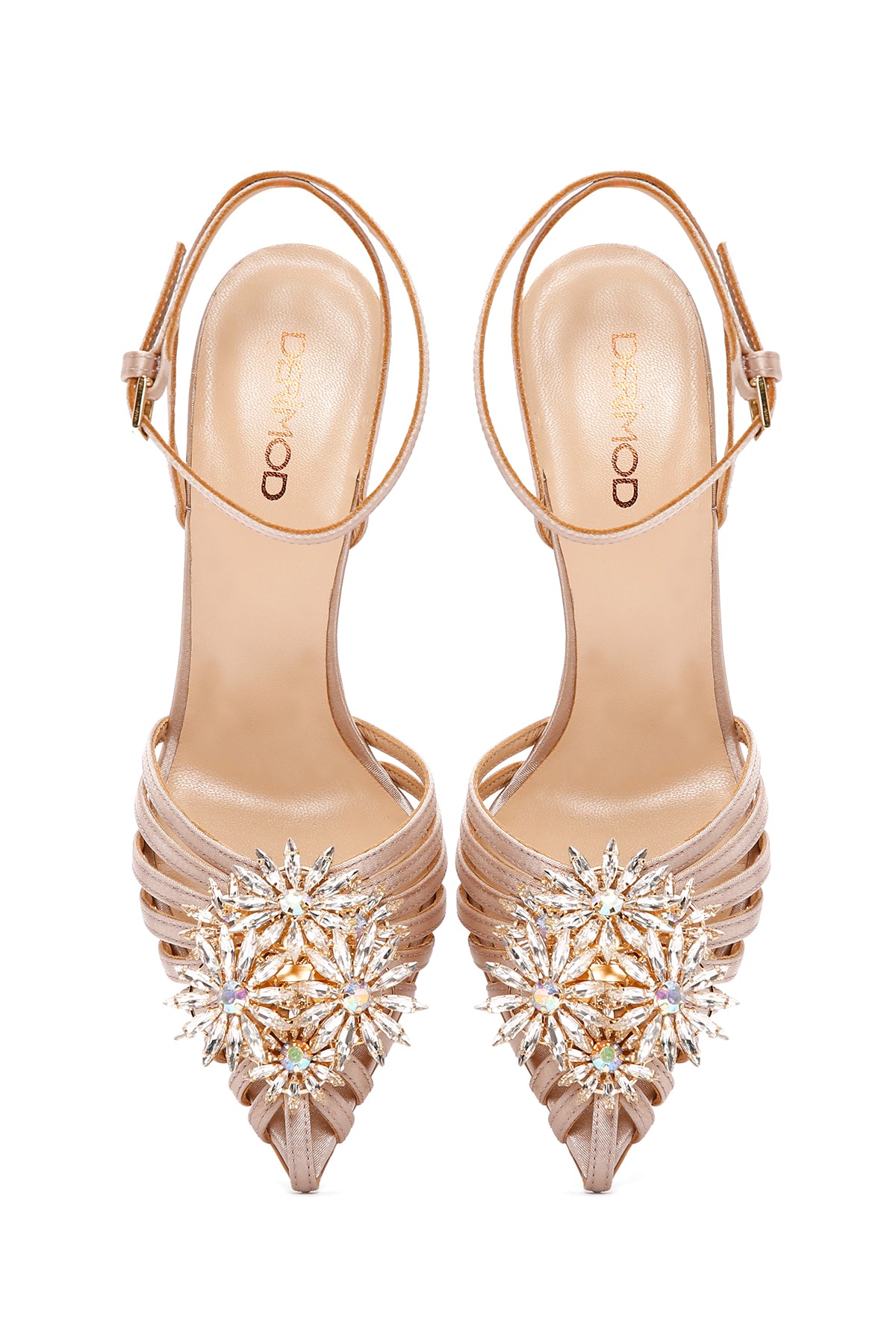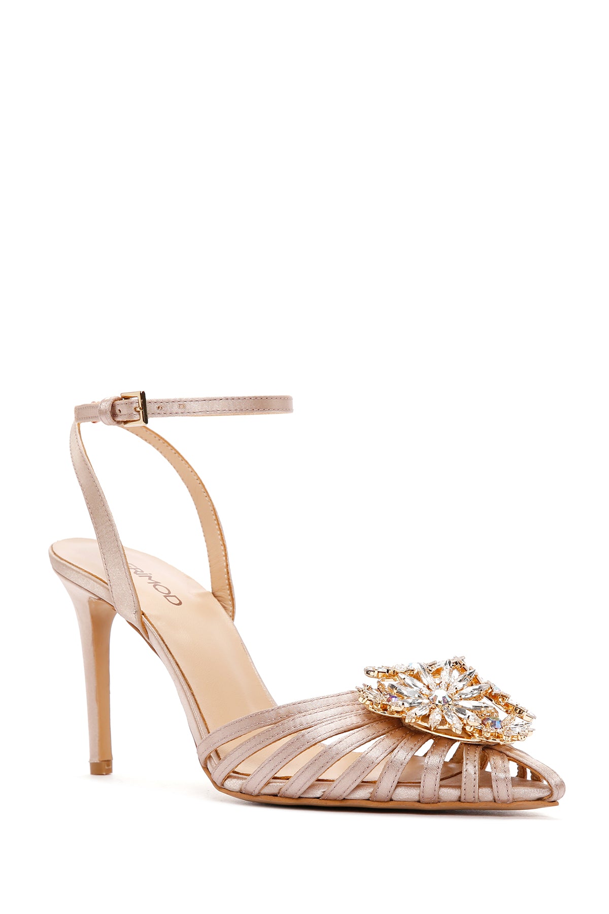 Women's Beige Ankle Strap Stone Thin Heeled Leather Stiletto