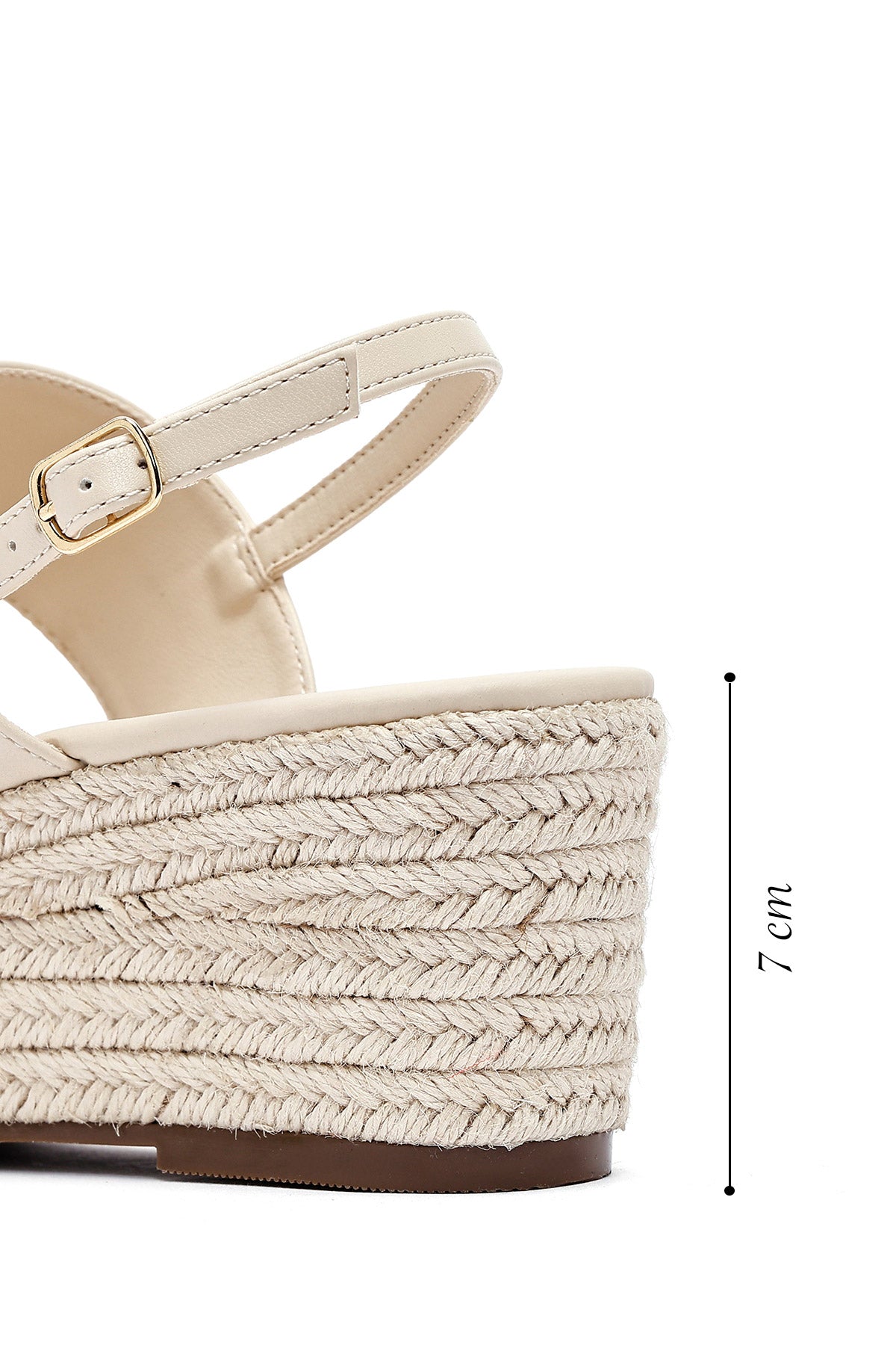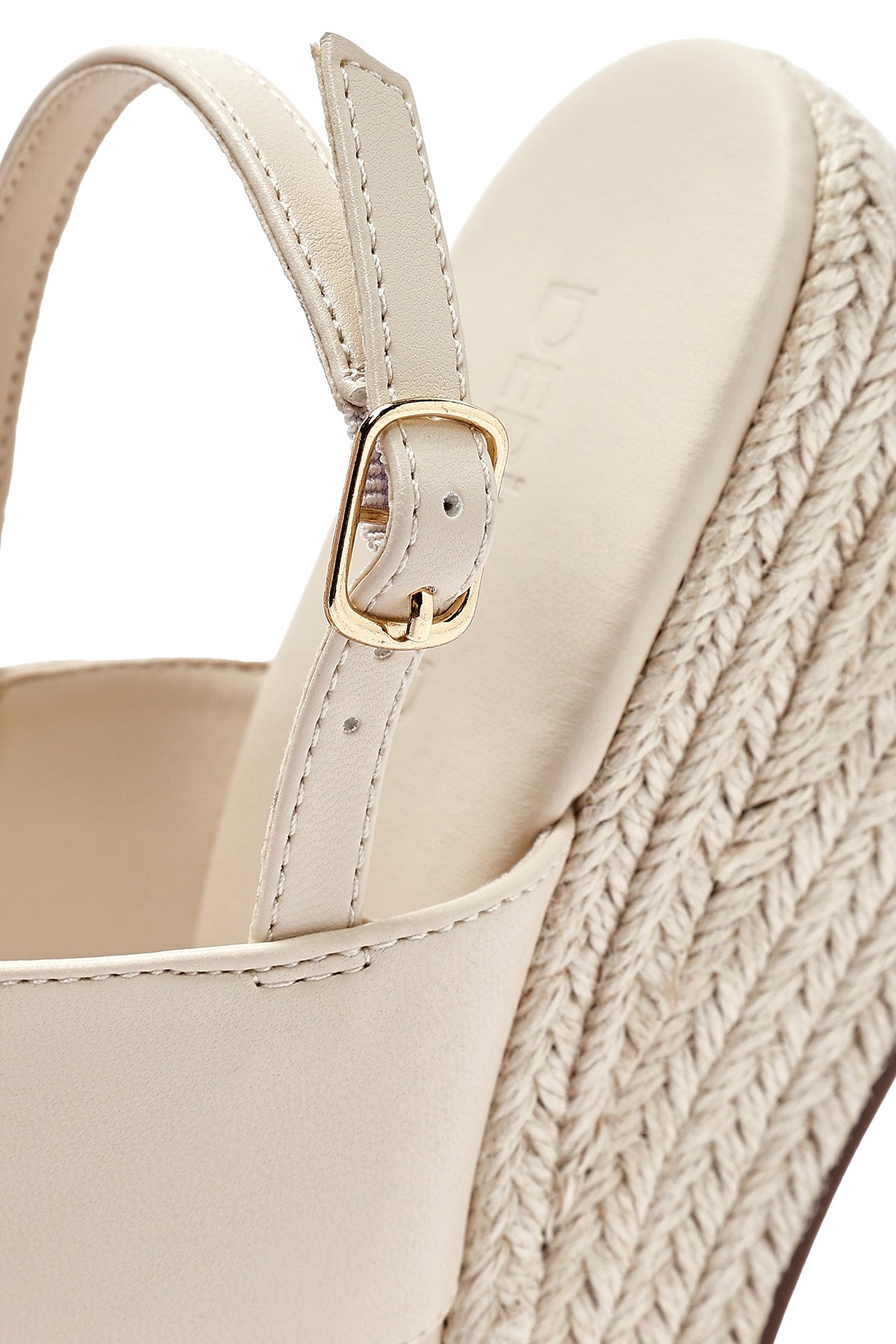 Derimod's elegance and style together Woman Show off your style with Beige Wedge Heel Espadrille Sandals with Ankle Buckle. Product code: 25SFE482118 05
