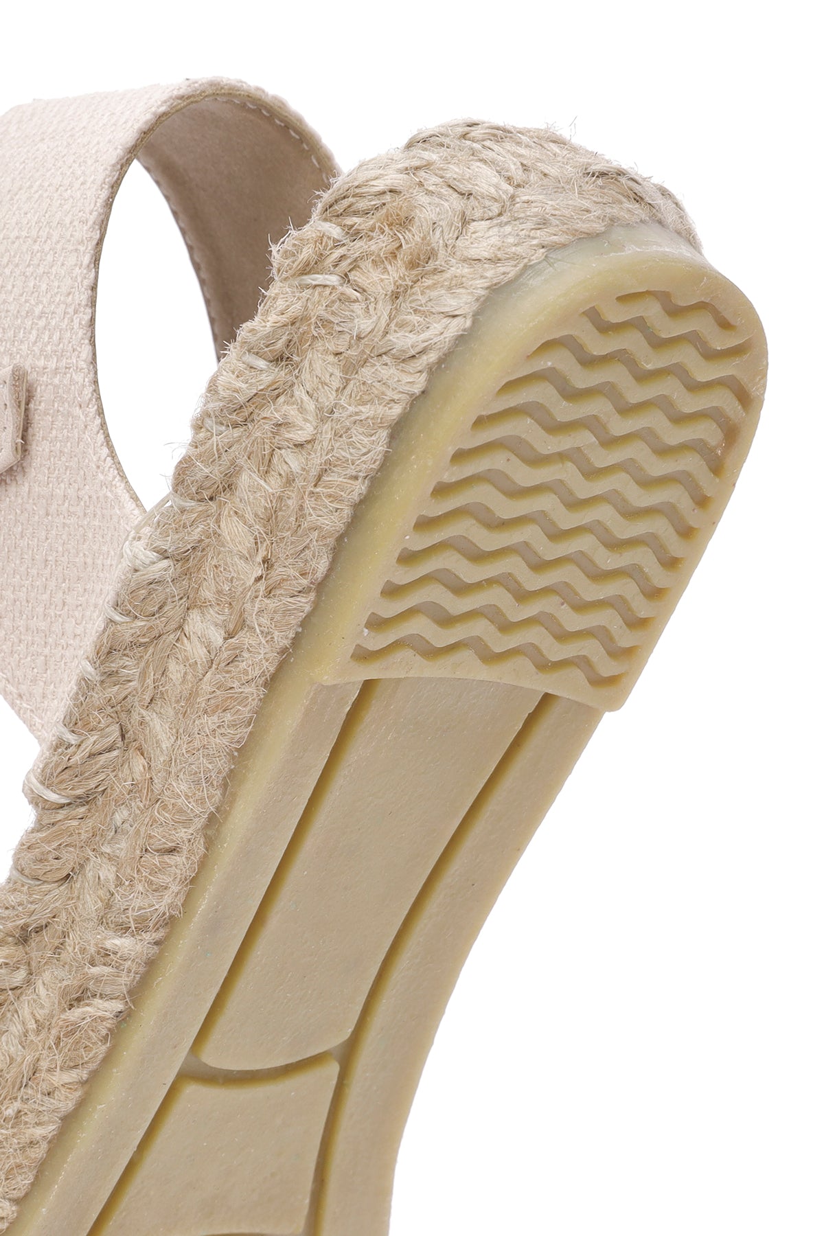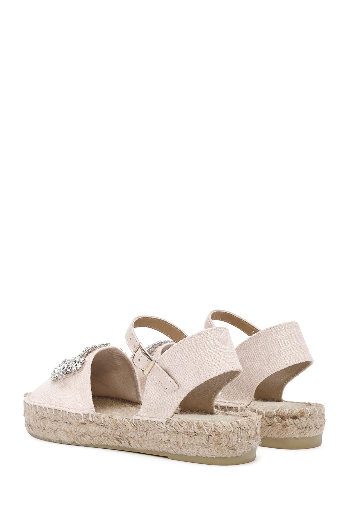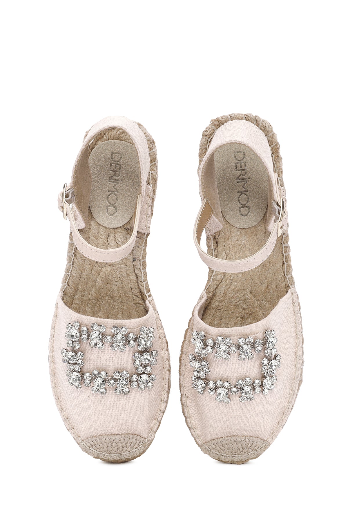 Women's Beige Ankle Buckle Jean Fabric Stoned Espadrille Sandals