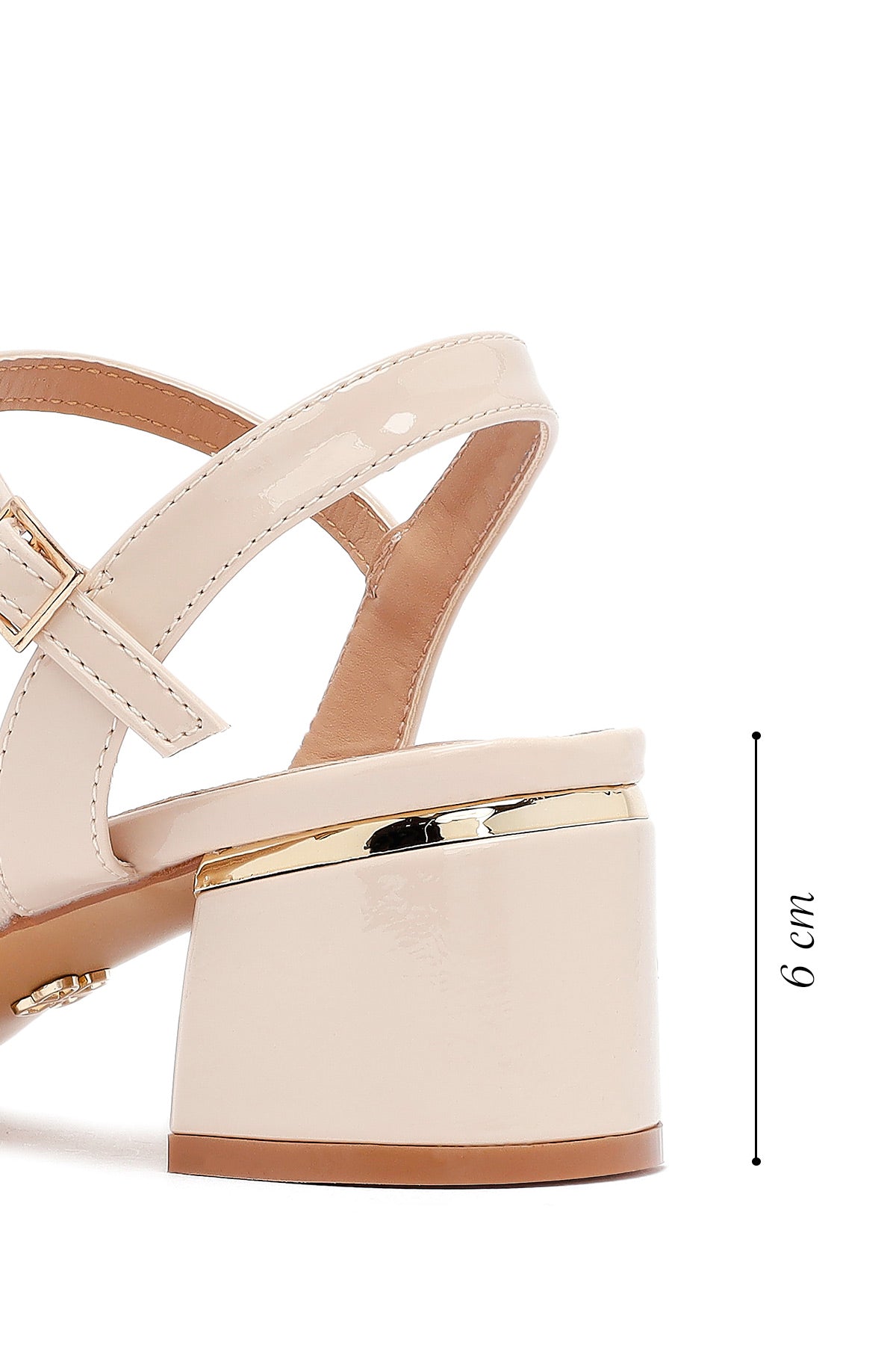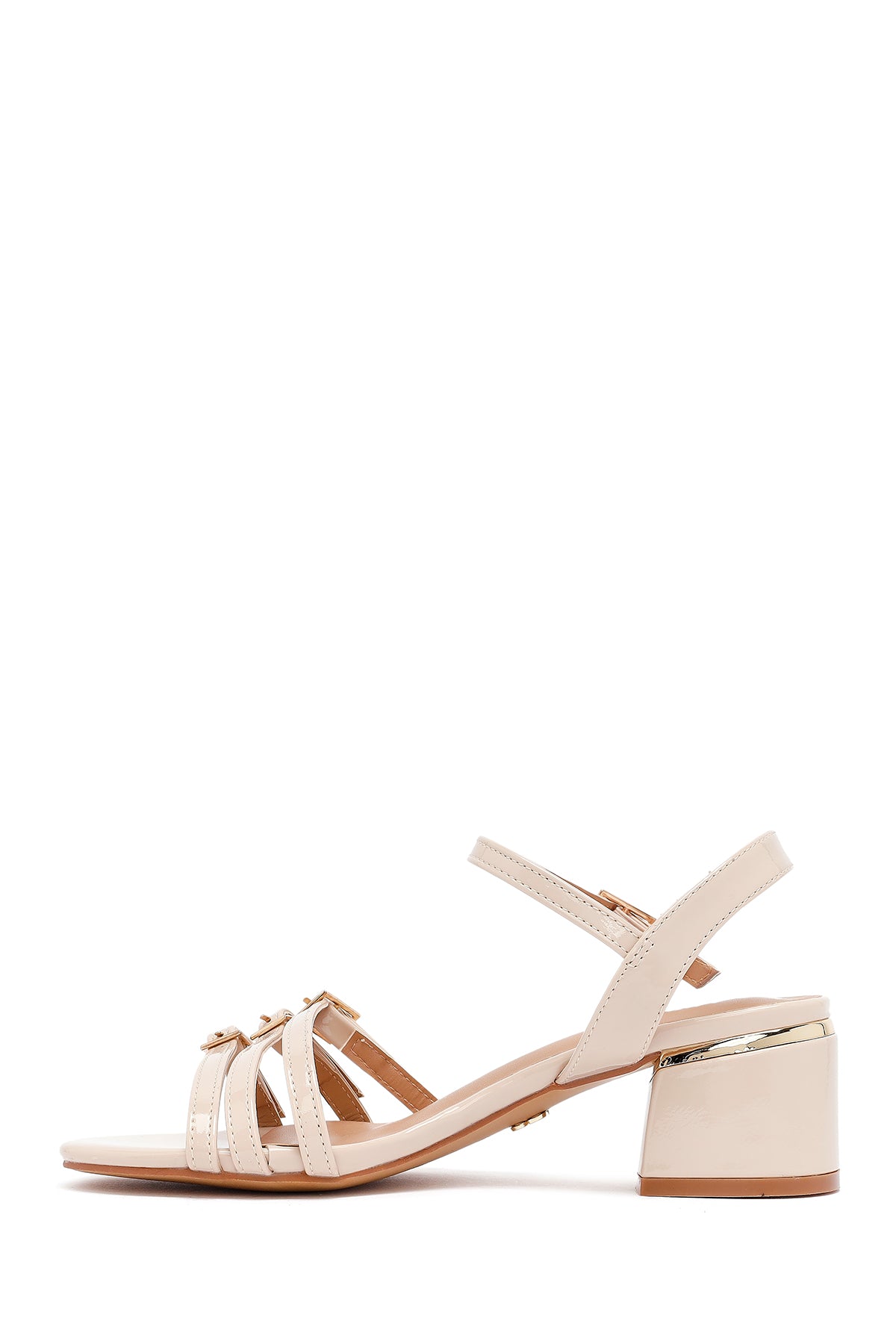 Derimod's elegance and style together Woman Show off your style with these Beige Ankle Buckle Thick Patent Leather Heeled Sandals. Product code: 25SFE466416 05