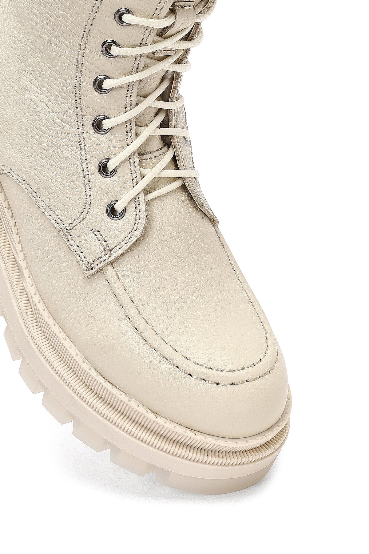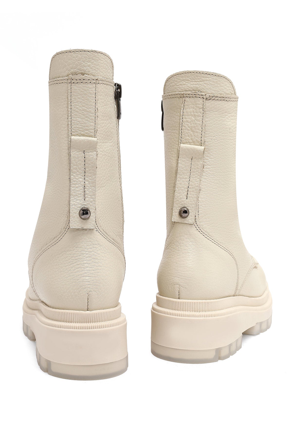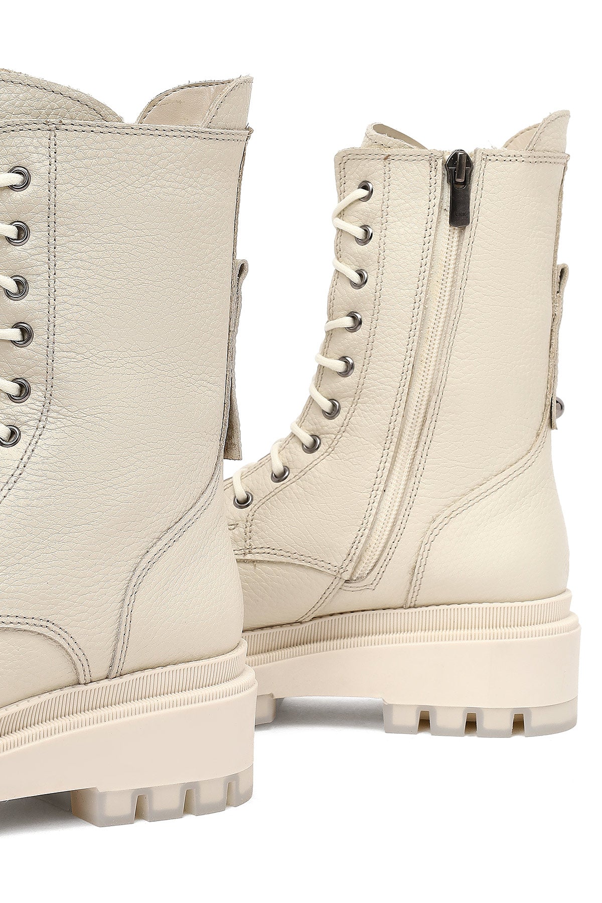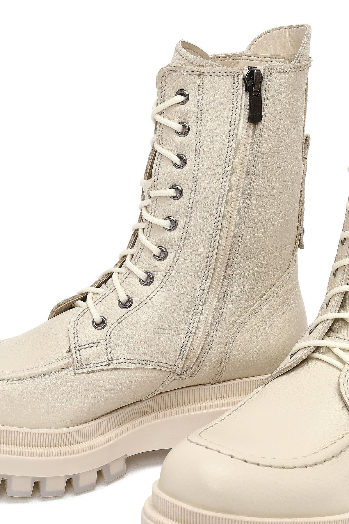 The modern combat boot model of the winter collection stands out with its beige screwed leather upper surface and thick-soled design. The use of leather lining allows the foot to breathe, while the 4 cm high sole is ideal for daily use. Its zippered structure provides easy wearing and removal, while the lace-up design offers adjustable use. Especially in autumn and winter months, it perfectly matches both casual and stylish clothing combinations. Usage areas: Ideal for daily activities, city tours, and cold weather conditions. Product code: 25WFD183518