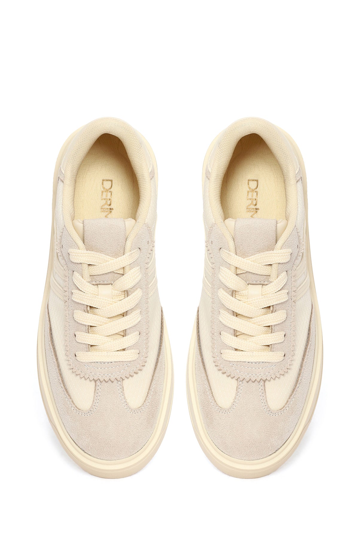 Woman Beige Thick-Soled Lace-Up Sneakers
