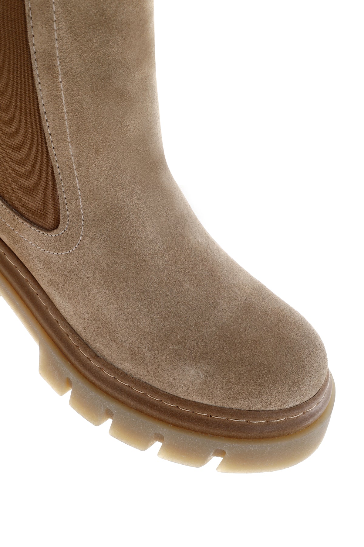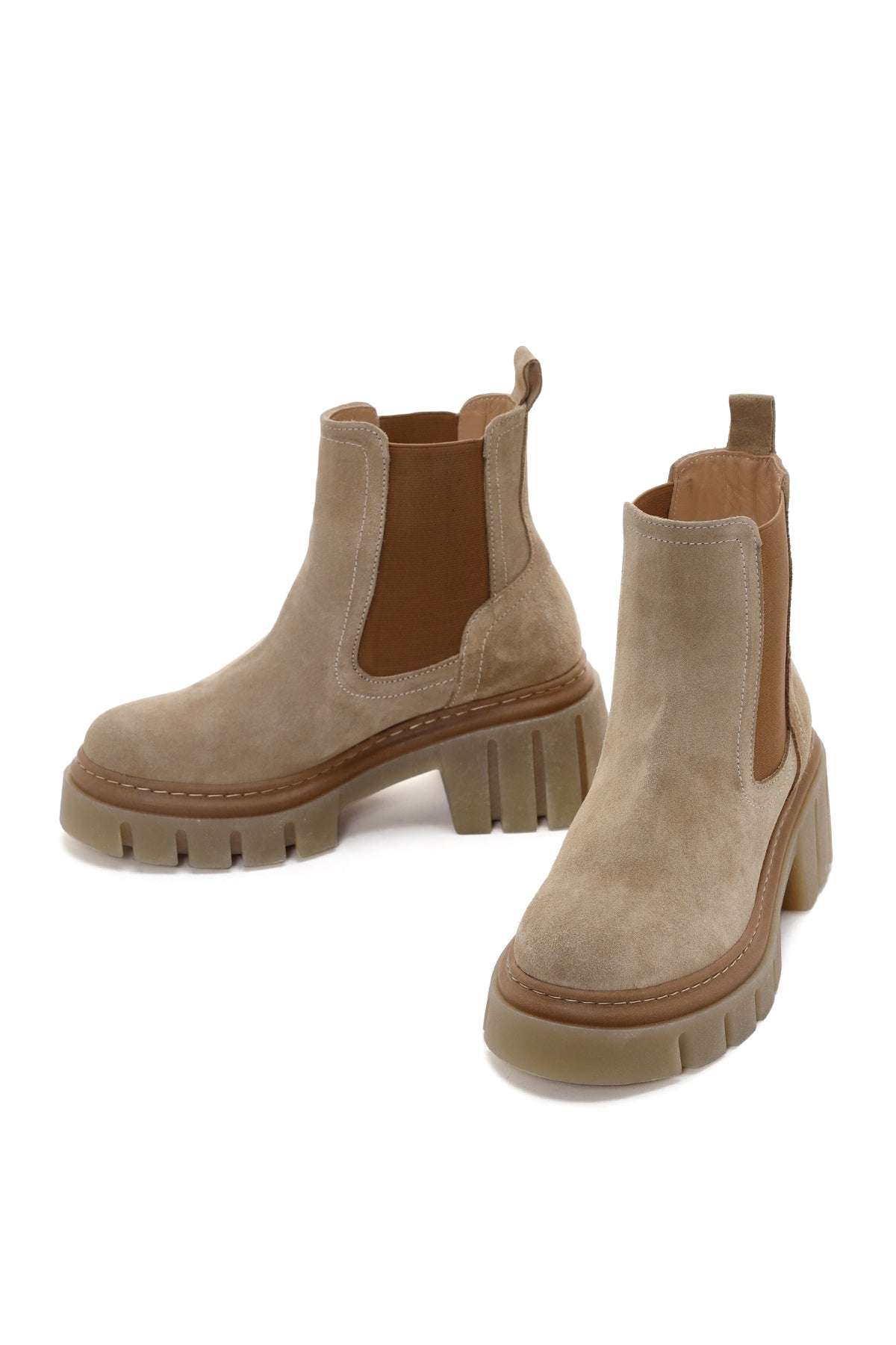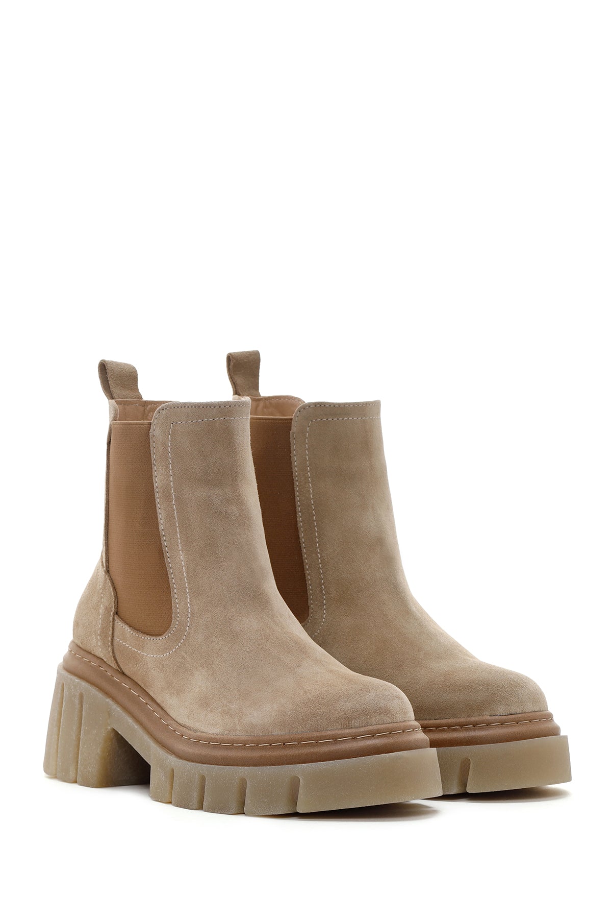 Show off your style with Derimod's Women's Beige Thick-Sole Casual Chelsea Suede Leather Boots, which combine style and elegance. Product code: 23WFD151510 05