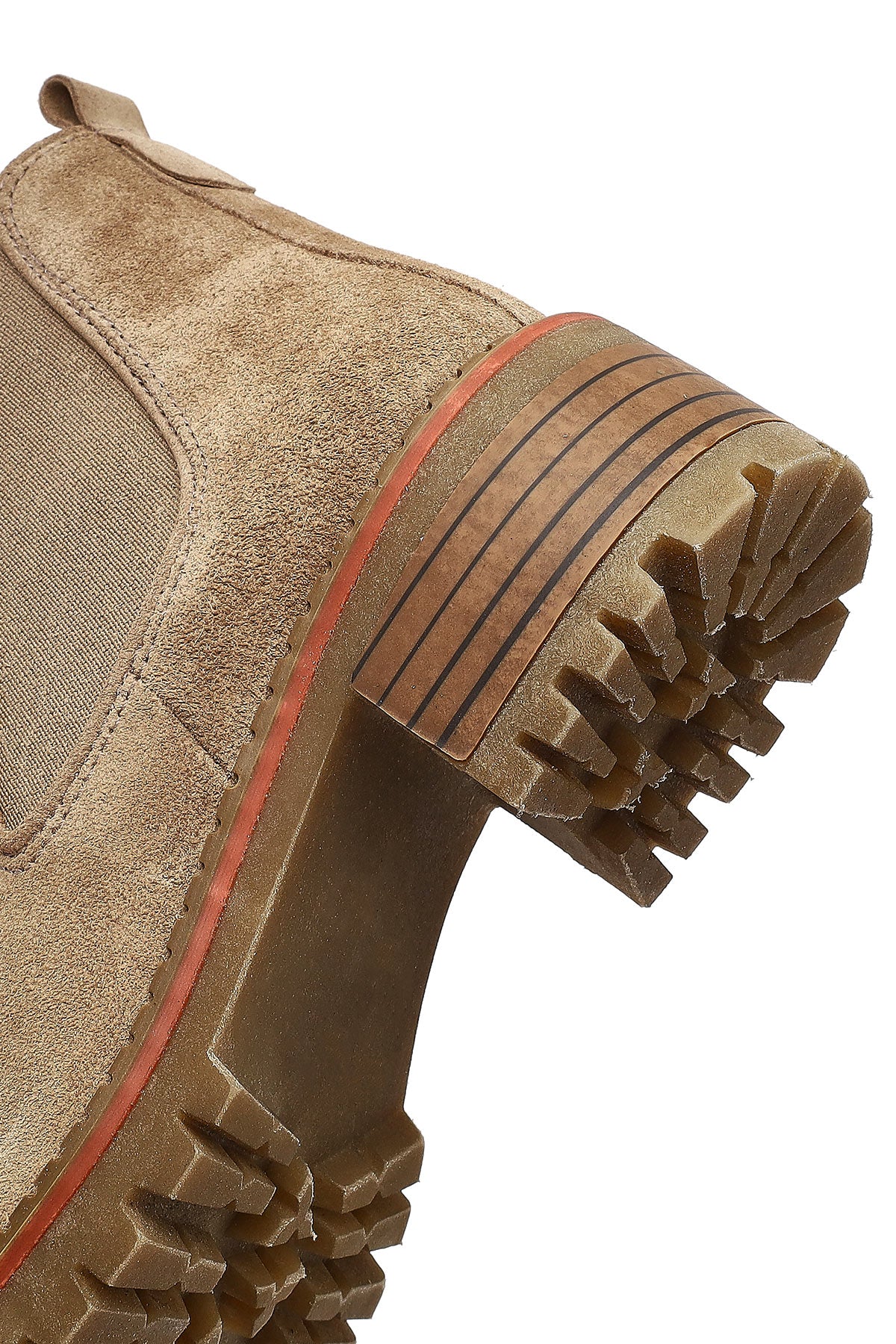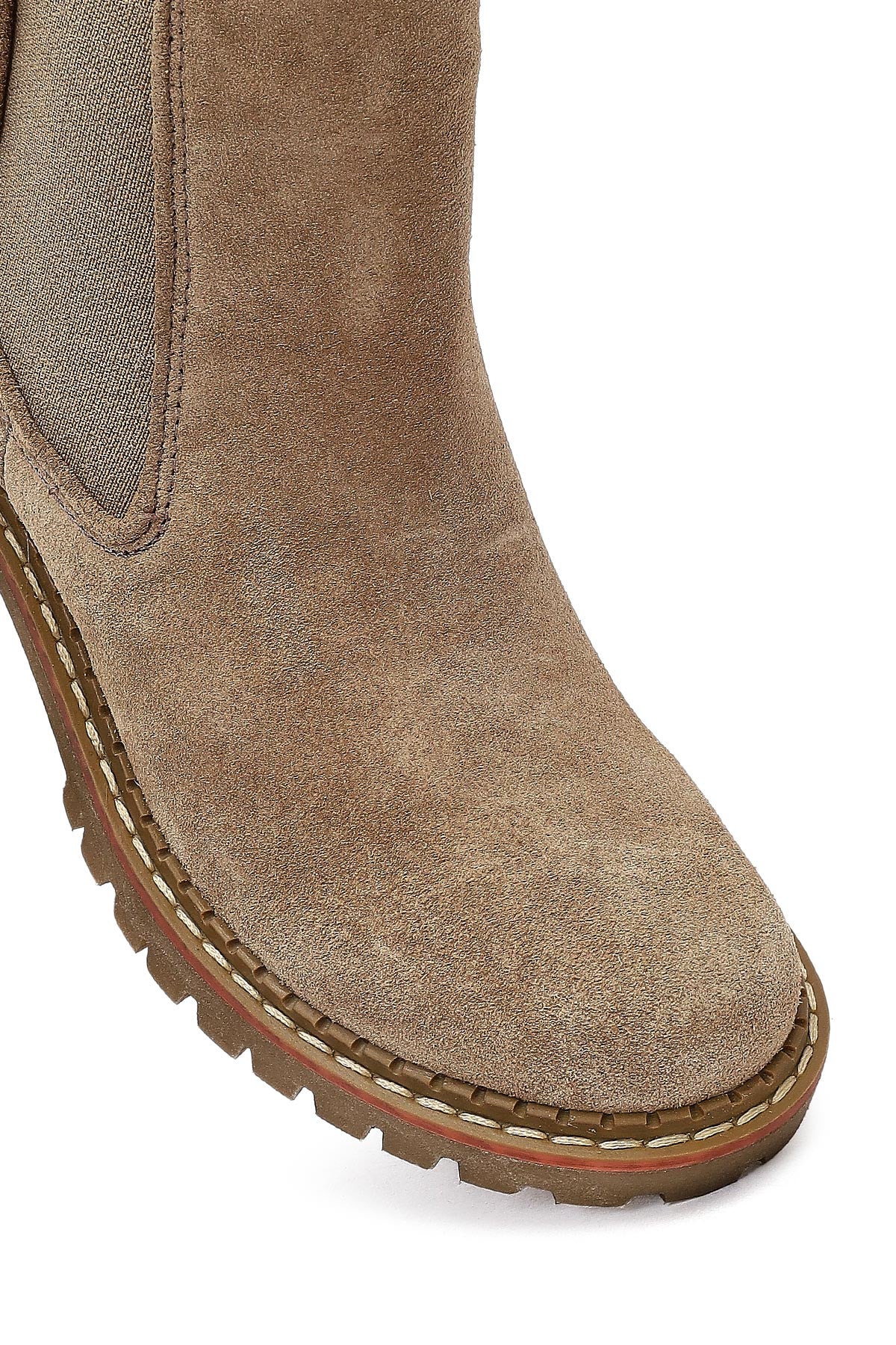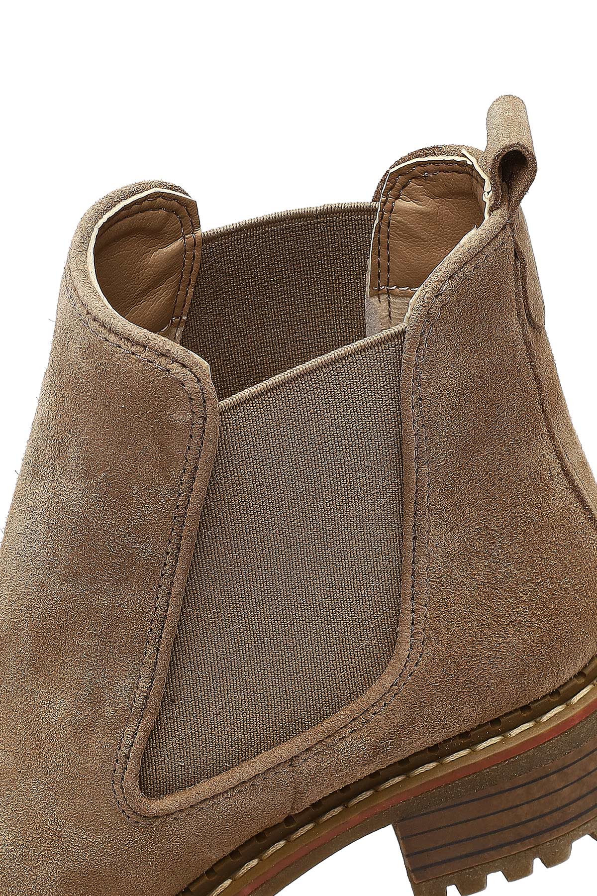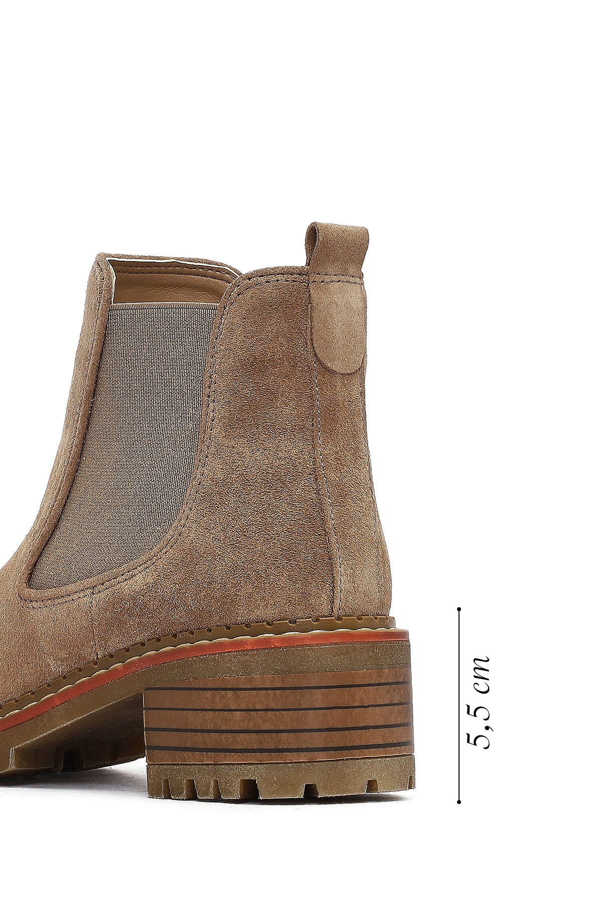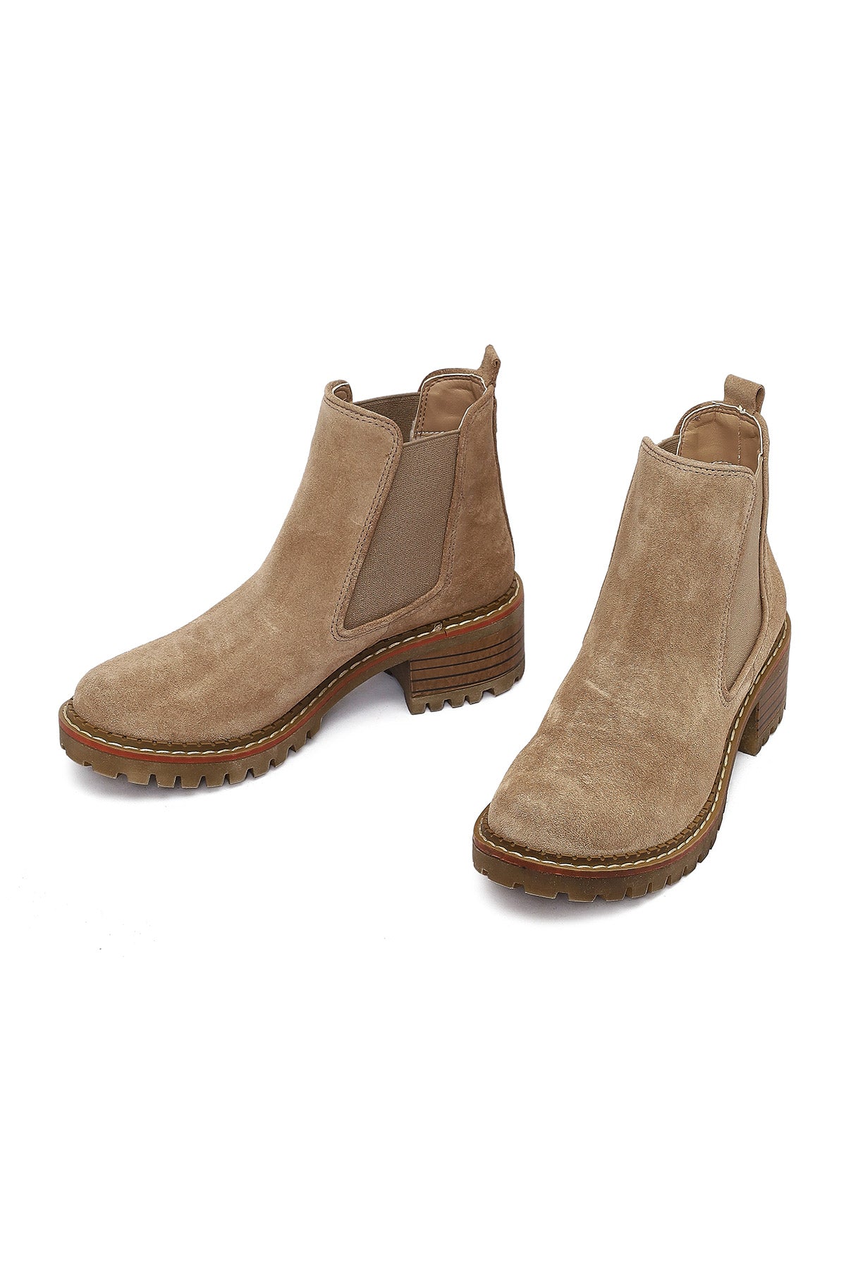 This beige suede leather Chelsea boot from Derimod's winter collection adds both elegance and functionality to women's cold weather wardrobes. Made from suede leather material, the boot offers superior quality and elegance with its velvety texture. With its beige color and timeless design, the model easily fits into the wardrobe of women of all age groups. The 5.5 cm heel height provides a stylish stance while offering sufficient comfort for daily use. The thick sole structure reflects modern trend understanding and also insulates from cold ground, keeping feet warm. The fabric inner lining adds breathability and provides comfort during long-term use. The elastic side panels, a characteristic feature of the classic Chelsea boot design, ensure a perfect fit to the foot and allow easy wearing and removal. Practical use is possible thanks to the pull tabs at the back. The model, which attracts attention with its minimalist lines, offers a wide range of use from skinny jeans to skirt combinations, casual pants to dress styles. It is an ideal choice for those who want to look stylish in the office environment, university students, and women who want to look both comfortable and trendy in their daily activities. While providing warmth in winter months, the boot can also be easily preferred during seasonal transitions, showing perfect harmony especially in autumn and winter periods. Thanks to its high-quality suede leather structure, it can be used for many years and gains a unique character over time. Product code: 25WFD180010