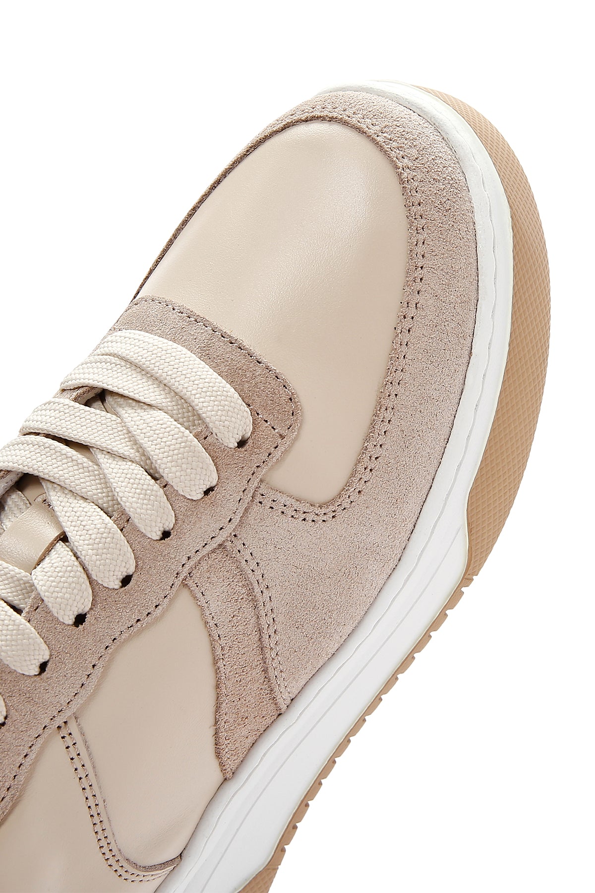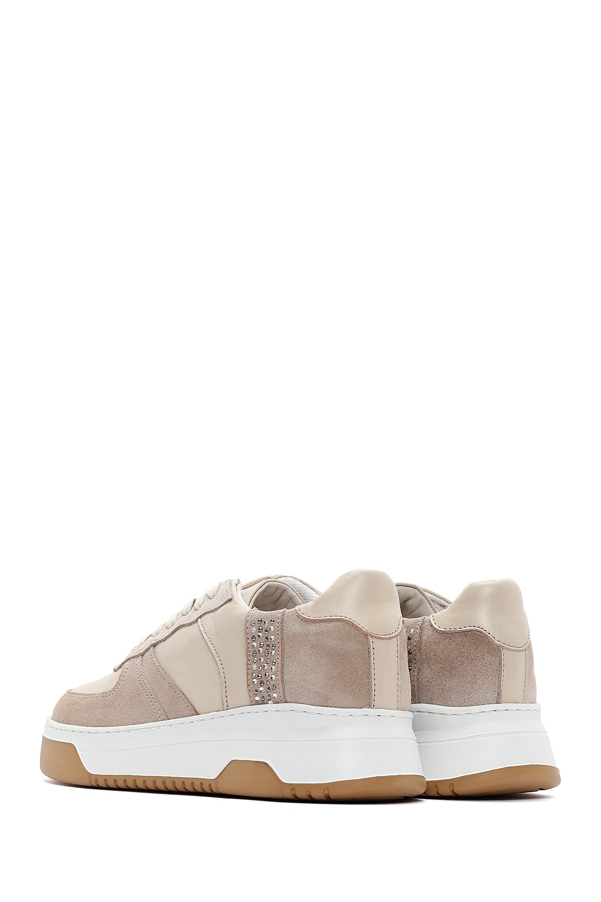 Show off your style with Derimod's Women's Beige Suede Leather Detailed Sneaker, which offers style and elegance together. Product code: 23WFD420414 05