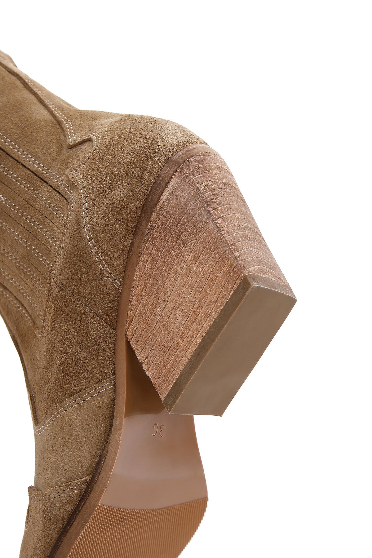 Show off your style with Derimod's Women's Beige Suede Leather Heeled Cowboy Western Boots, which offer style and elegance together. Product code: 23WFD187210 E9
