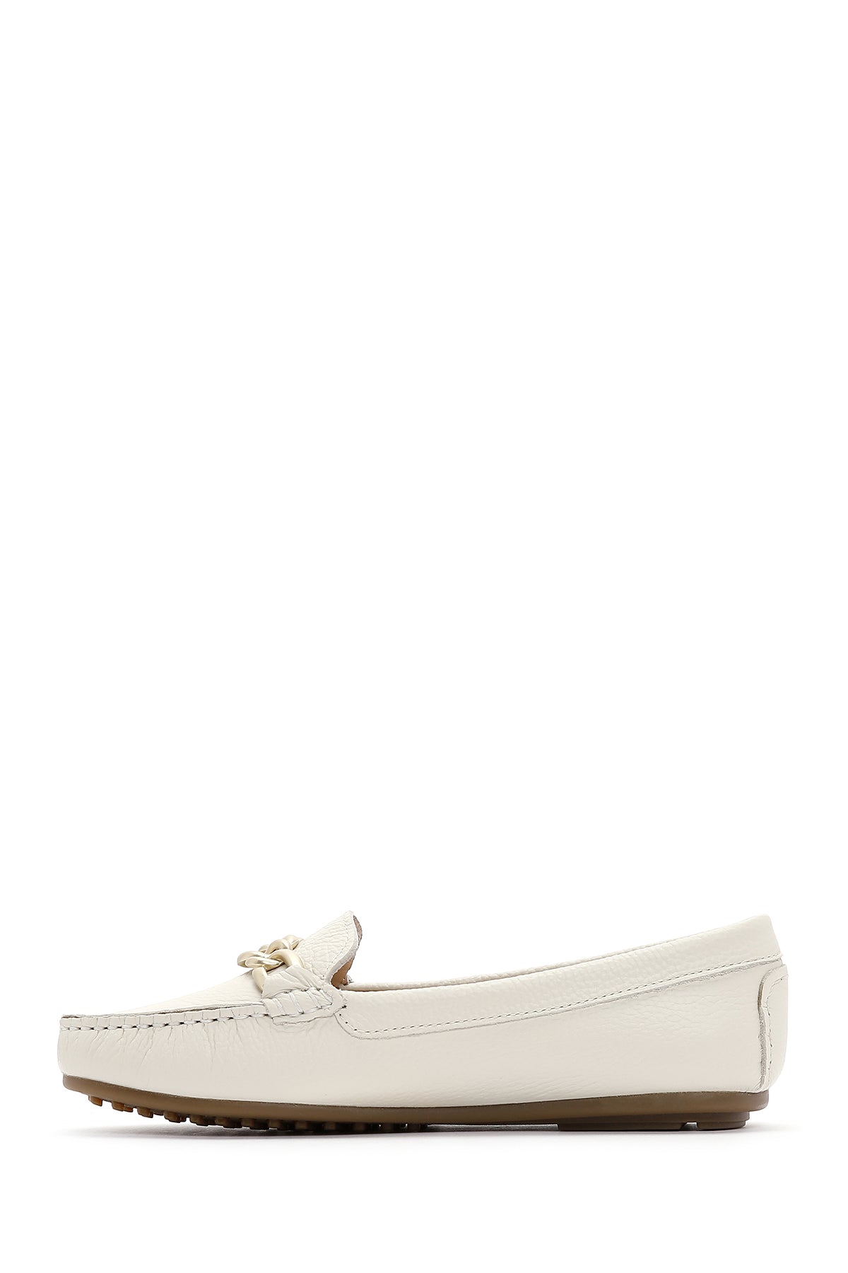 Women's Beige Buckle Detailed Leather Casual Loafer