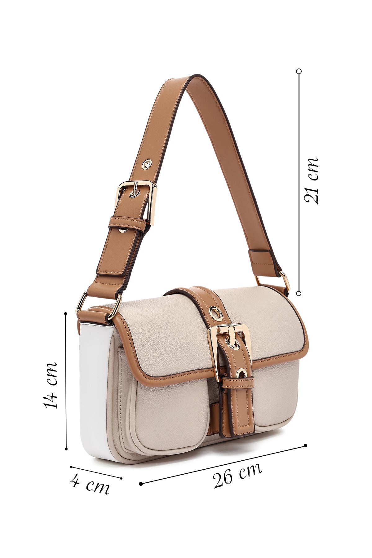 Women's Beige Buckle Detailed Shoulder Bag