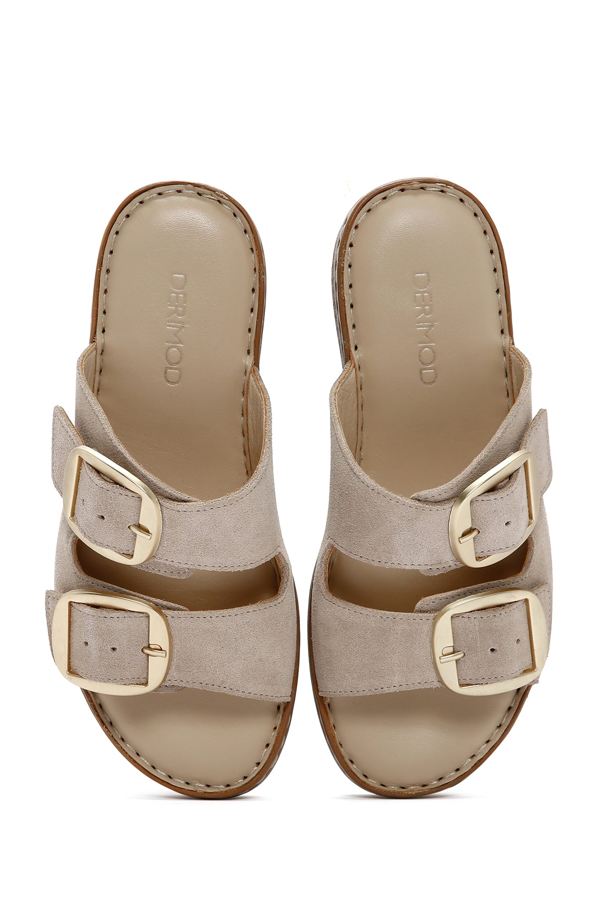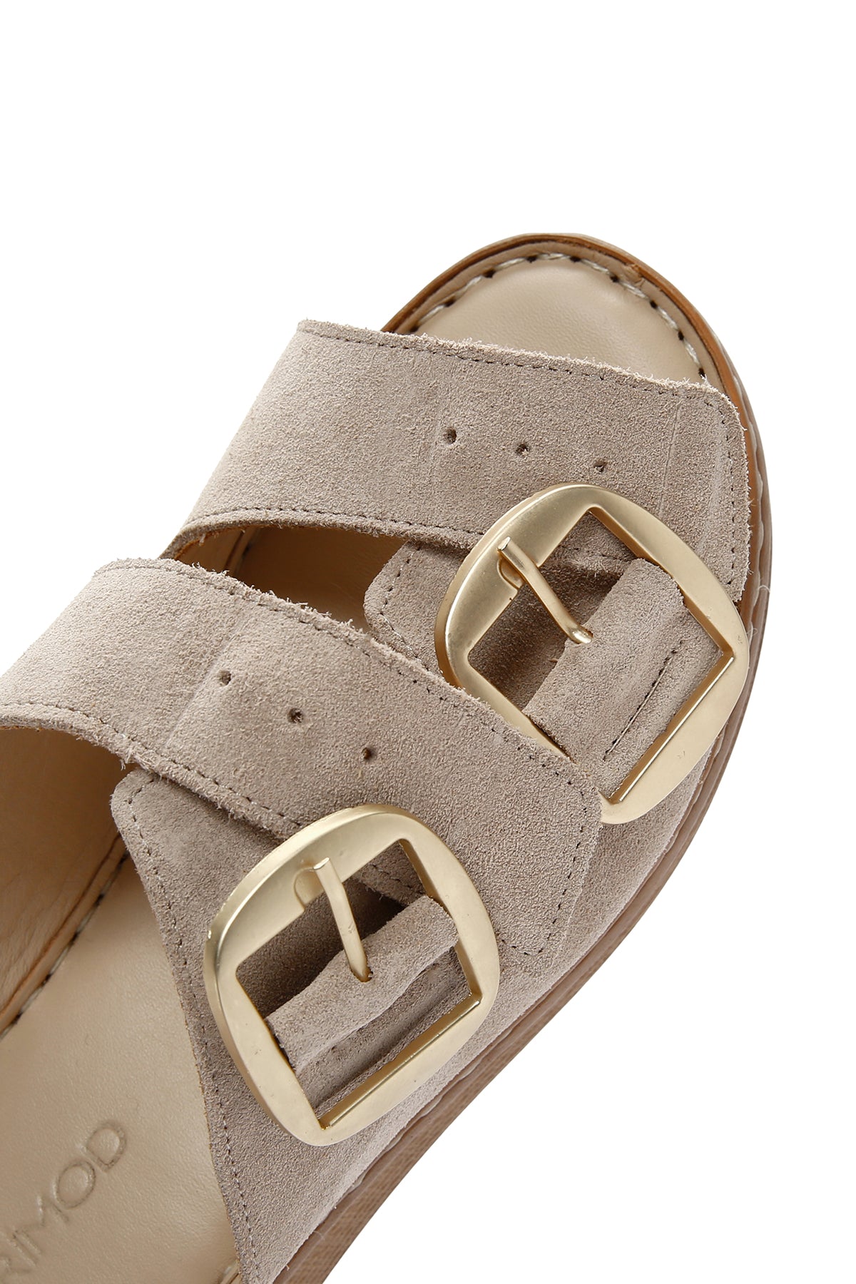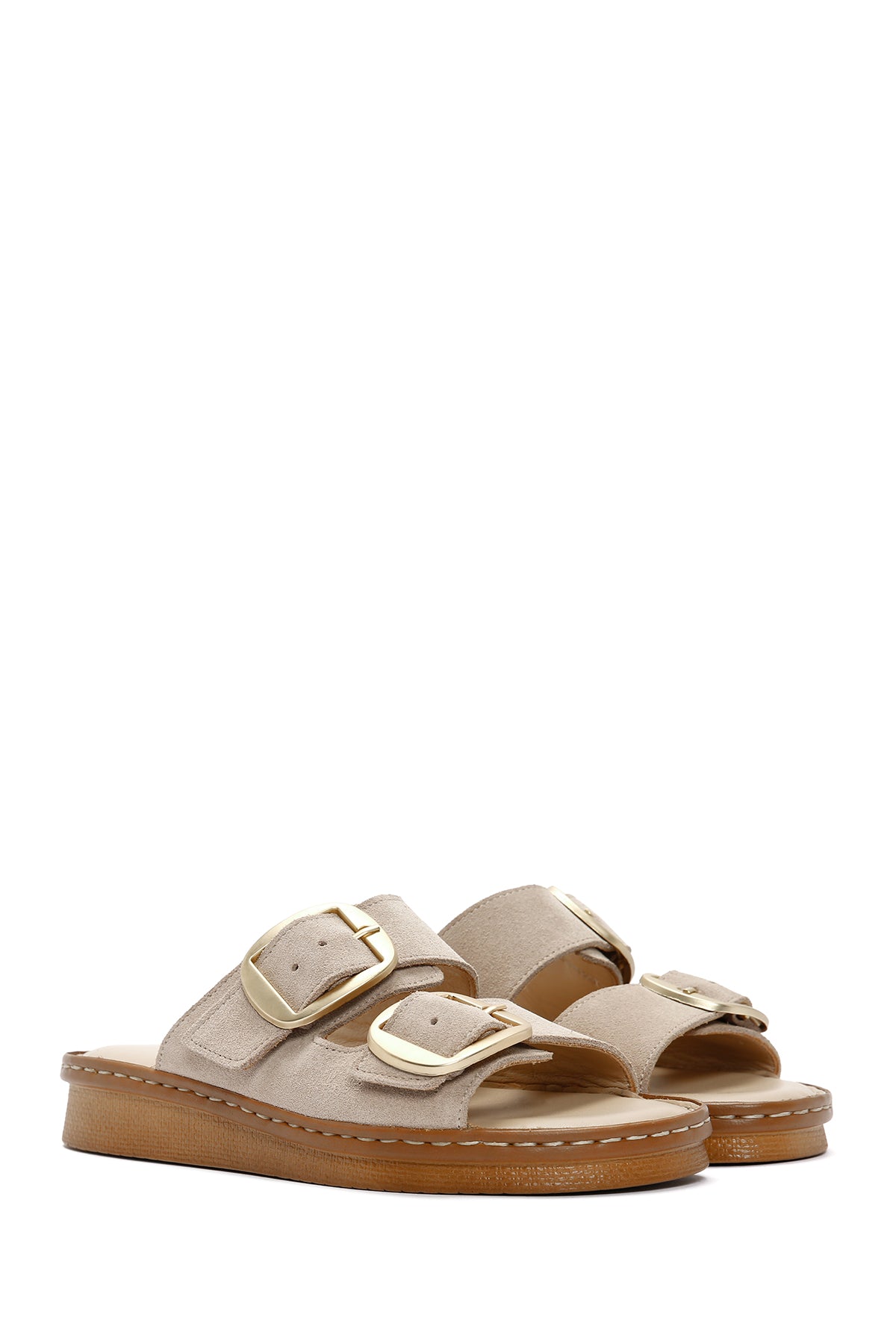Kadın Bej Tokalı Süet Deri Konfor Terlik