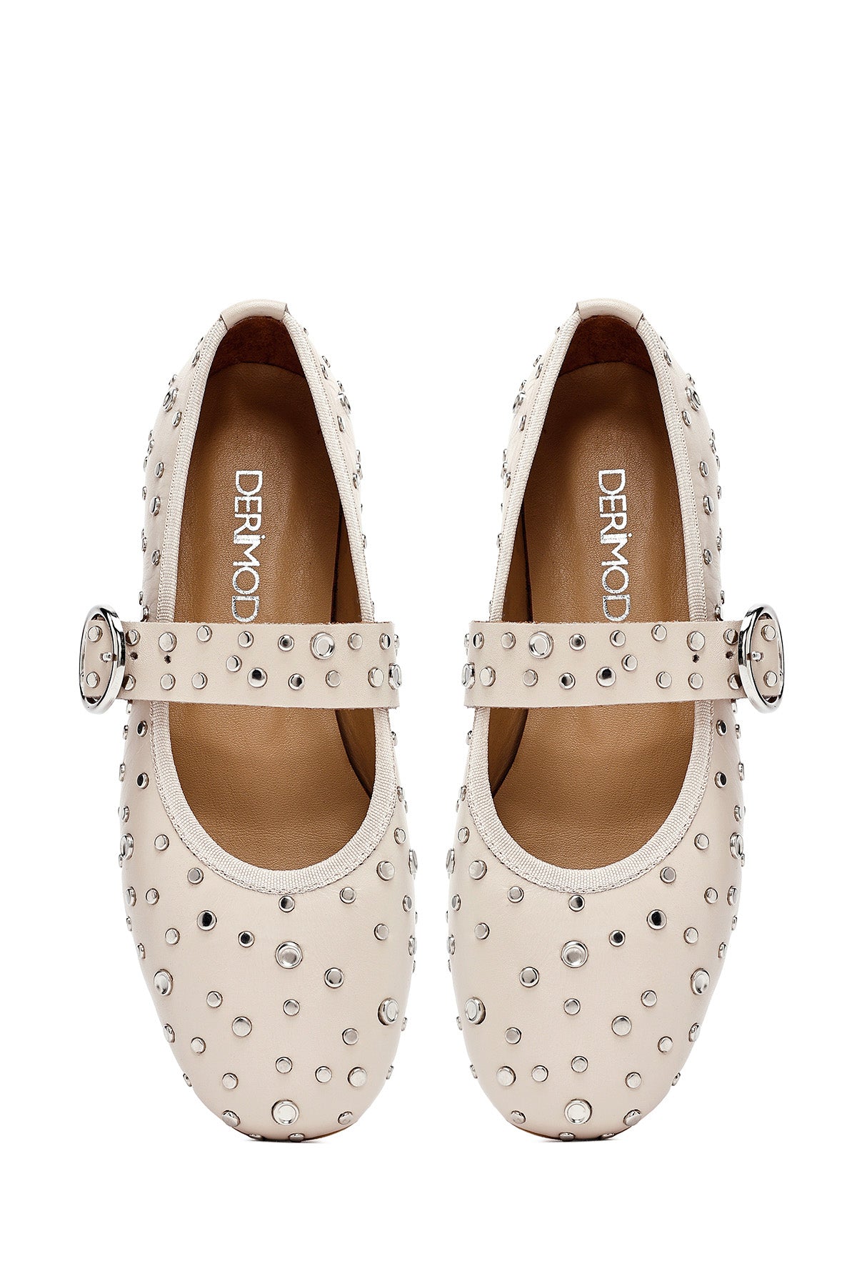 Derimod's elegance and style together Woman Beige Buckle with Stones Leather Show off your style with ballerinas. Product code: 25SFD270718 05