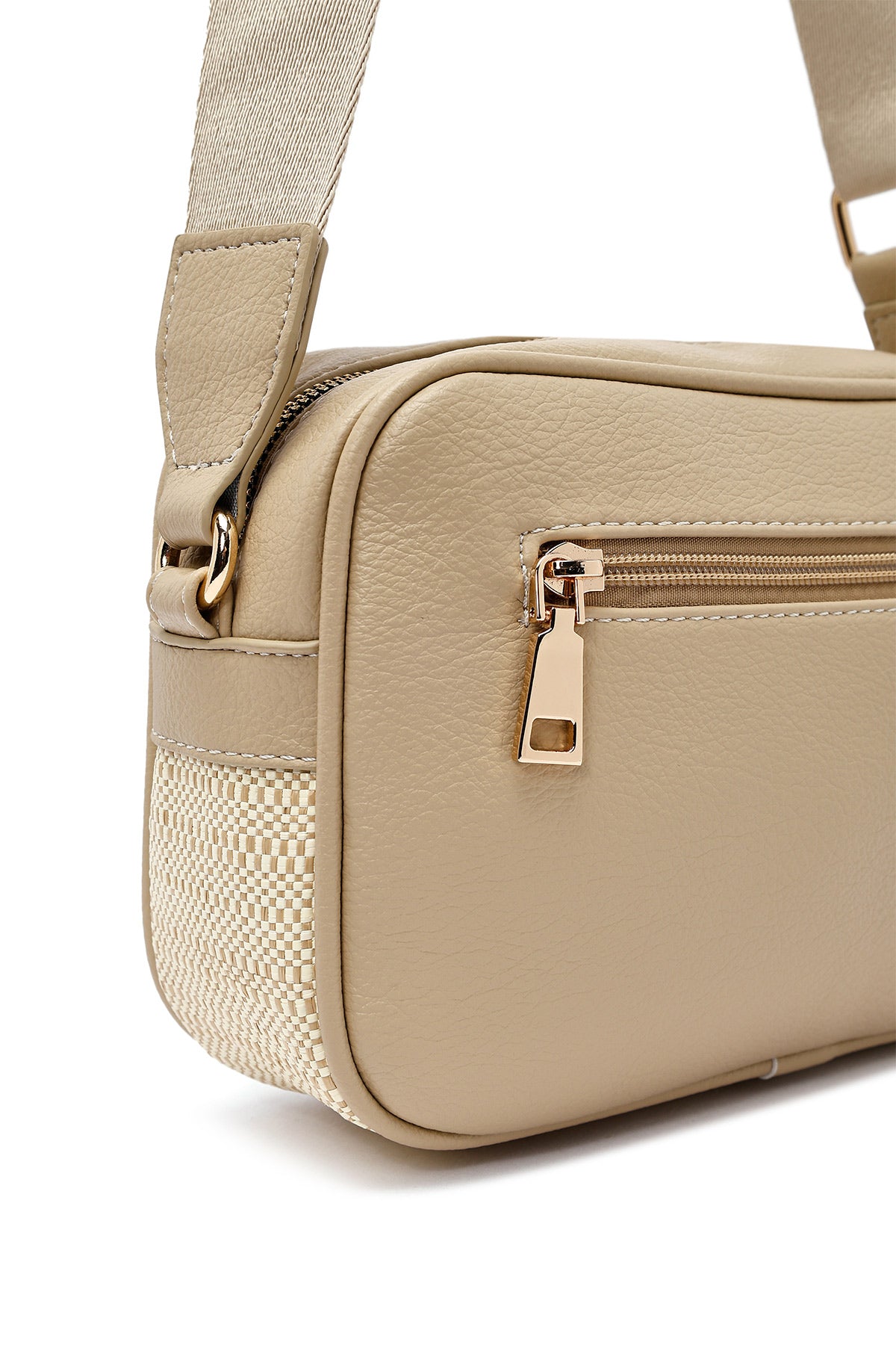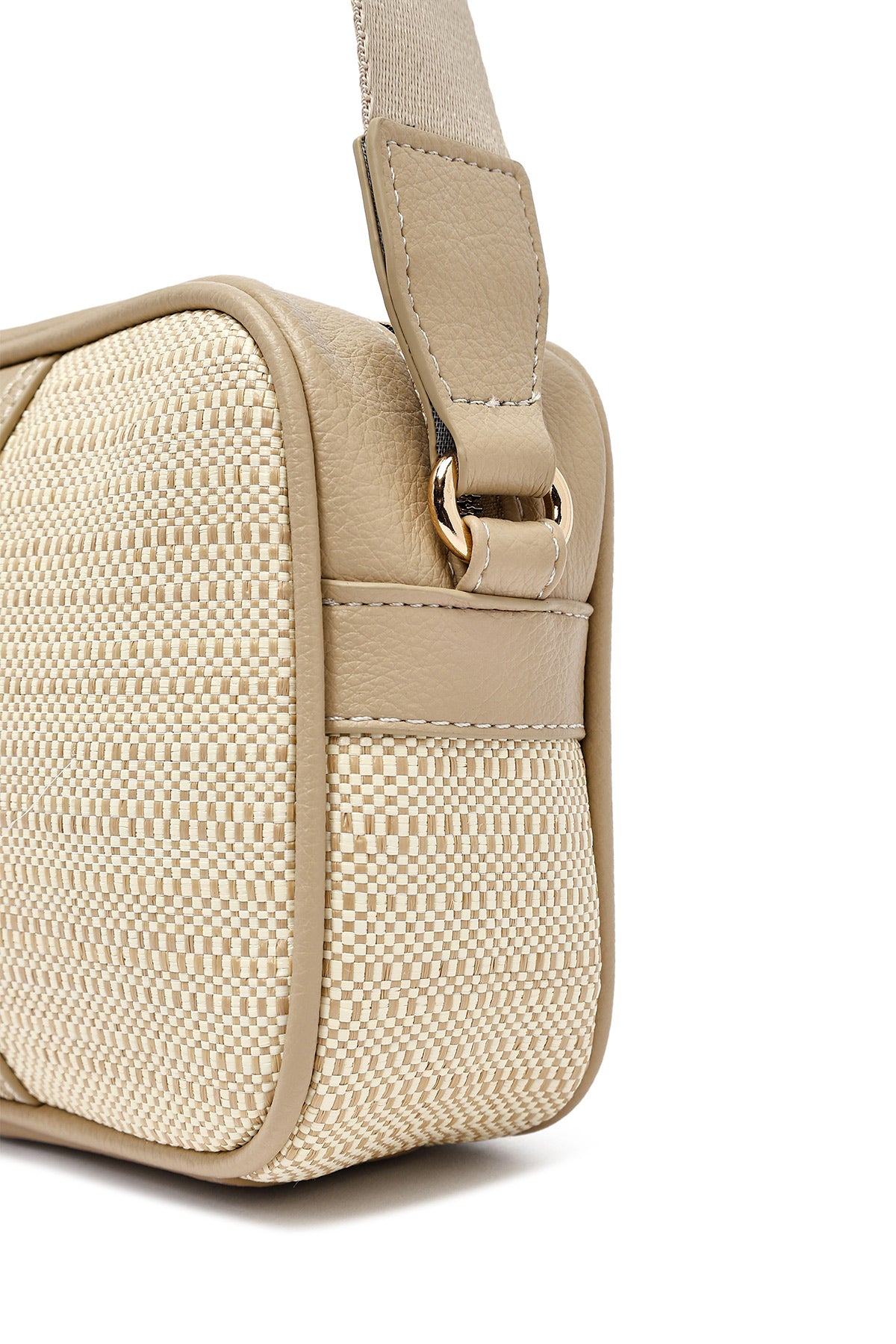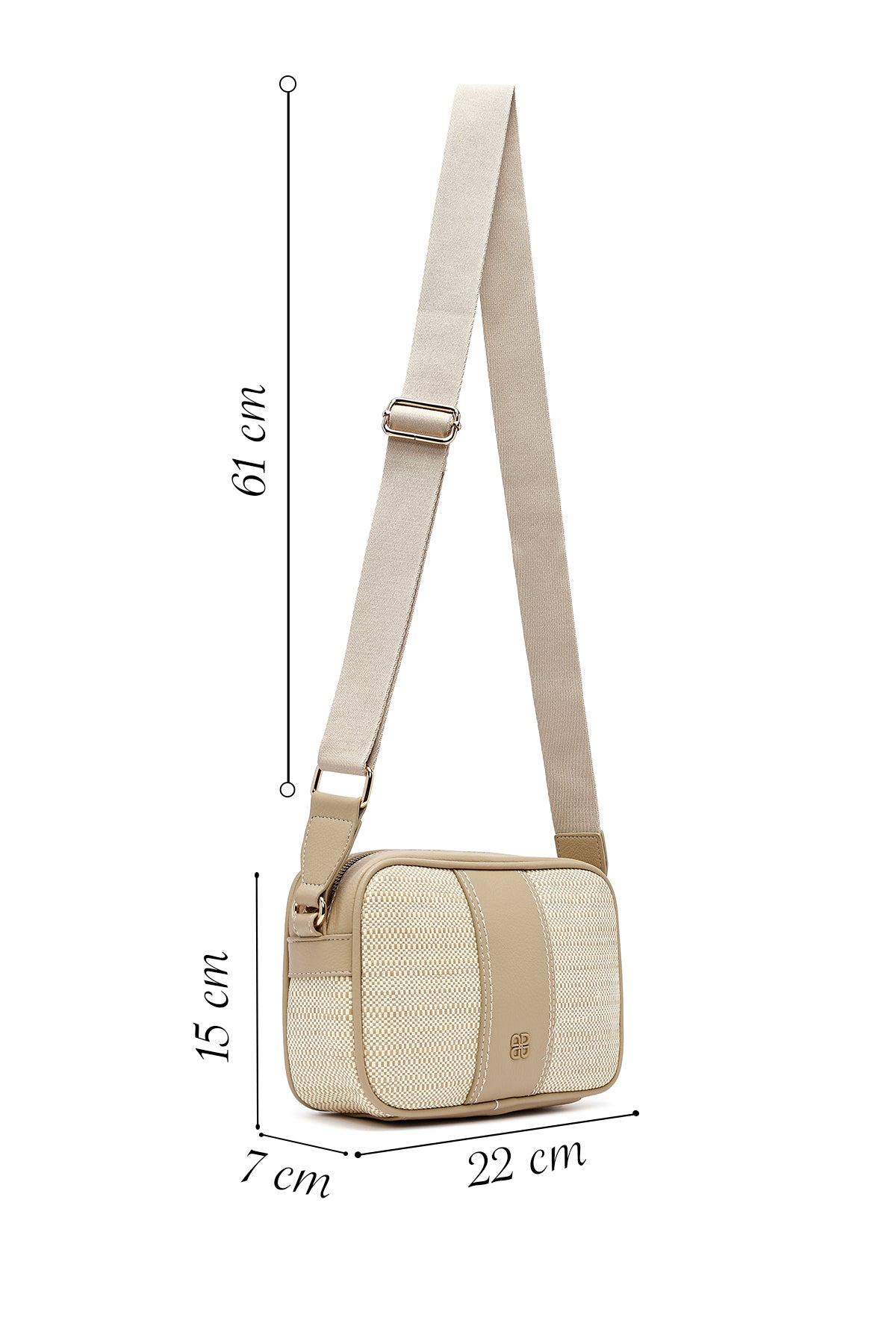Woman Beige Long Strap Crossbody Bag