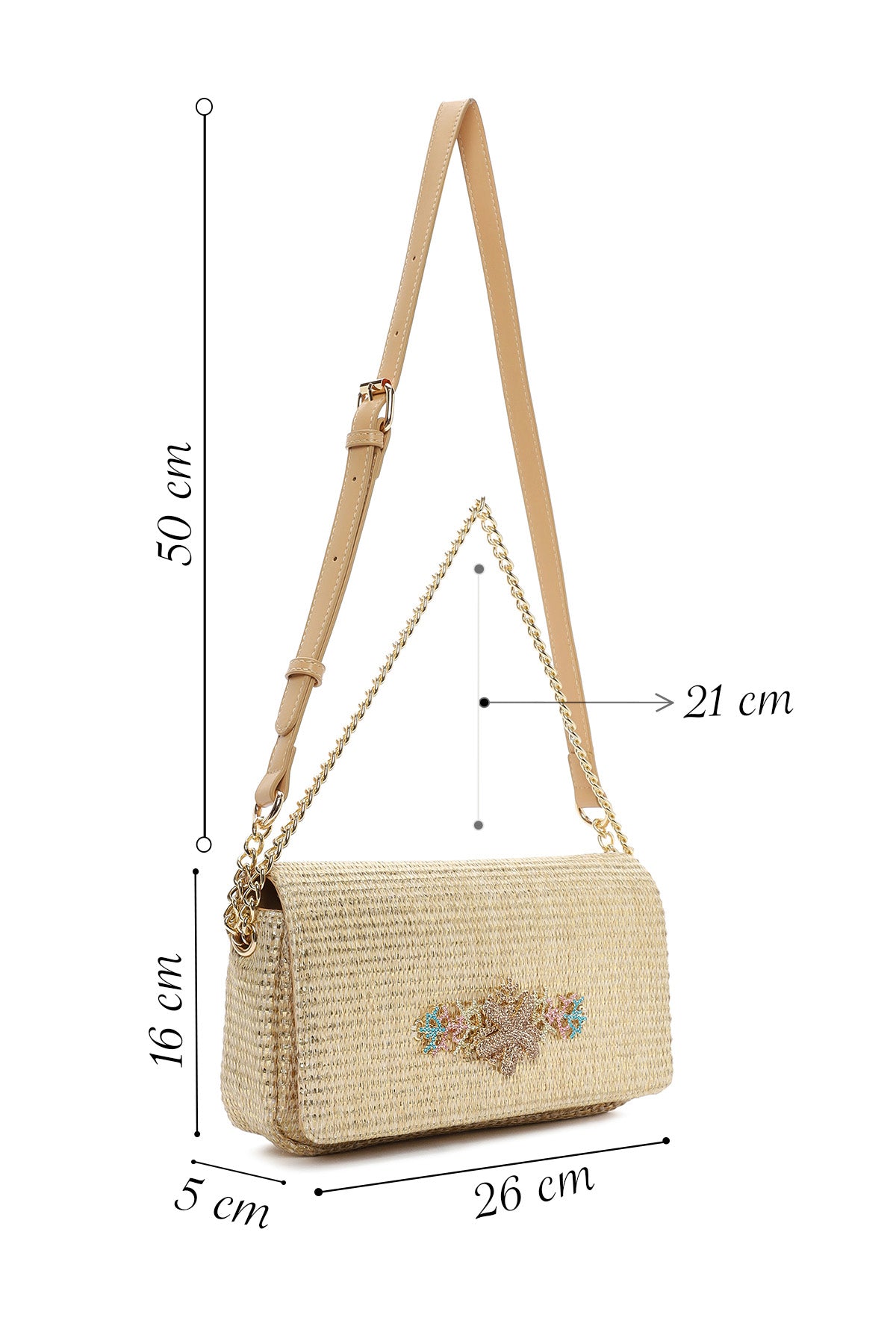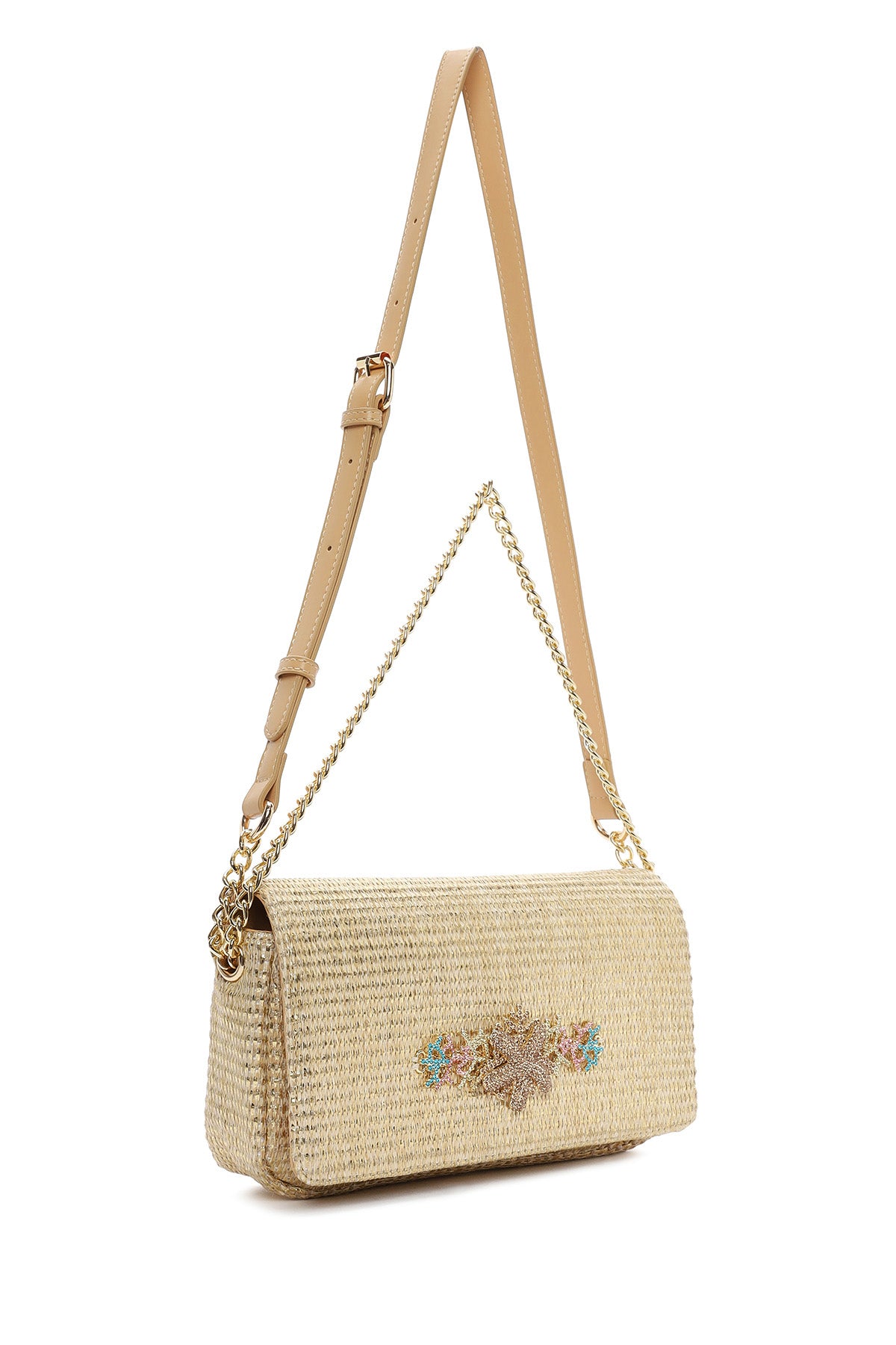Woman Beige Long Strap Straw Crossbody Bag