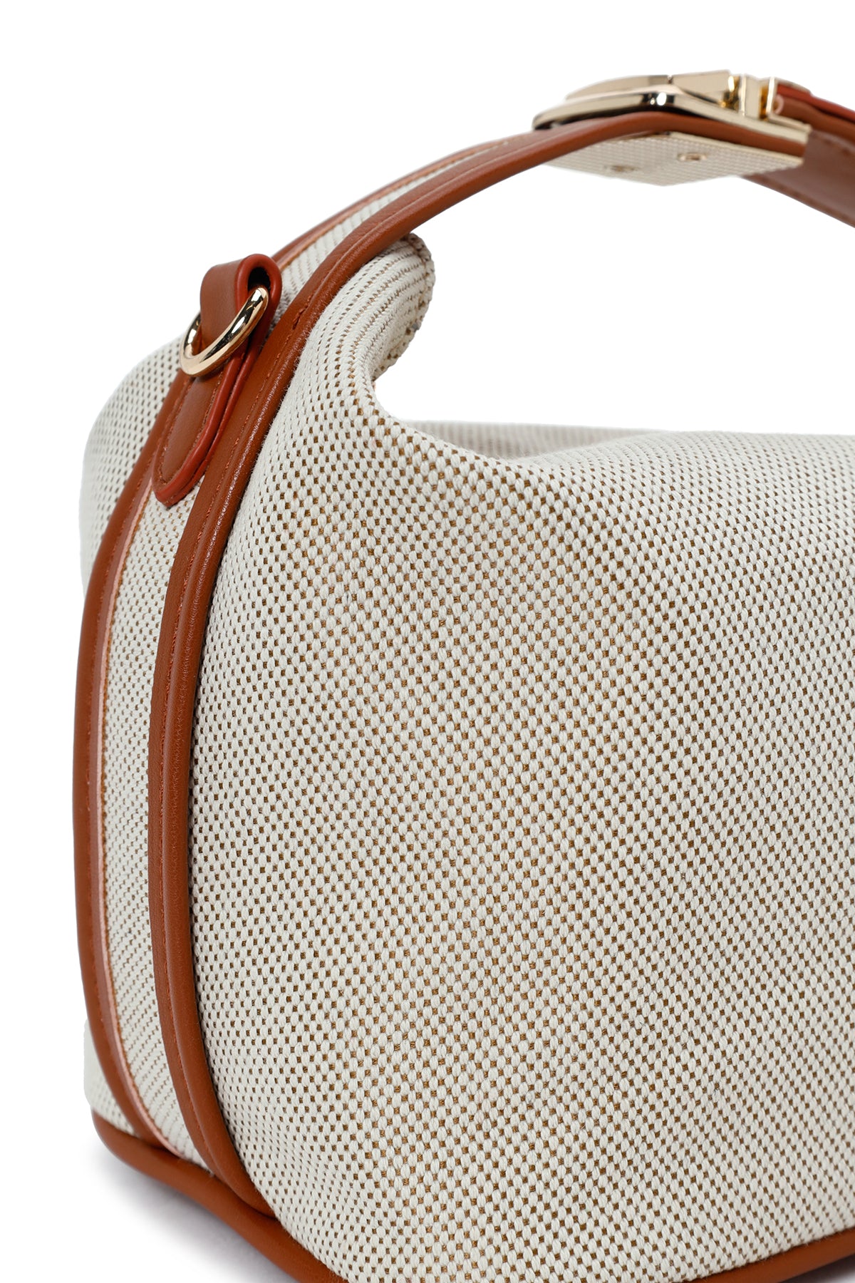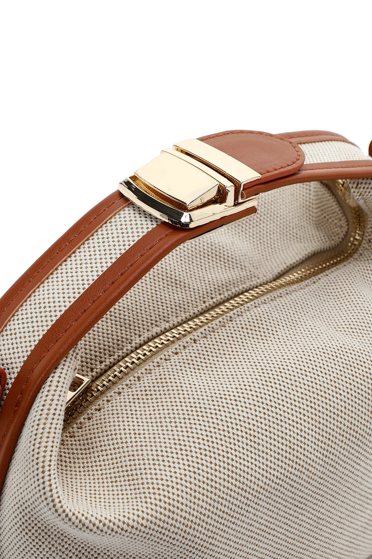 Woman Beige Long Strap Denim Mini Crossbody Bag
